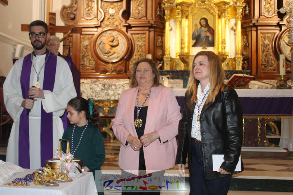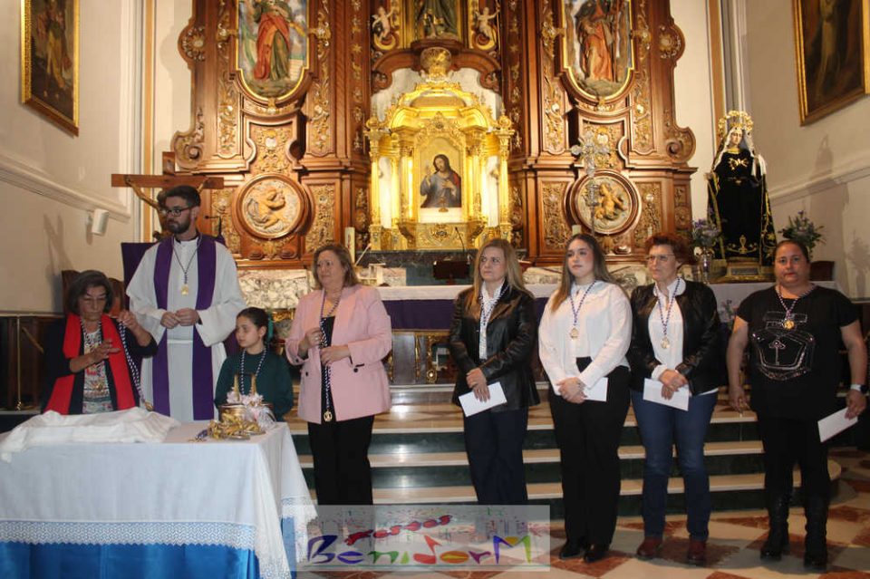 Ayer, a las 18:45 horas, en la iglesia de San Jaime y Santa Anna, tuvo lugar la emotiva bendición de las medallas, pins, estampas y septenarios que fueron entregados a los nuevos cofrades de la Cofradía de Nuestra Señora de los Dolores.