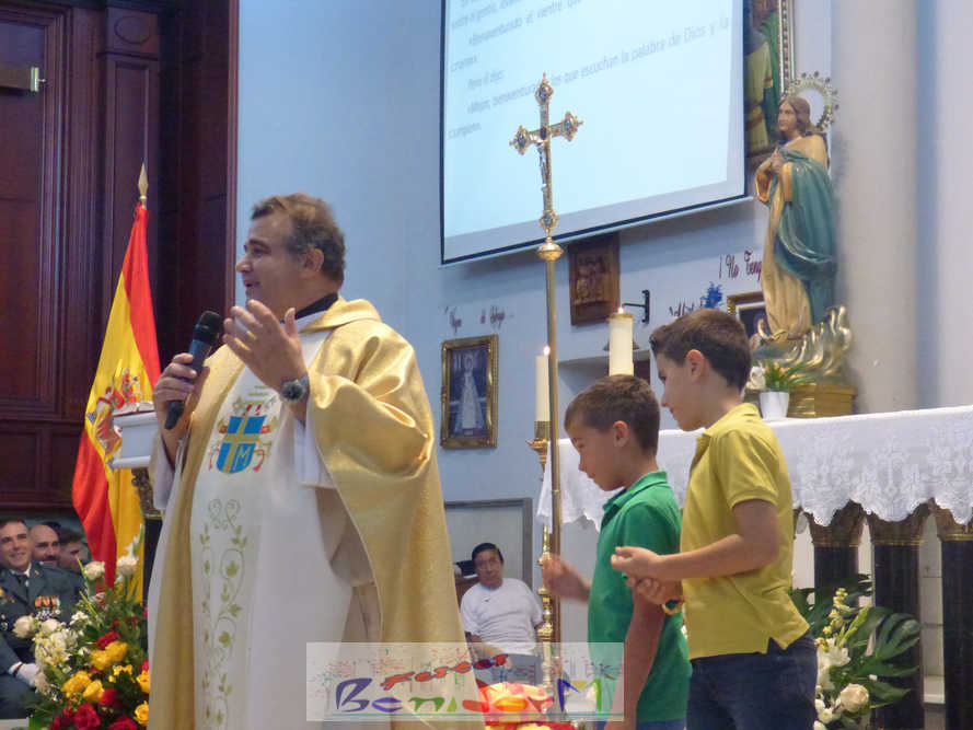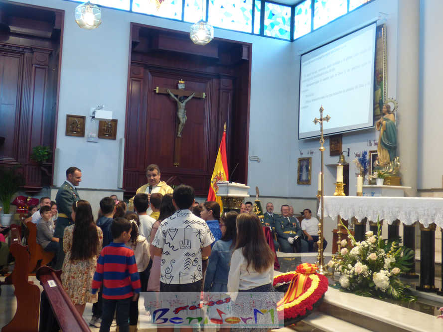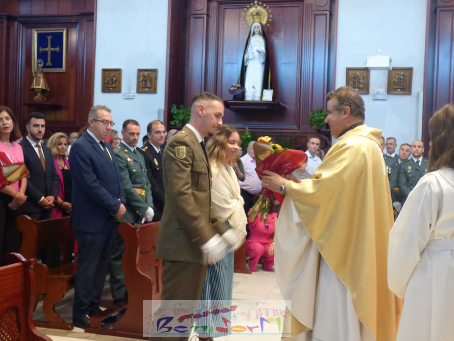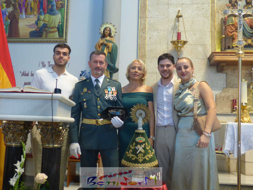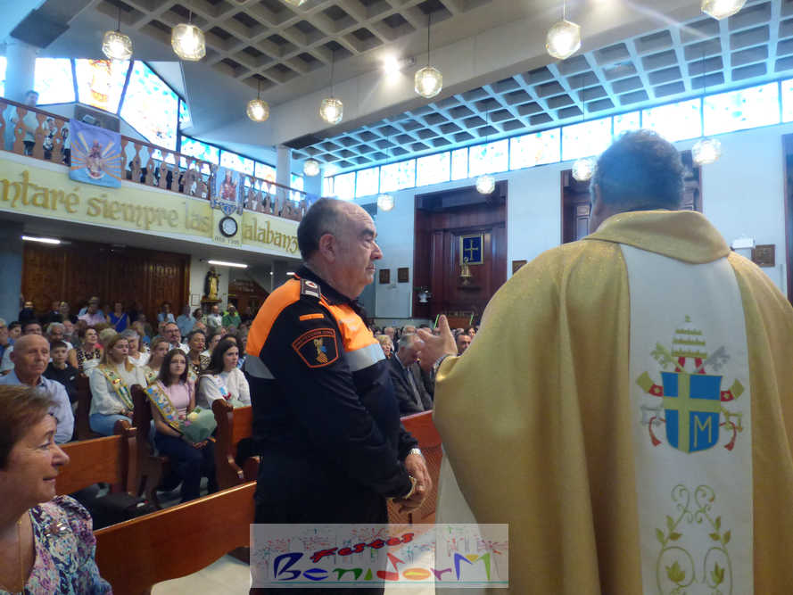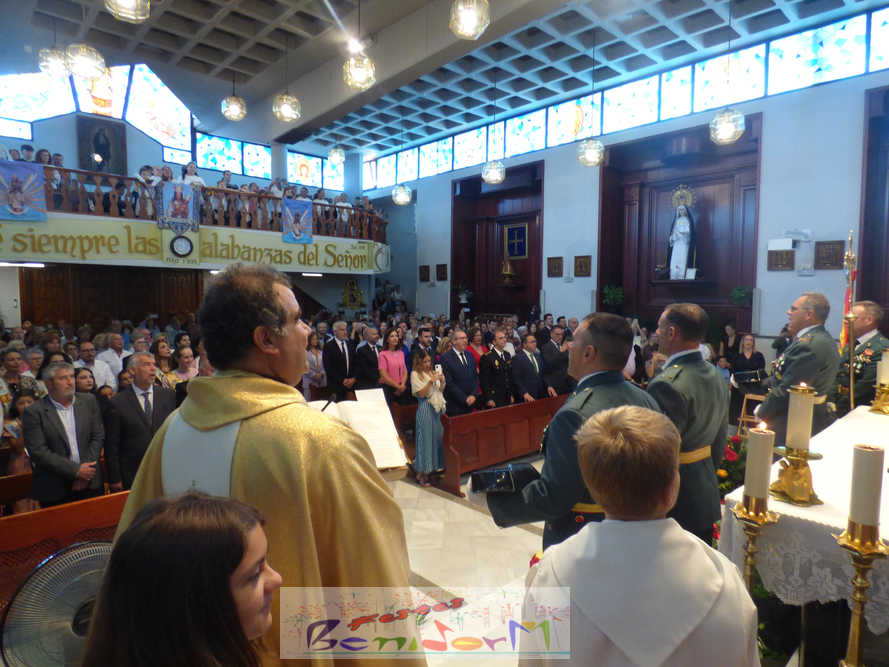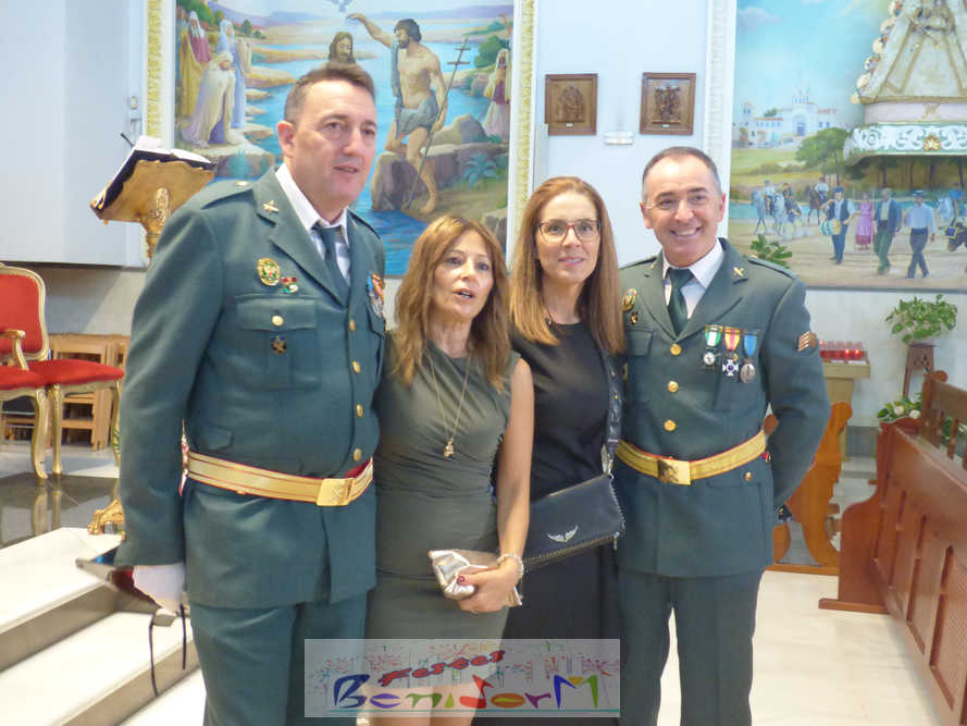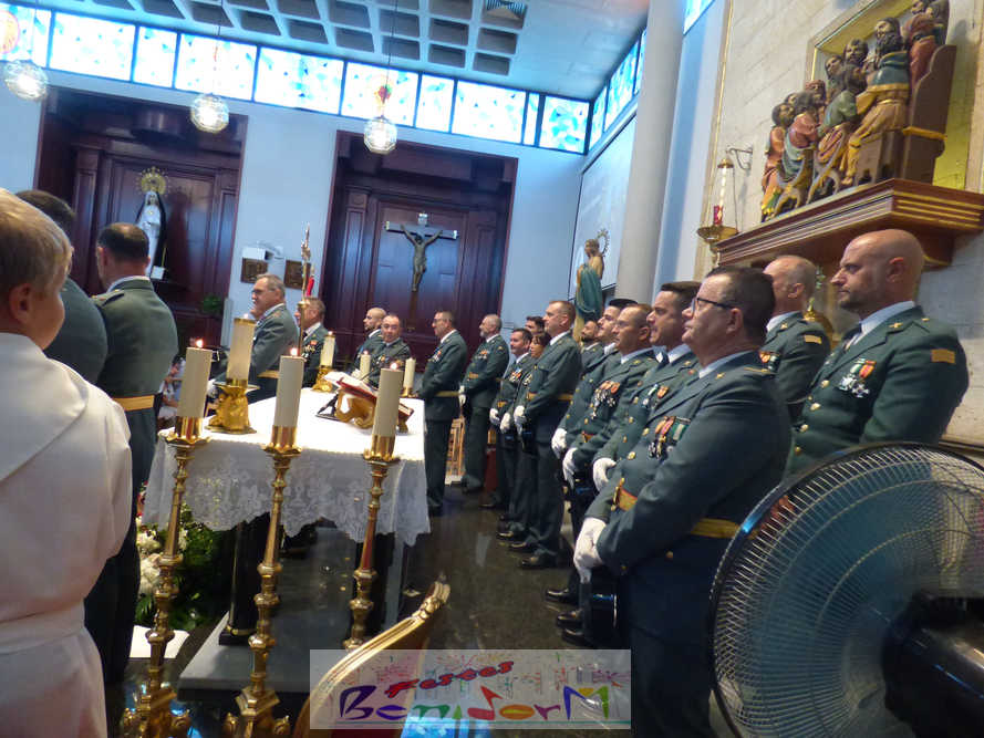 El alcalde de la ciudad, Toni Pérez, y el concejal de Seguridad Ciudadana, Jesús Carrobles, han acompañado a los agentes del Destacamento de Tráfico de Benidorm y a sus familias en una misa que se ha desarrollado al mediodía en la iglesia de Nuestra Señora de la Almudena, y en la que también han participado otros miembros de la Corporación local, entre ellos el también diputado autonómico José Ramón González de Zárate. También han asistido el senador Agustín Almodóbar; miembros de otros Cuerpos y Fuerzas de Seguridad, como el comisario de la Policía Nacional, Luis Manuel Sánchez, o el intendente de la Policía Local, Luis Martín Arévalo; así como el nuevo jefe local del Protección Civil, José Vicente Fuster.