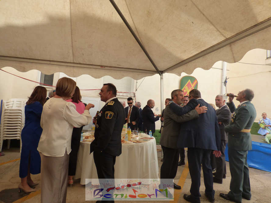 Tras la celebración eucarística, alcalde y concejales han participado en el vino de honor ofrecido por la Guardia Civil a familiares y colaboradores en el patio de la Casa Cuartel de la ciudad. Allí, el sargento jefe del Destacamento de Tráfico de Benidorm, Manuel Alberto Sánchez, ha agradecido al alcalde “el apoyo y colaboración desinteresada” que el Ayuntamiento presta a la Guardia Civil en su labor diaria.