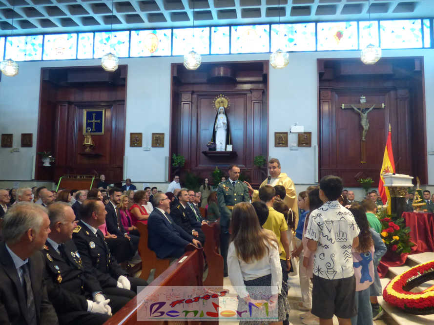El Ayuntamiento de Benidorm ha arropado hoy a la Guardia Civil en las celebraciones que se han llevado a cabo en la ciudad con motivo de la Fiesta Nacional de España y de la festividad de la Virgen del Pilar, patrona del Instituto Armado.