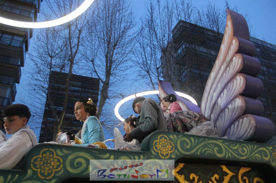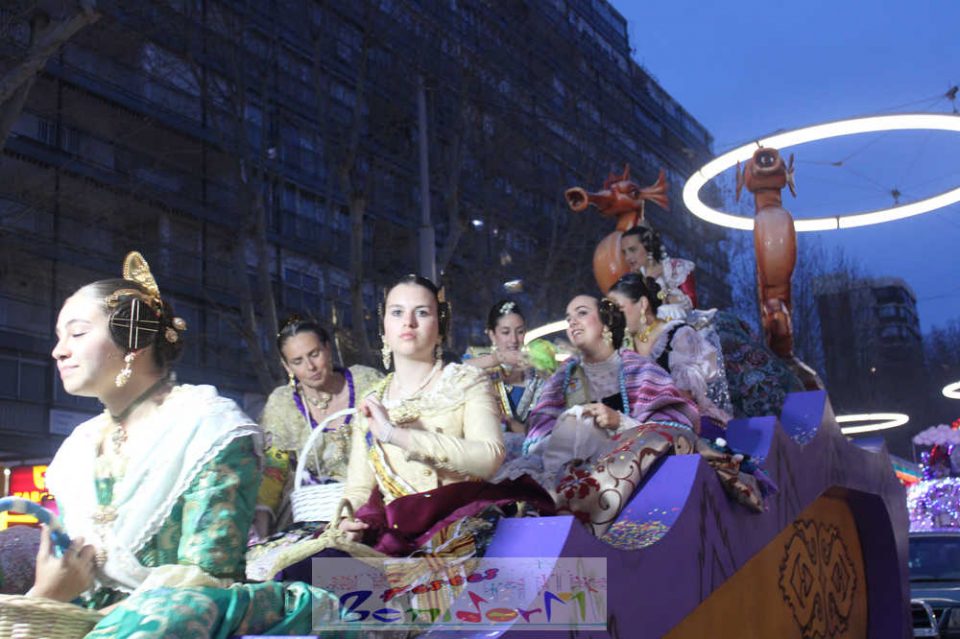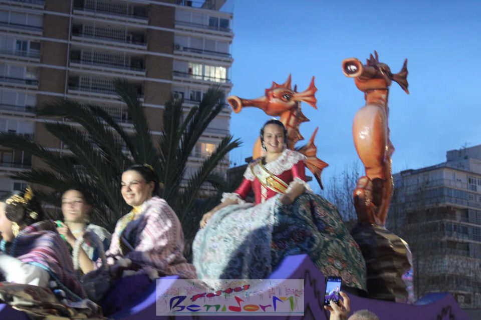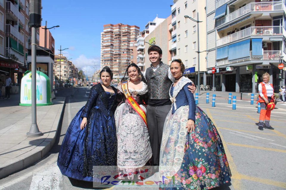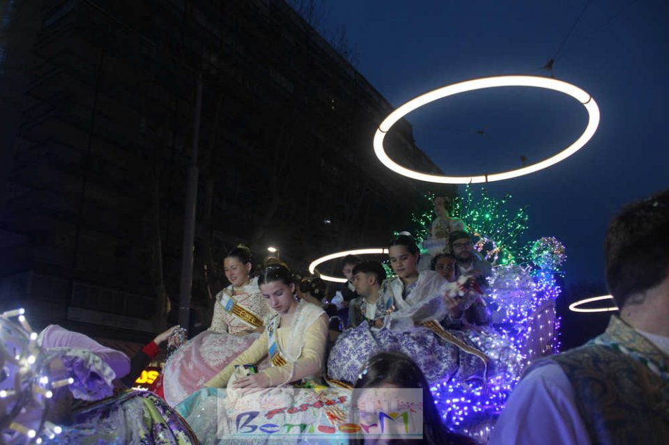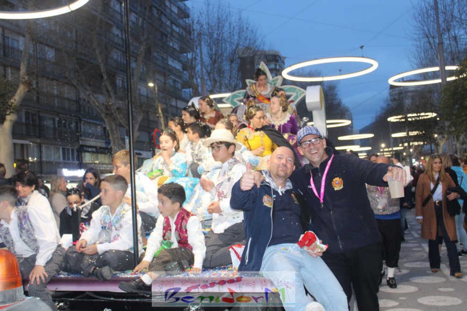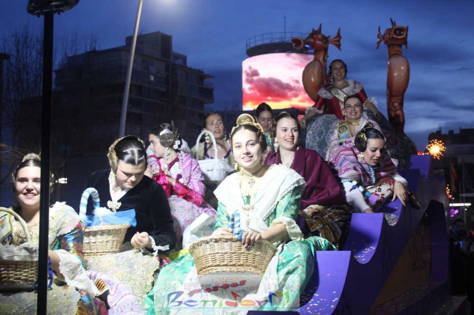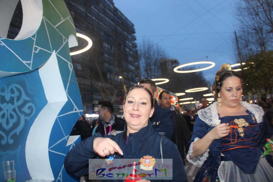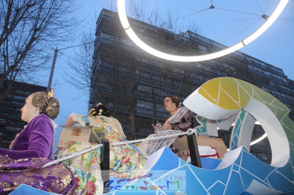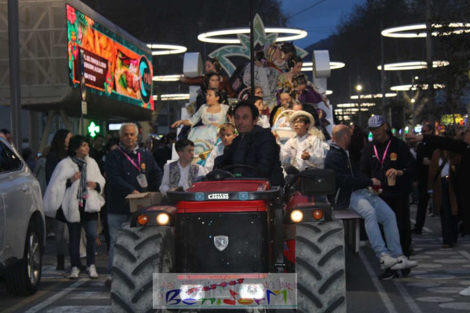 Por la tarde, a las 18:30 horas, las tres fallas se unieron en el tradicional desfile de carrozas, que partió desde la avenida de L’Ametlla del Mar y recorrió toda la avenida Mediterráneo hasta llegar a la plaza de la Hispanidad. La música, el color y la alegría de los falleros y falleras llenaron toda la avenida.
