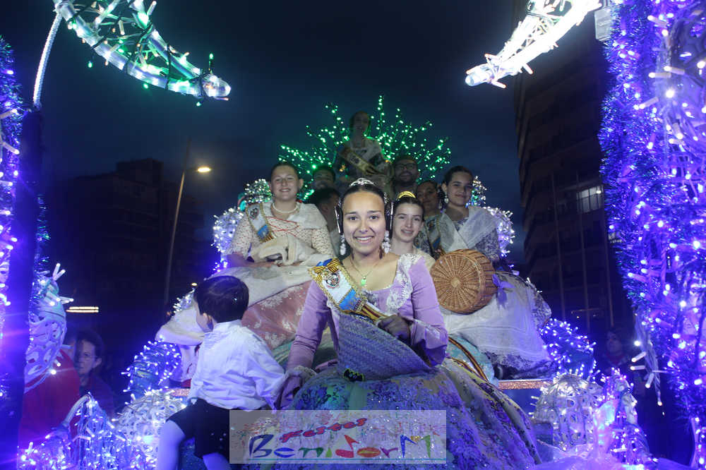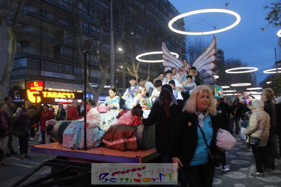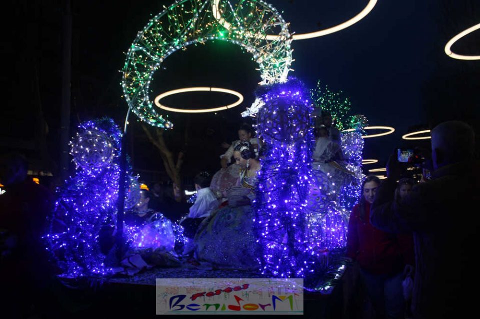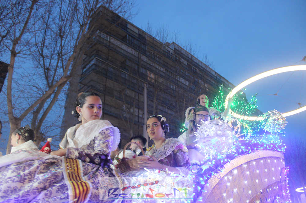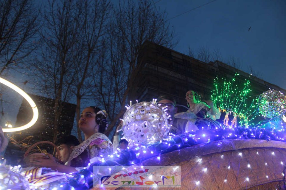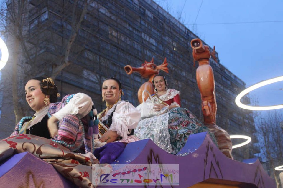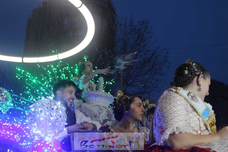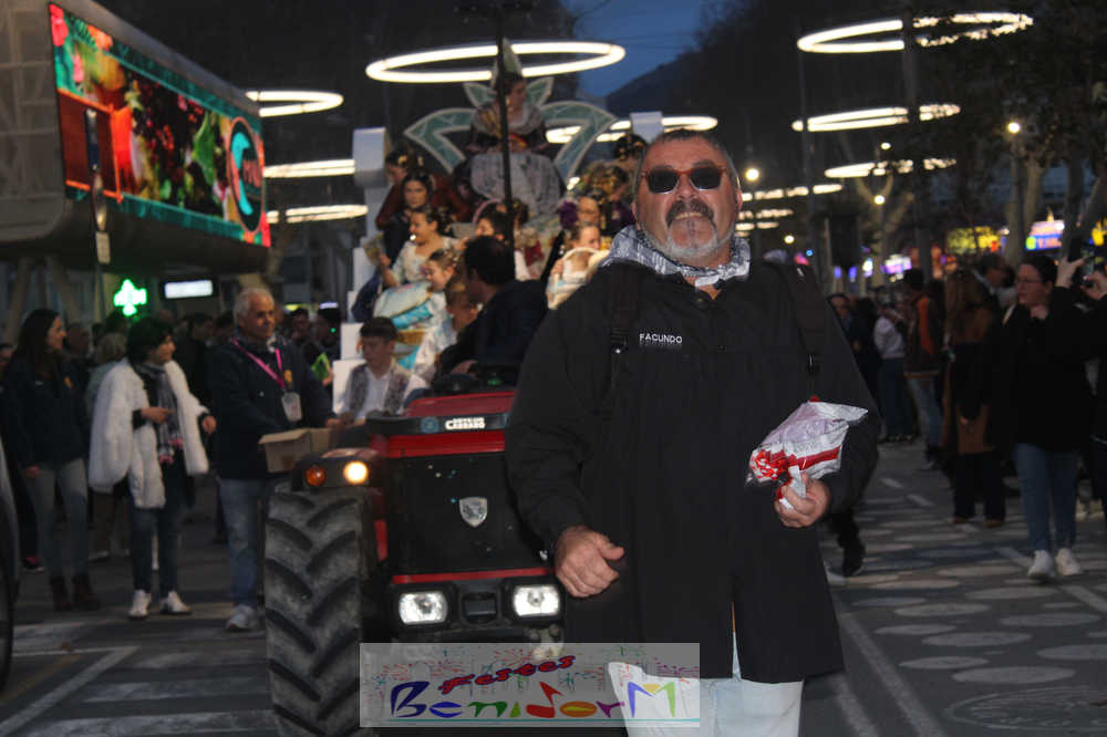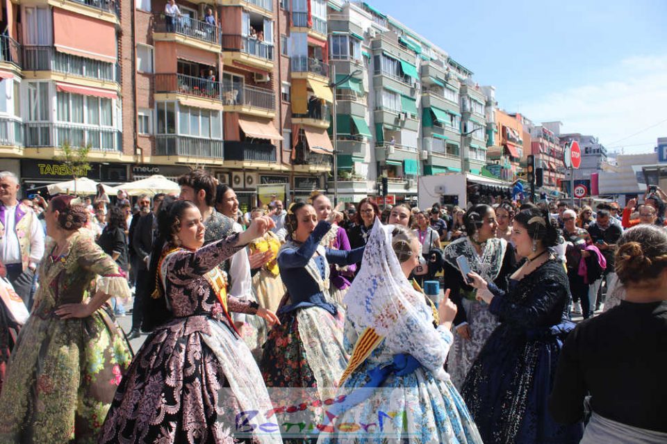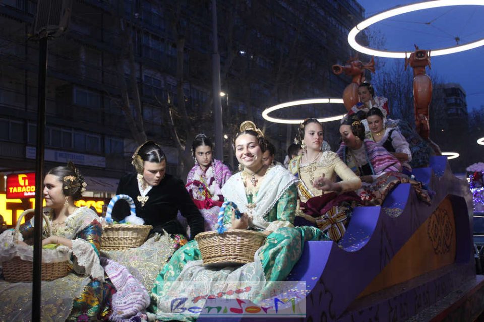 Por la tarde, a las 18:30 horas, las tres fallas se unieron en el tradicional desfile de carrozas, que partió desde la avenida de L’Ametlla del Mar y recorrió toda la avenida Mediterráneo hasta llegar a la plaza de la Hispanidad. La música, el color y la alegría de los falleros y falleras llenaron toda la avenida.