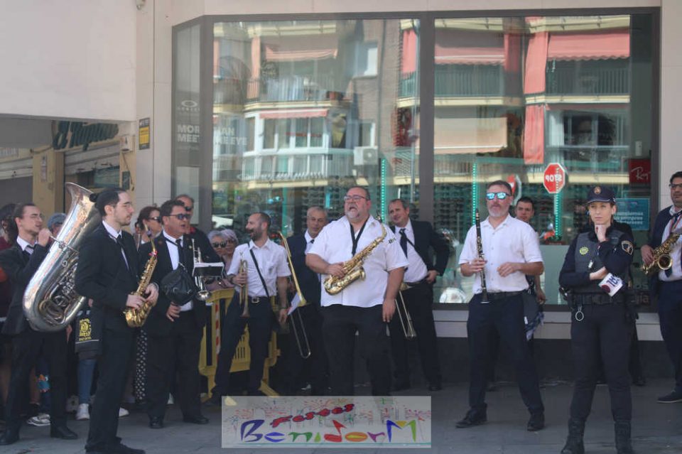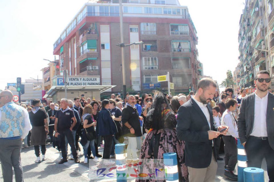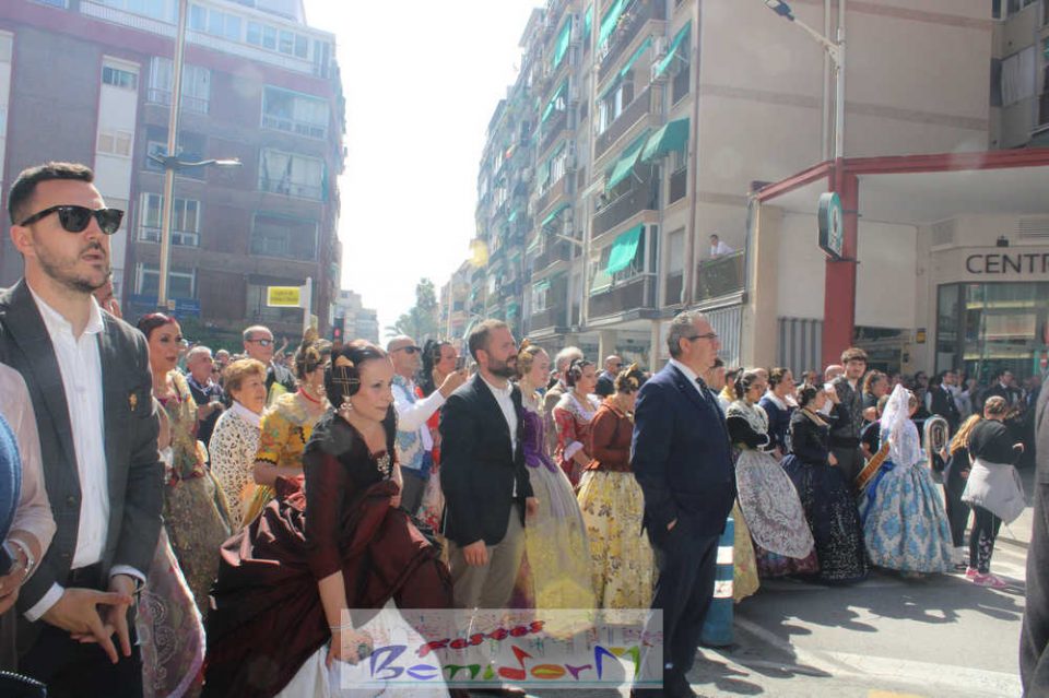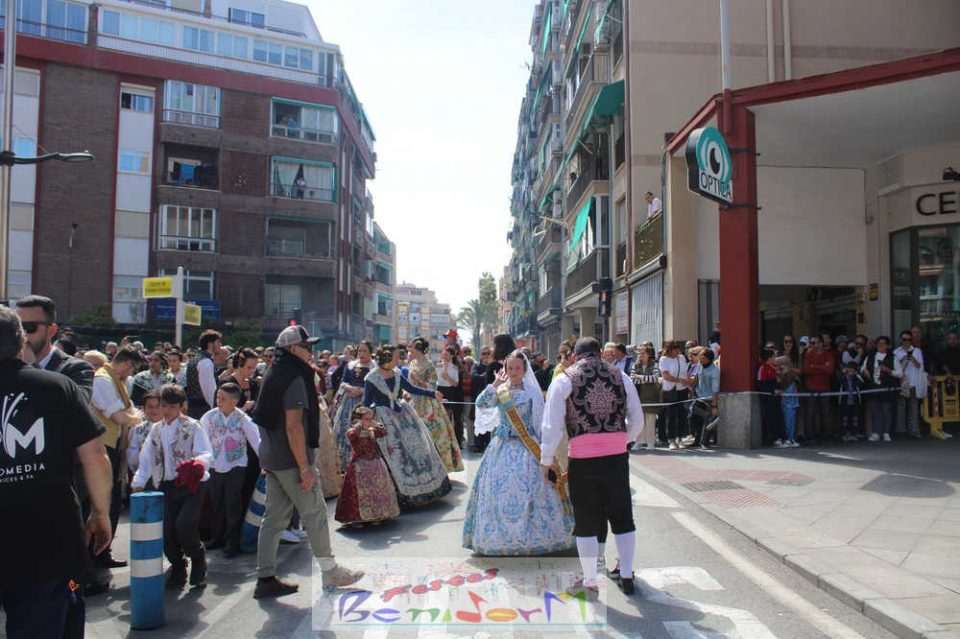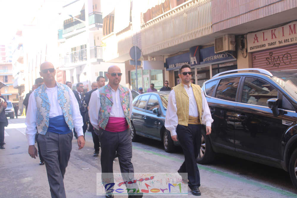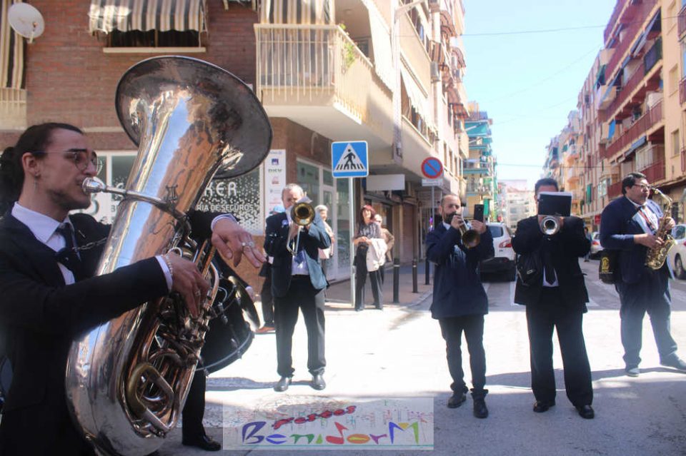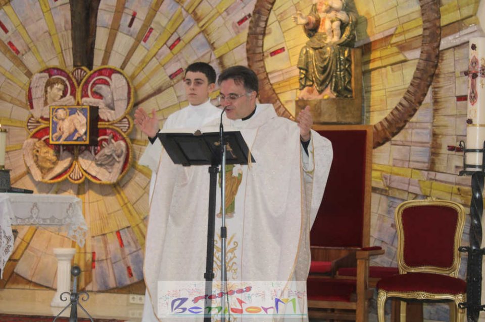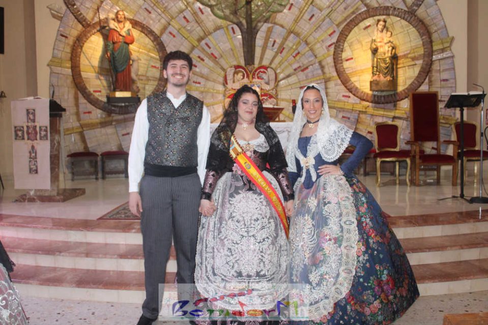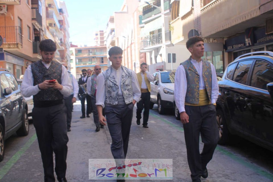 La mañana comenzó con las misas en honor al patrón, cada una en su respectiva parroquia. A las 12:00 horas, la Falla Els Tolls asistió a la eucaristía en la parroquia del Buen Pastor, mientras que la Falla Benidorm Distrito Centro celebró su misa a las 12:45 en la parroquia de San Jaime y Santa Ana. Poco después, a las 13:00 horas, la Falla Rincón rindió homenaje a San José en la parroquia de Nuestra Señora del Mar.