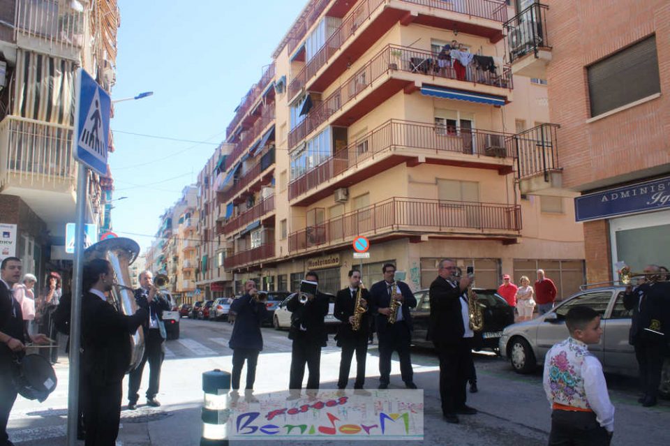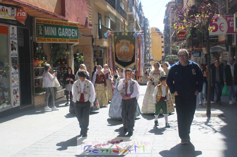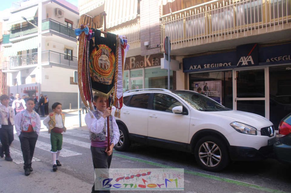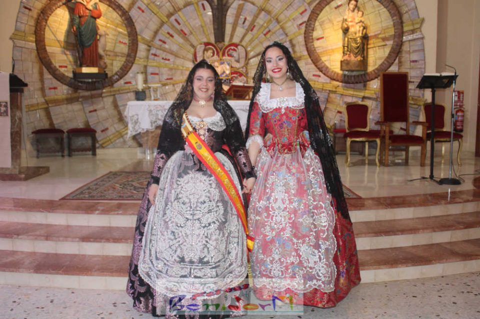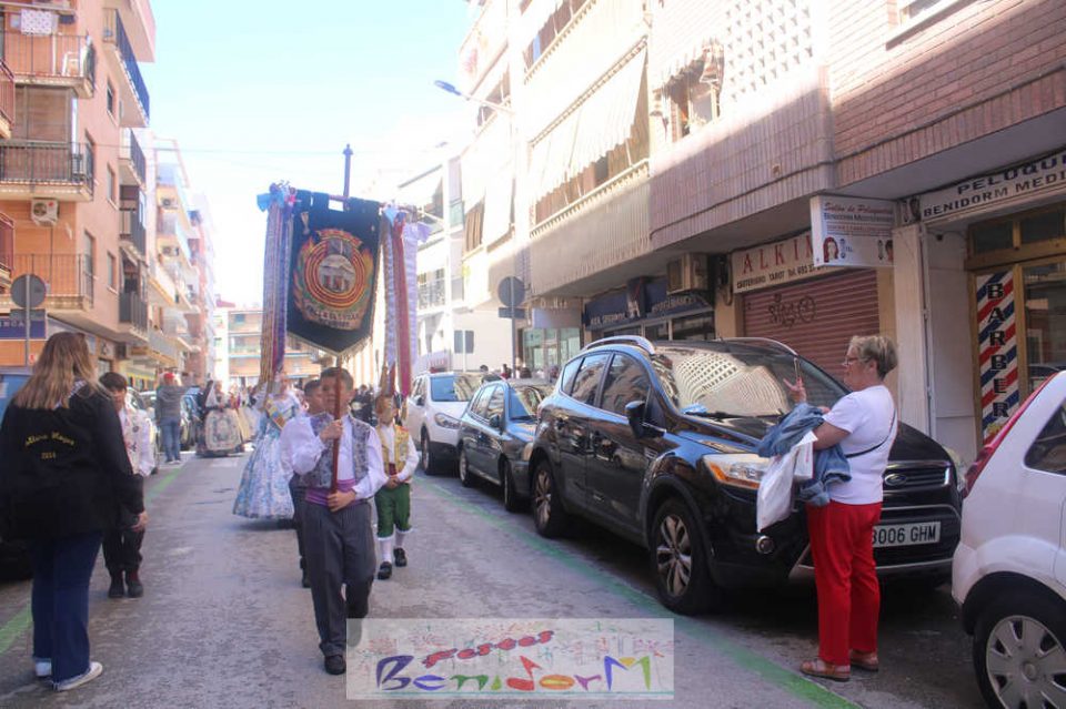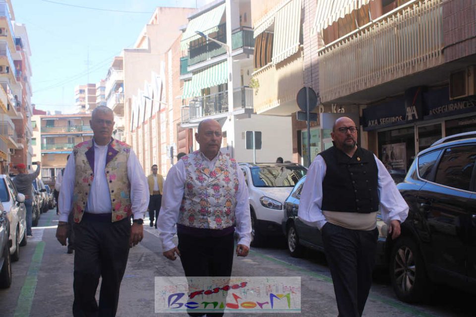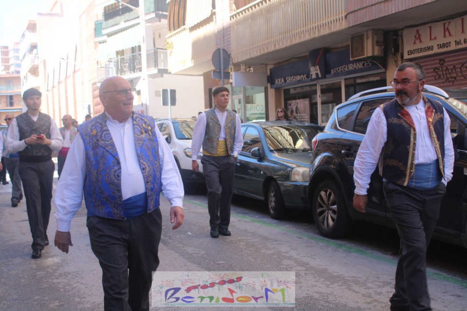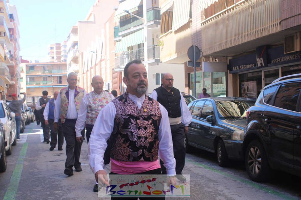 La mañana comenzó con las misas en honor al patrón, cada una en su respectiva parroquia. A las 12:00 horas, la Falla Els Tolls asistió a la eucaristía en la parroquia del Buen Pastor, mientras que la Falla Benidorm Distrito Centro celebró su misa a las 12:45 en la parroquia de San Jaime y Santa Ana. Poco después, a las 13:00 horas, la Falla Rincón rindió homenaje a San José en la parroquia de Nuestra Señora del Mar.