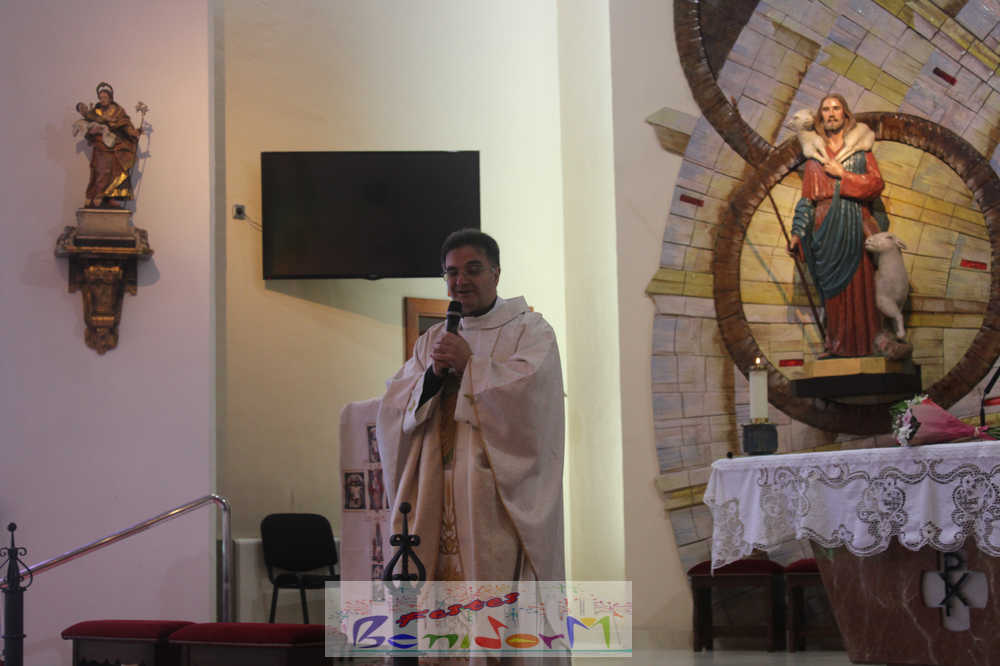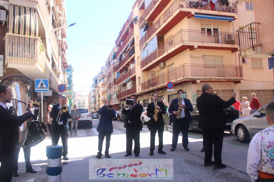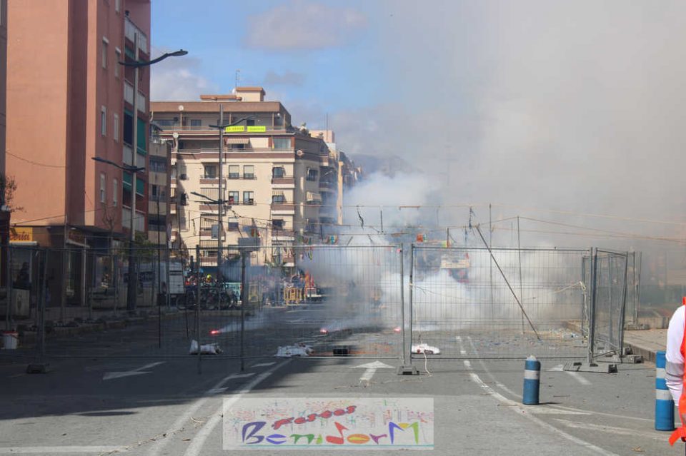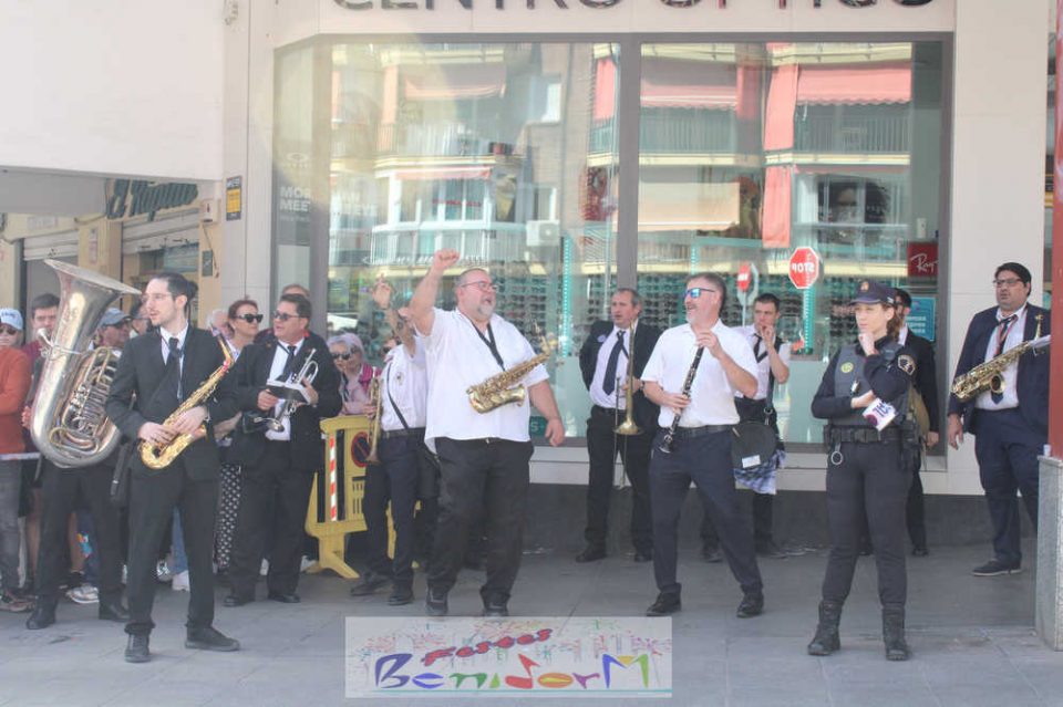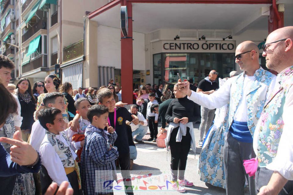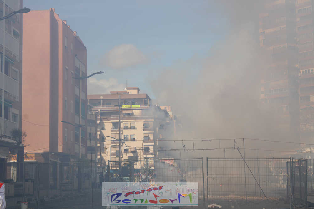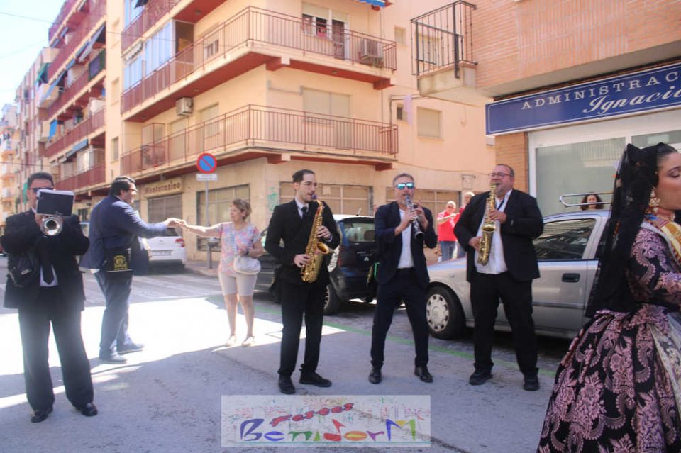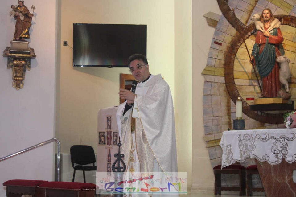 La mañana comenzó con las misas en honor al patrón, cada una en su respectiva parroquia. A las 12:00 horas, la Falla Els Tolls asistió a la eucaristía en la parroquia del Buen Pastor, mientras que la Falla Benidorm Distrito Centro celebró su misa a las 12:45 en la parroquia de San Jaime y Santa Ana. Poco después, a las 13:00 horas, la Falla Rincón rindió homenaje a San José en la parroquia de Nuestra Señora del Mar.