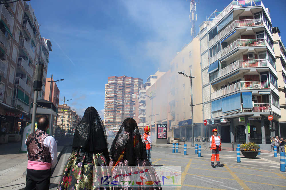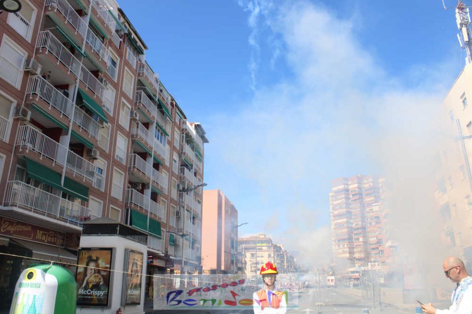 Tras la misa, la Falla Els Tolls se dirigió en pasacalle hasta la calle Tomás Ortuño, donde a las 14:00 horas se vivió uno de los momentos más esperados del día: la mascletà. El estruendo de la pólvora y el espectáculo de sonido hicieron vibrar a todos los asistentes, marcando uno de los actos más emocionantes de la jornada.