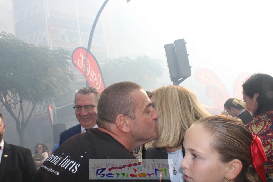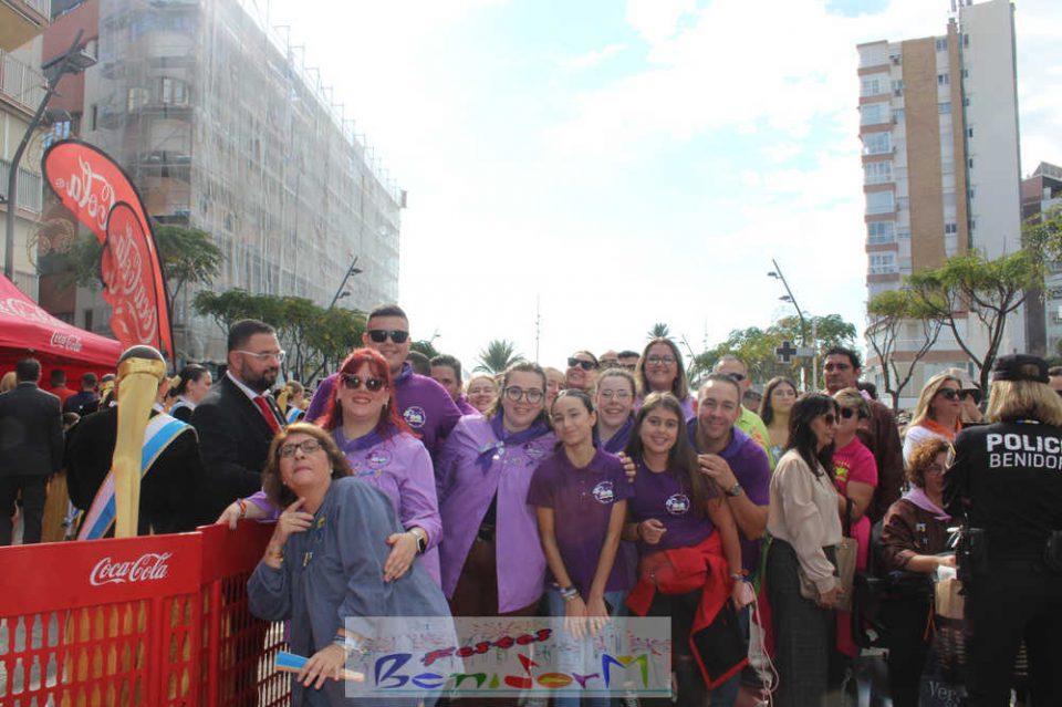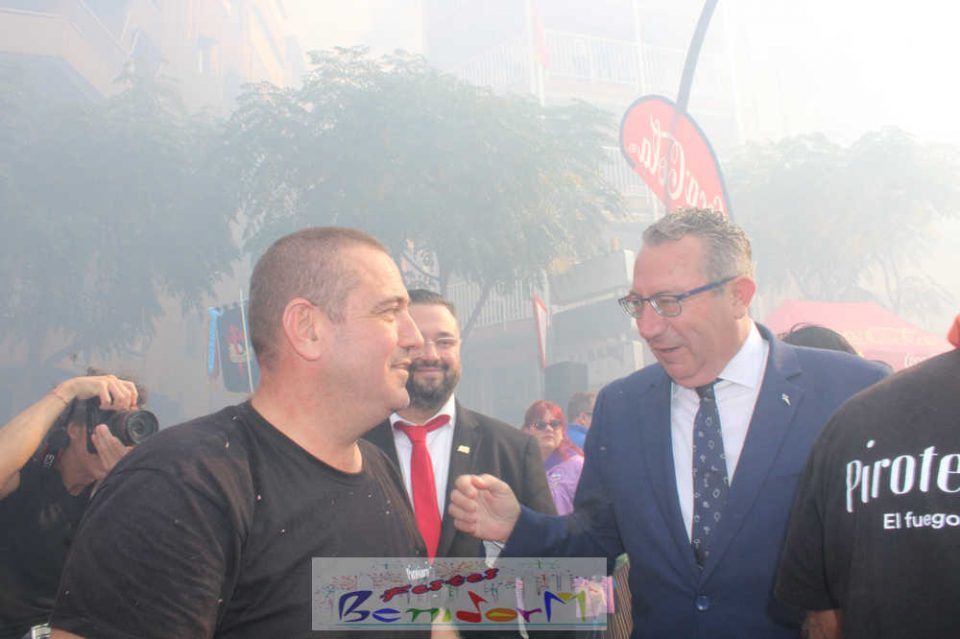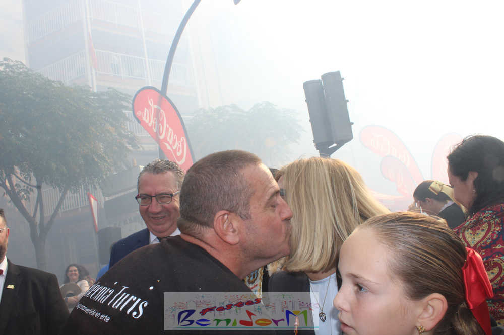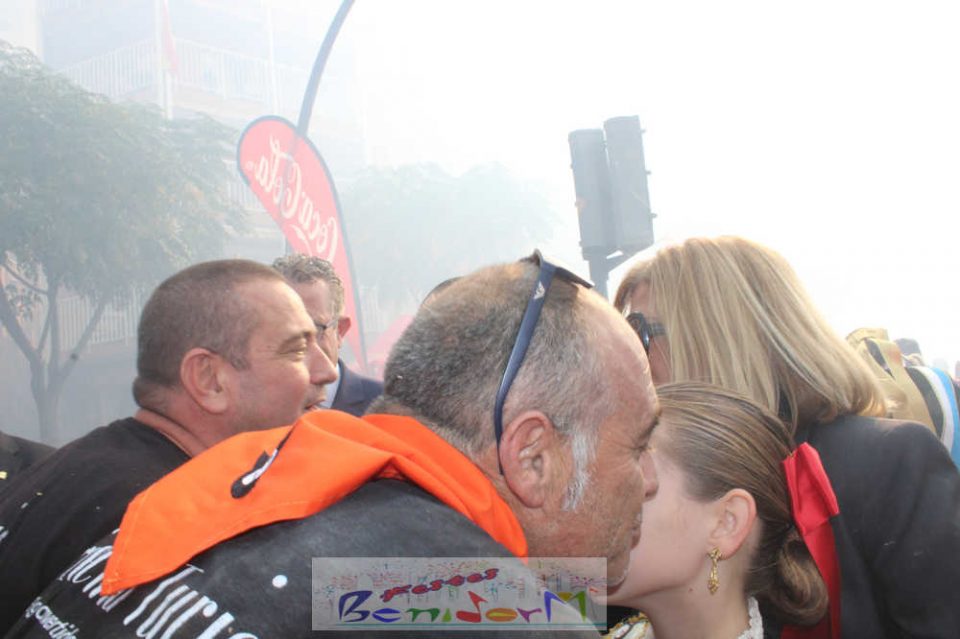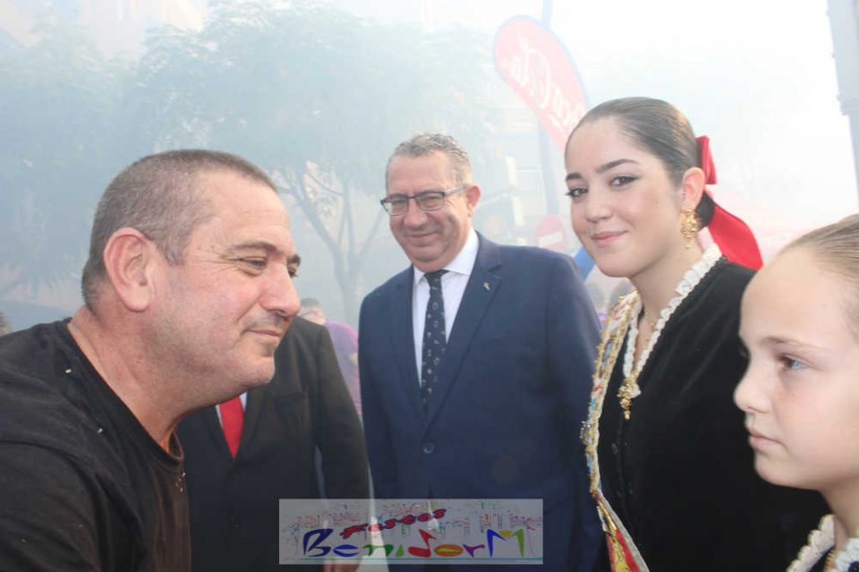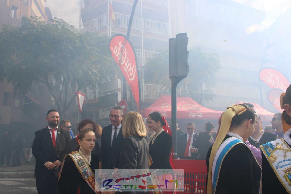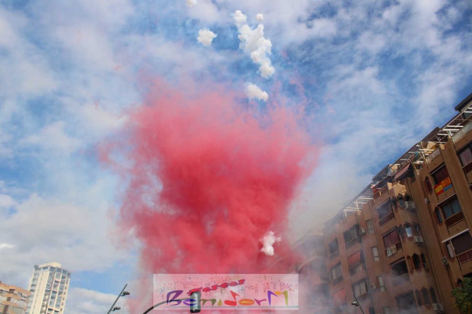 Tras el acto religioso, también en pasacalle, autoridades y festeros se han dirigido a la Avenida de Jaime I donde se concentraban miles de peñistas y vecinos para disfrutar de la segunda mascletá de las Festes Majors Patronals.