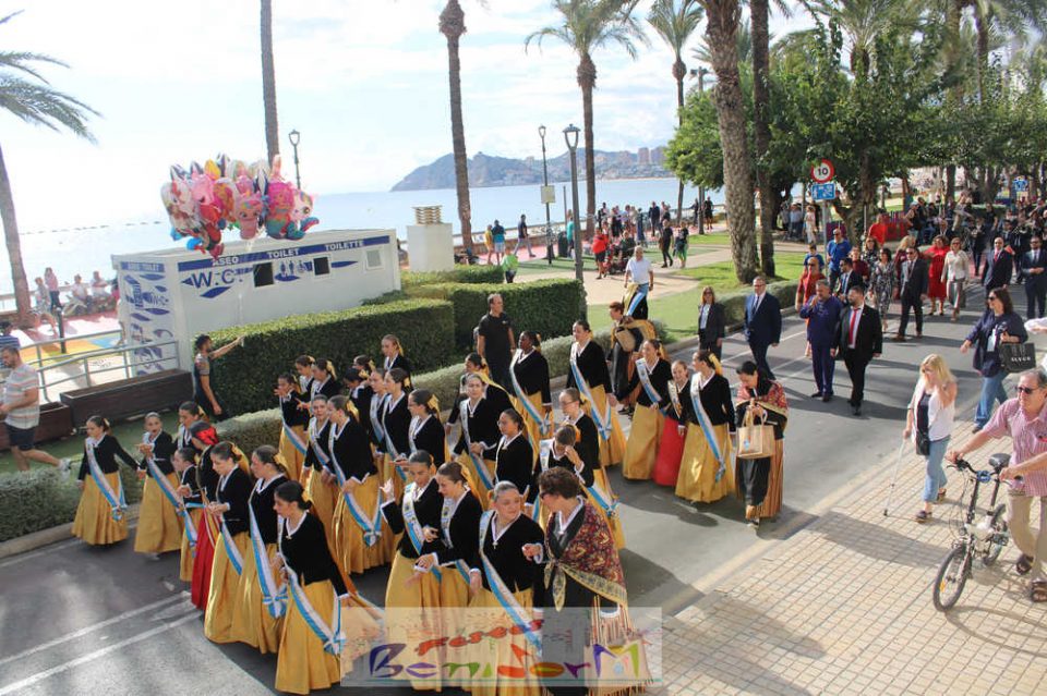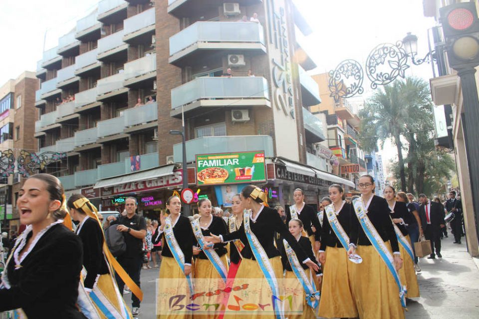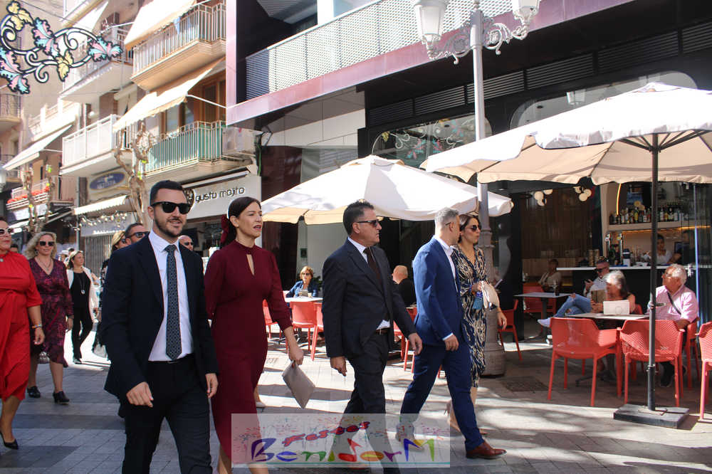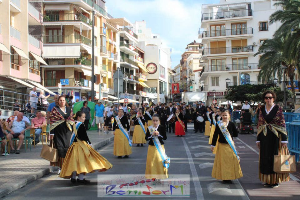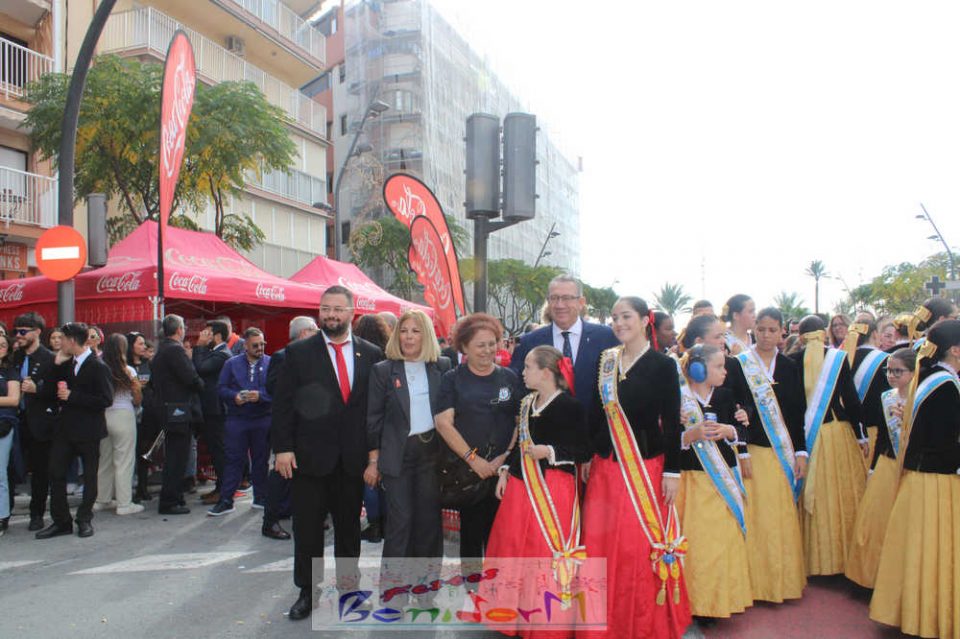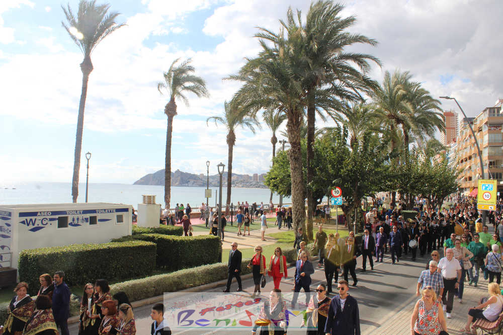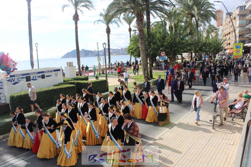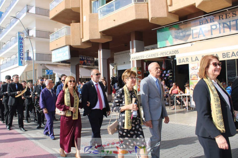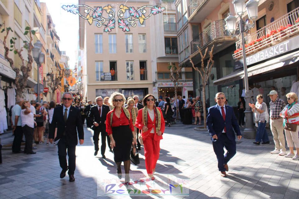 Con posterioridad, mayorales y autoridades han recogido a las reinas mayores, Valentina Alomodóbar y Laia Zamora para recorrer, en pasacalle, acompañados por las tres bandas de Benidorm, Unión, La Nova y l’Illa, la distancia que separa el Ayuntamiento de la Iglesia en la Plaza de Sant Jaume donde, a las 11.30, ha tenido lugar la misa en honor del patrón.