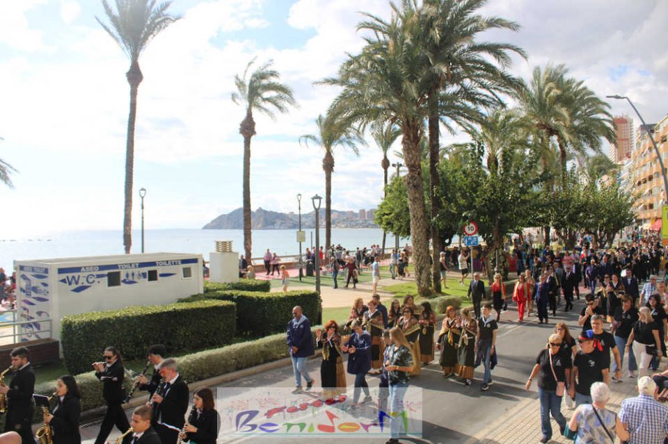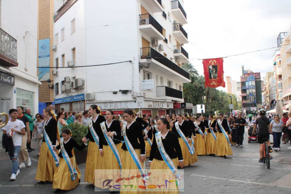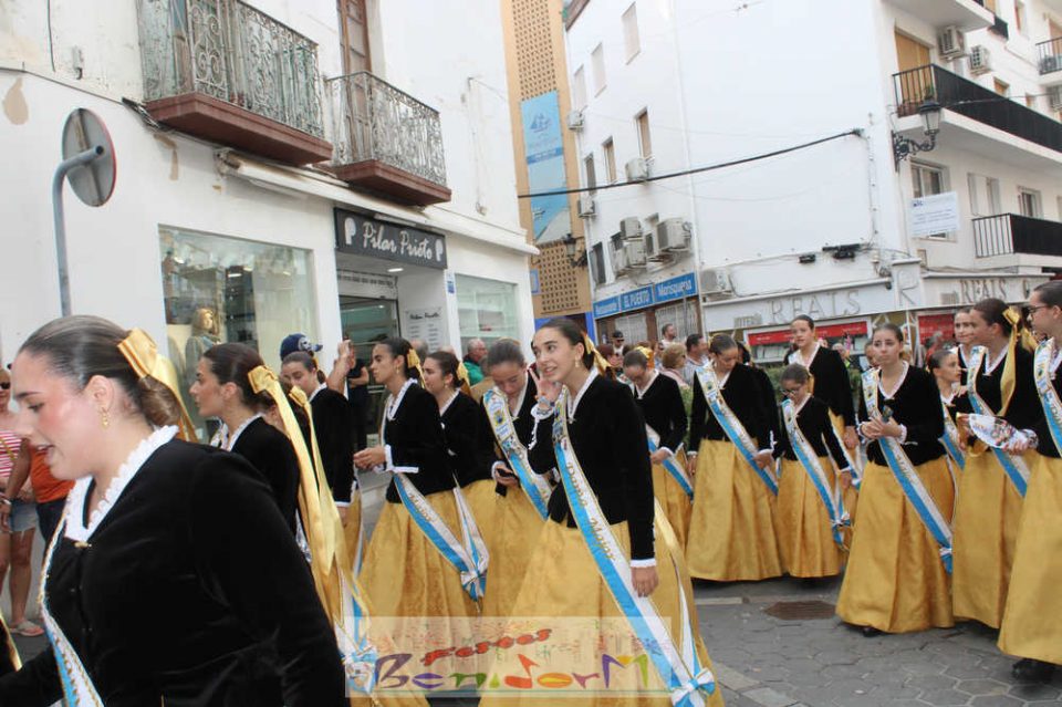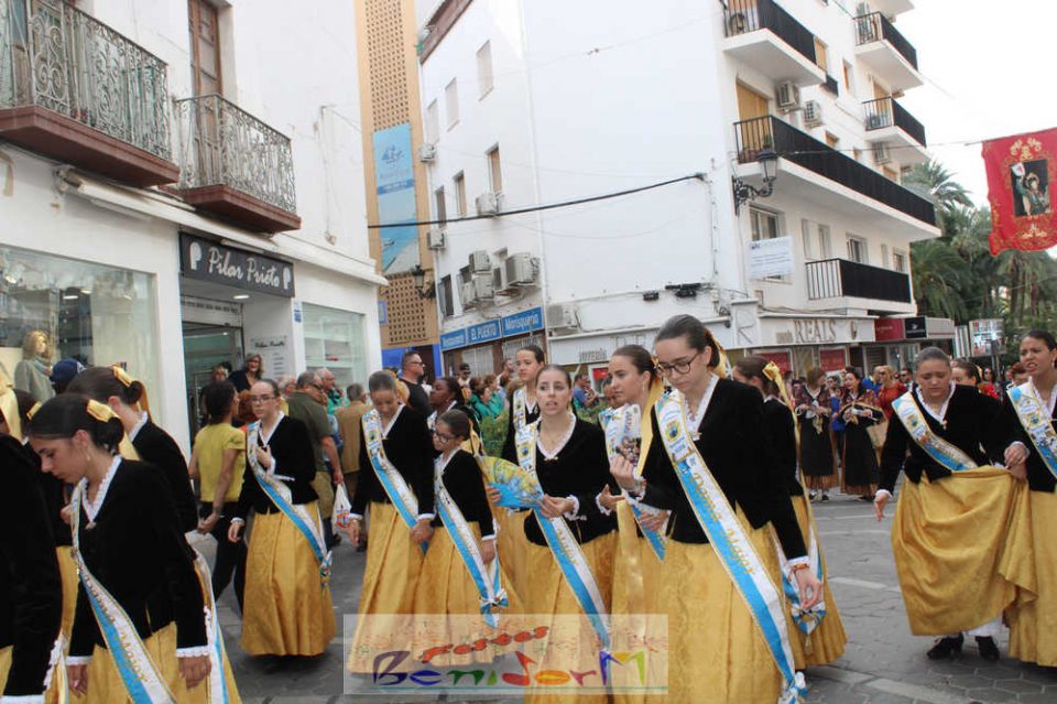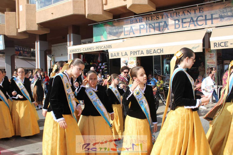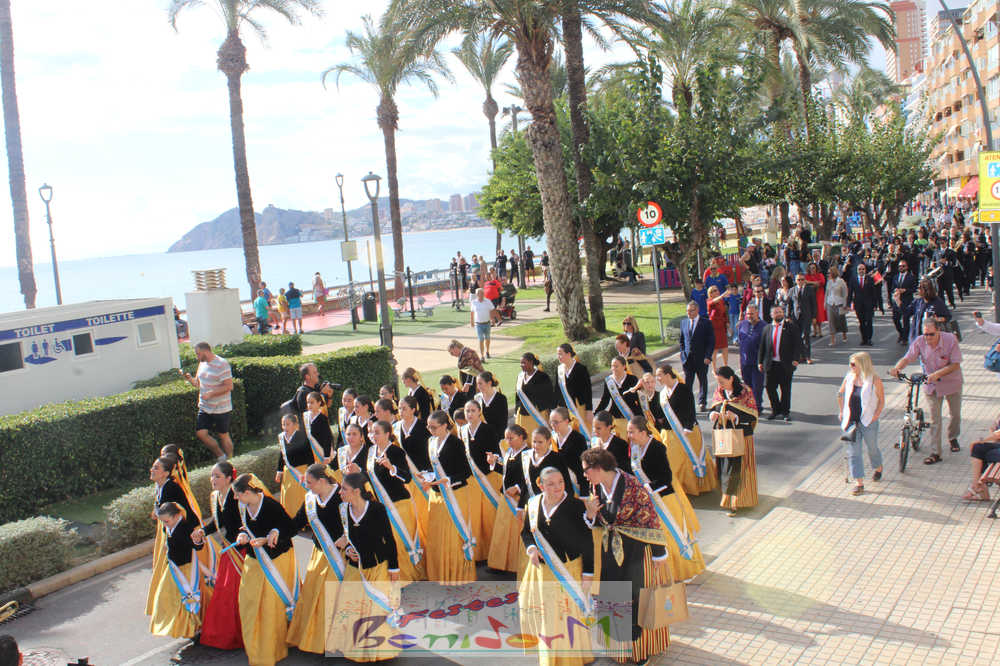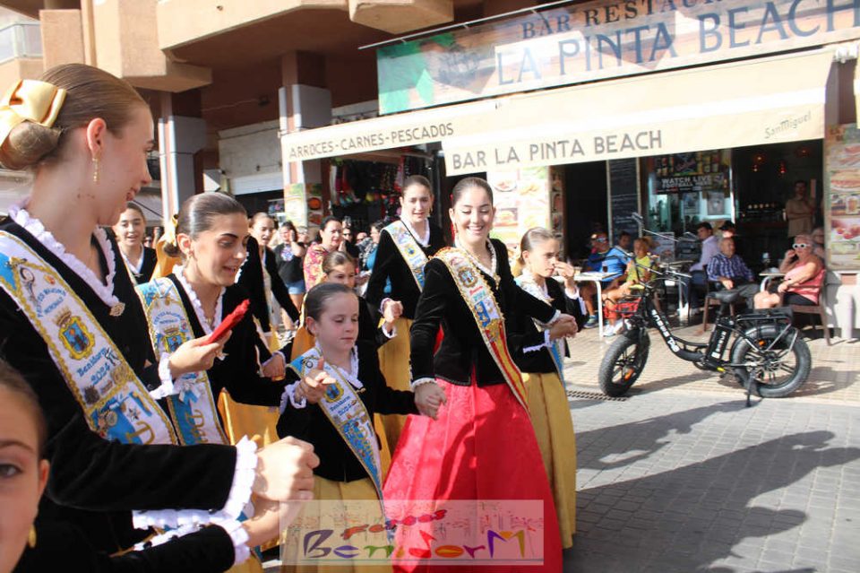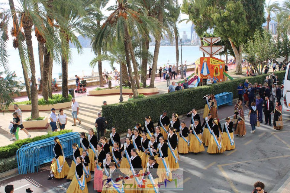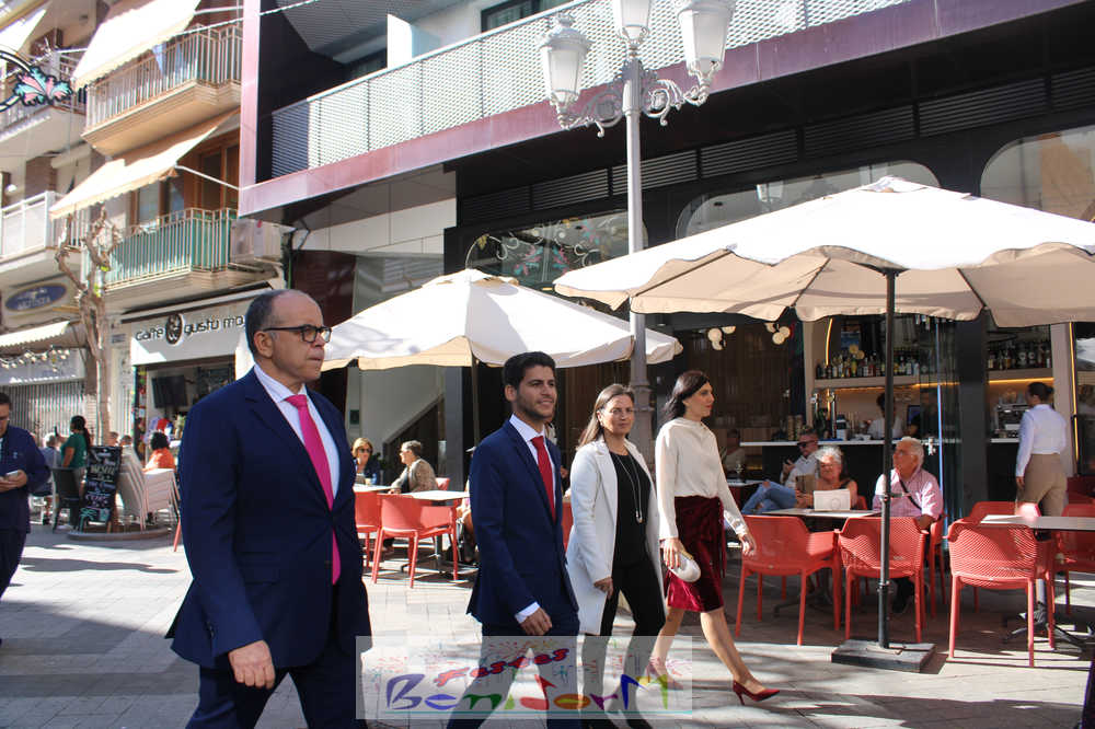 Con posterioridad, mayorales y autoridades han recogido a las reinas mayores, Valentina Alomodóbar y Laia Zamora para recorrer, en pasacalle, acompañados por las tres bandas de Benidorm, Unión, La Nova y l’Illa, la distancia que separa el Ayuntamiento de la Iglesia en la Plaza de Sant Jaume donde, a las 11.30, ha tenido lugar la misa en honor del patrón.