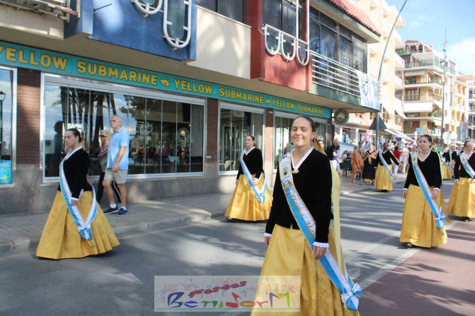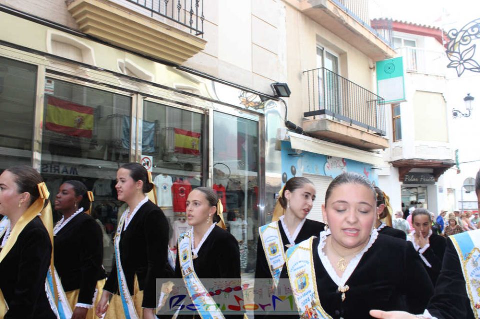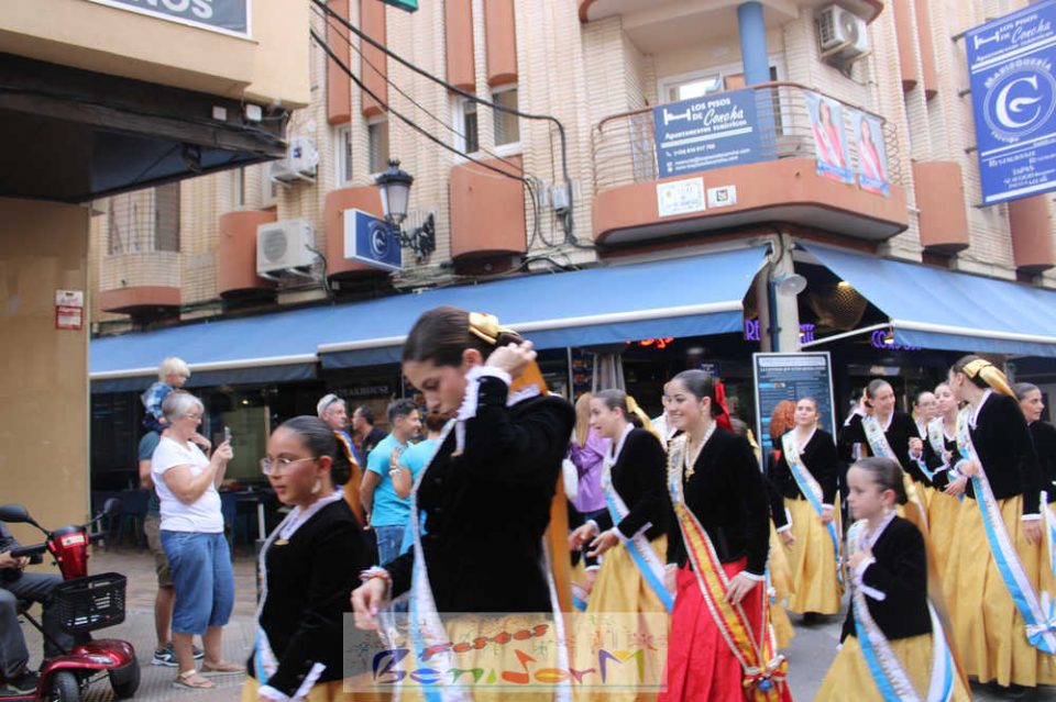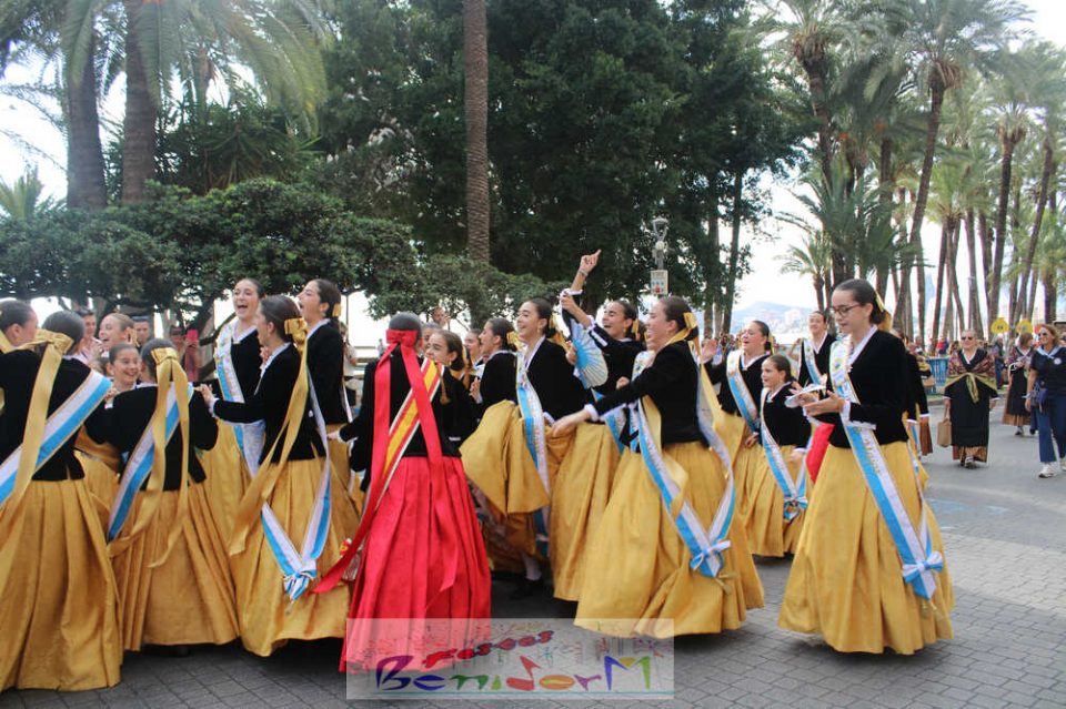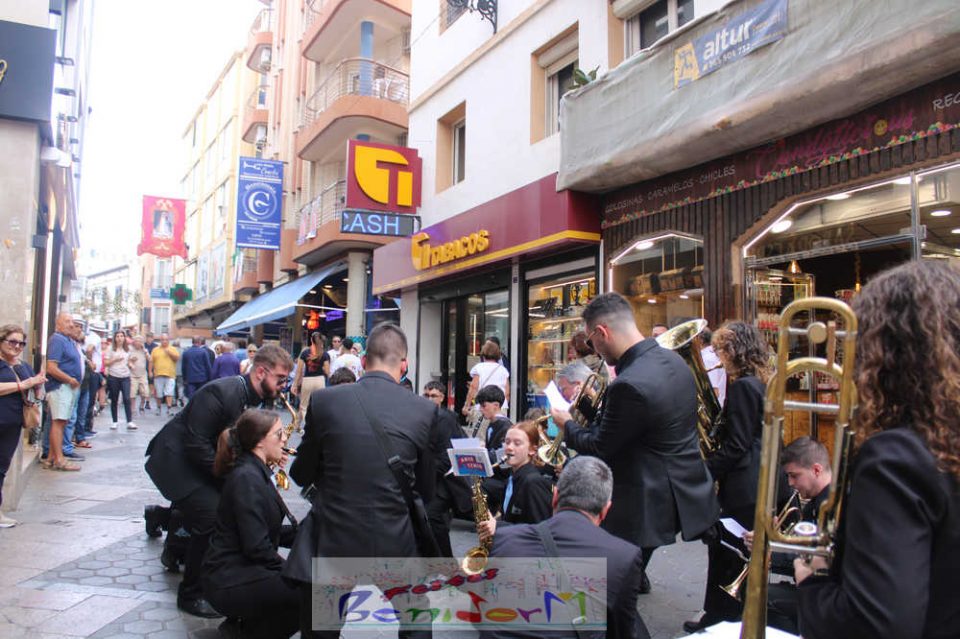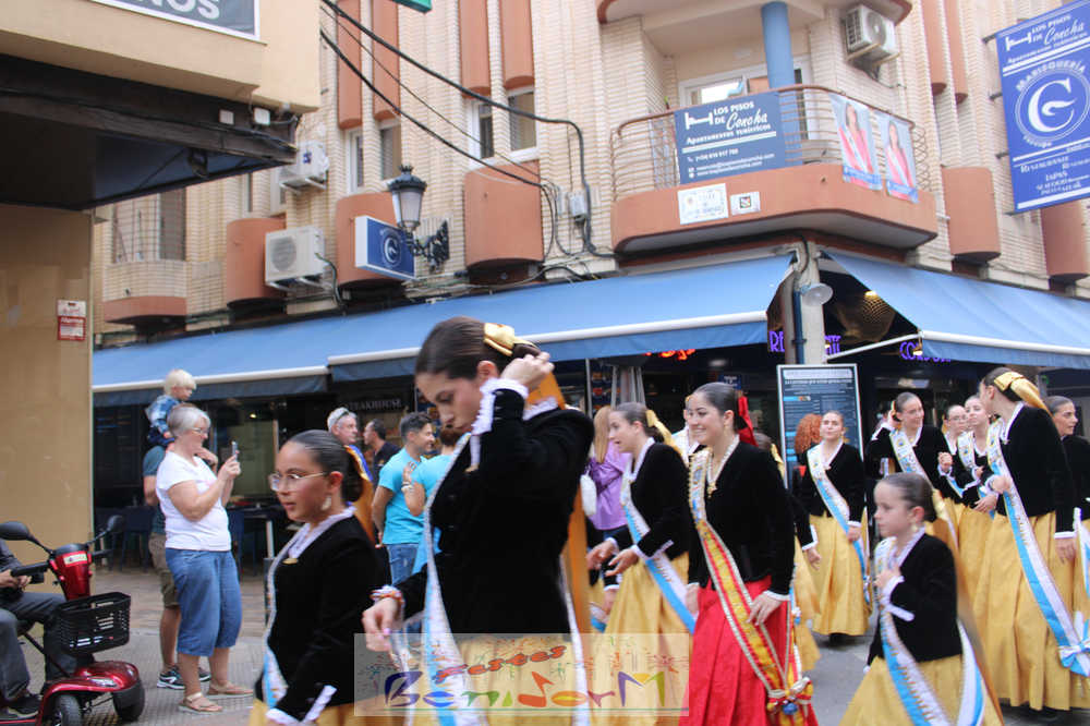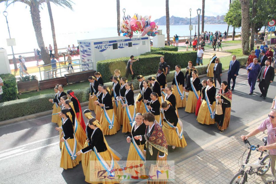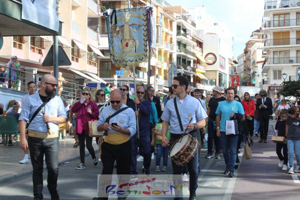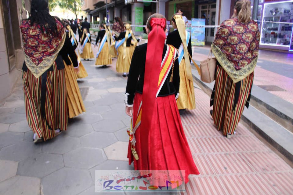 Con posterioridad, mayorales y autoridades han recogido a las reinas mayores, Valentina Alomodóbar y Laia Zamora para recorrer, en pasacalle, acompañados por las tres bandas de Benidorm, Unión, La Nova y l’Illa, la distancia que separa el Ayuntamiento de la Iglesia en la Plaza de Sant Jaume donde, a las 11.30, ha tenido lugar la misa en honor del patrón.