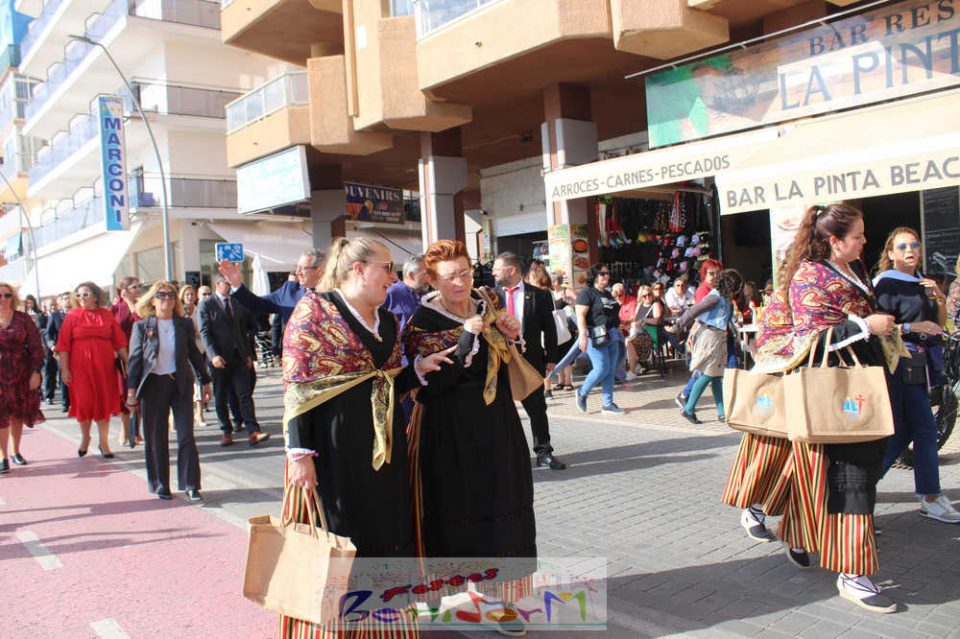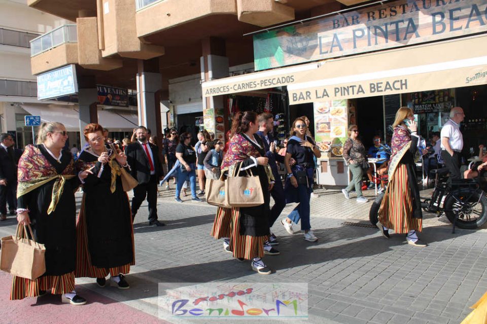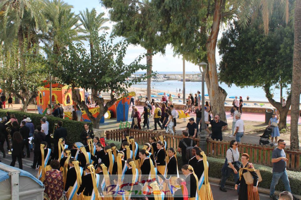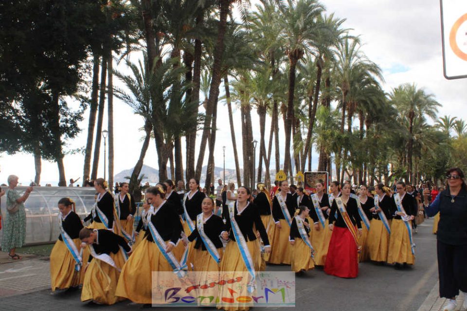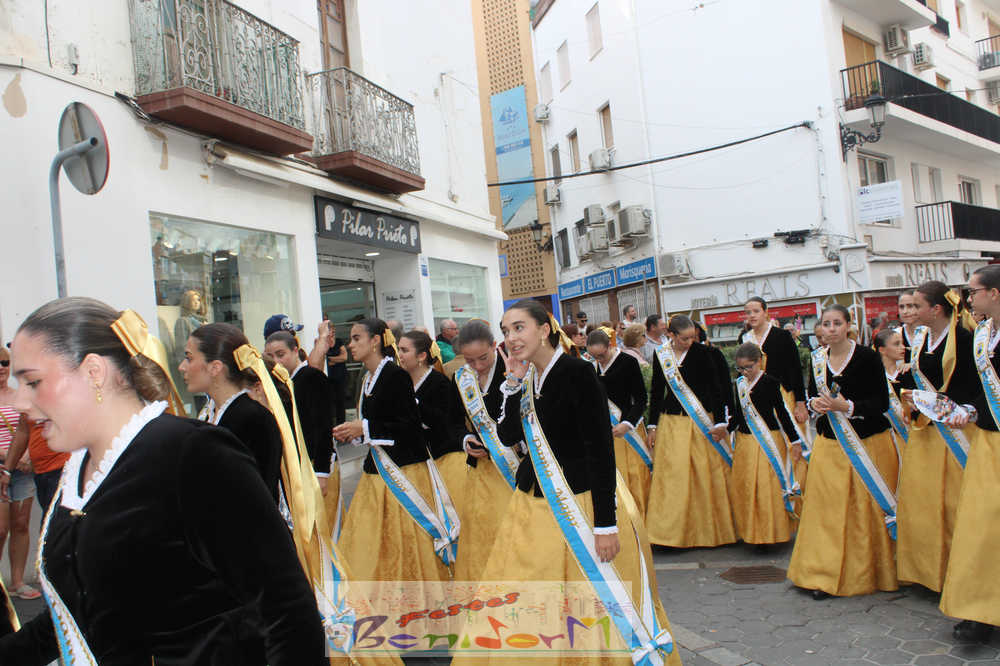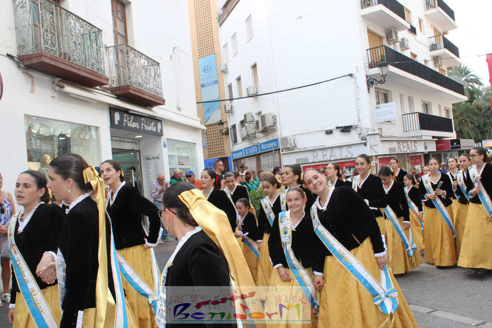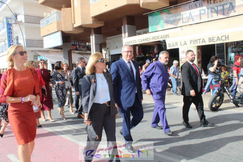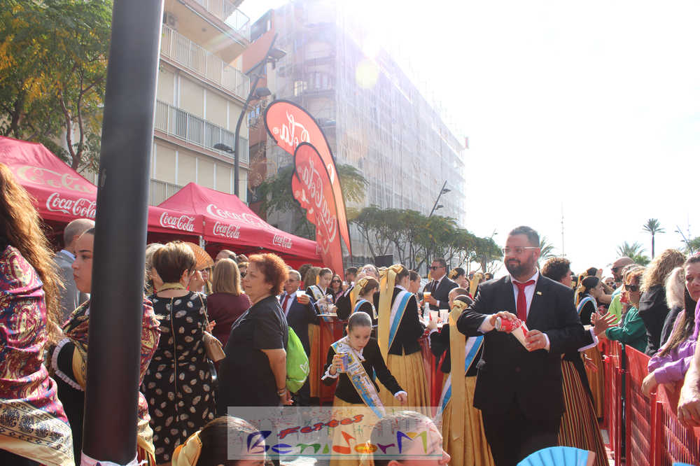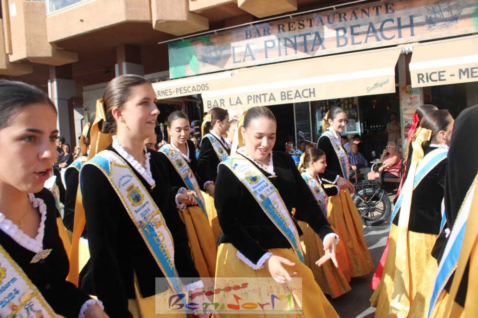 Con posterioridad, mayorales y autoridades han recogido a las reinas mayores, Valentina Alomodóbar y Laia Zamora para recorrer, en pasacalle, acompañados por las tres bandas de Benidorm, Unión, La Nova y l’Illa, la distancia que separa el Ayuntamiento de la Iglesia en la Plaza de Sant Jaume donde, a las 11.30, ha tenido lugar la misa en honor del patrón.