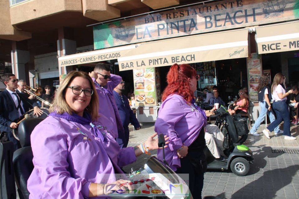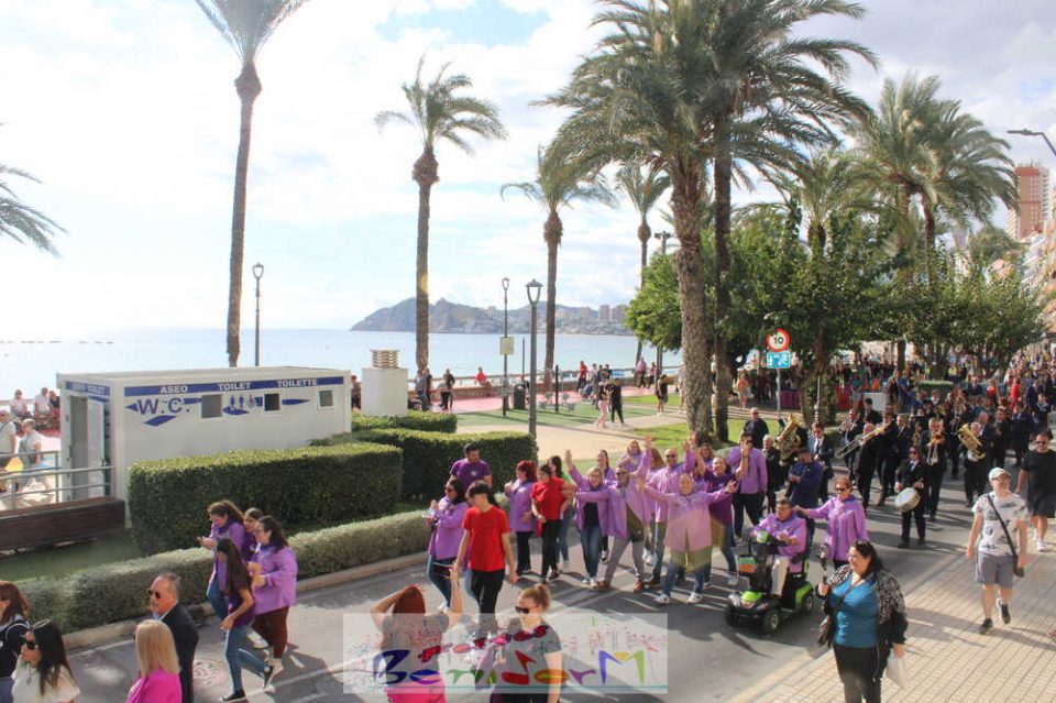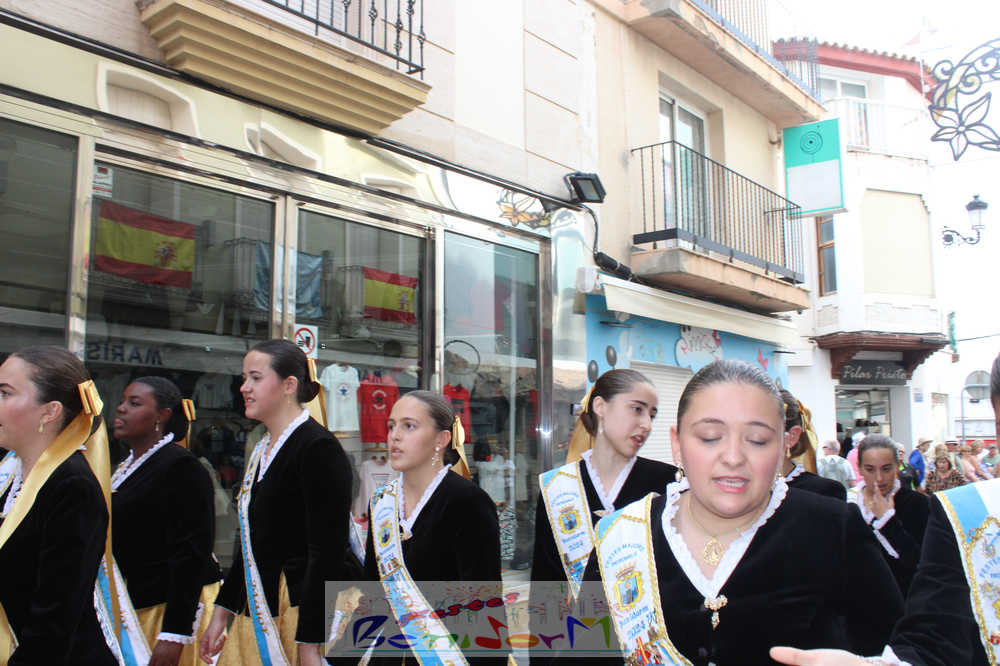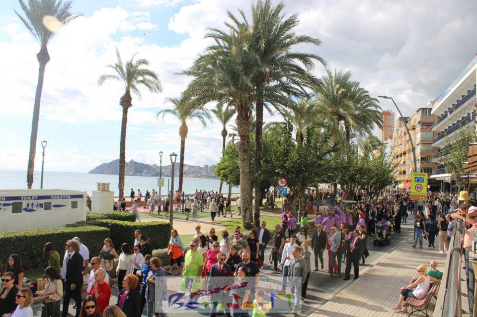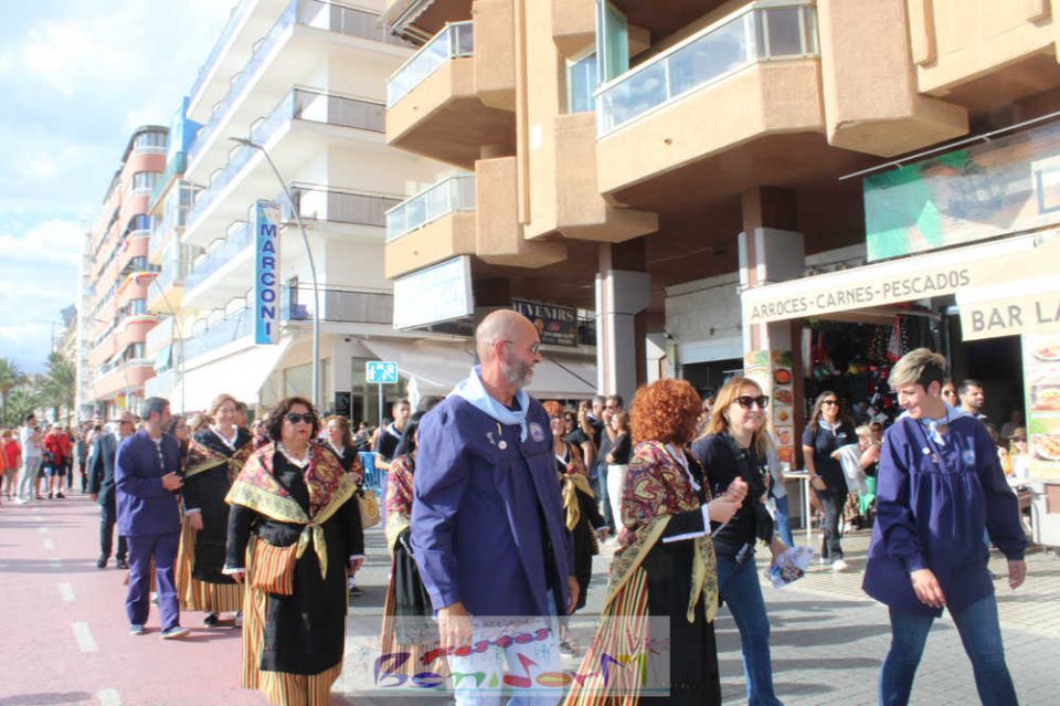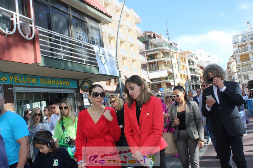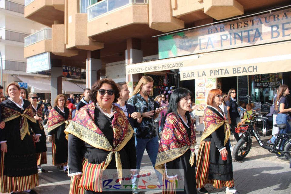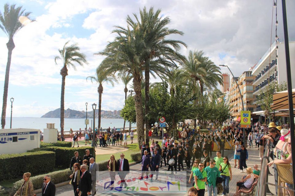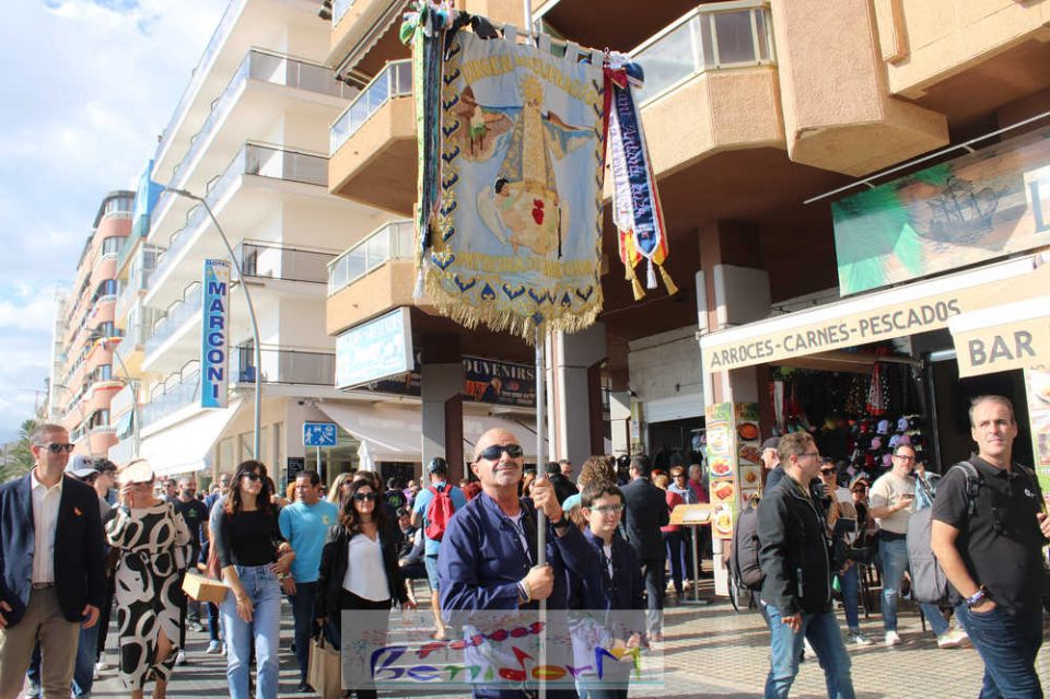 Con posterioridad, mayorales y autoridades han recogido a las reinas mayores, Valentina Alomodóbar y Laia Zamora para recorrer, en pasacalle, acompañados por las tres bandas de Benidorm, Unión, La Nova y l’Illa, la distancia que separa el Ayuntamiento de la Iglesia en la Plaza de Sant Jaume donde, a las 11.30, ha tenido lugar la misa en honor del patrón.