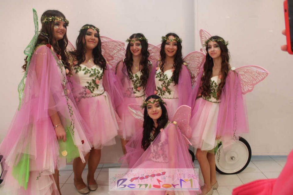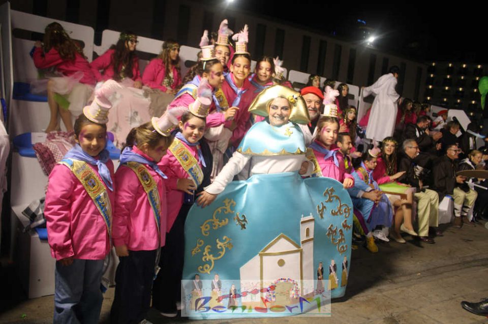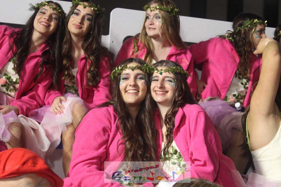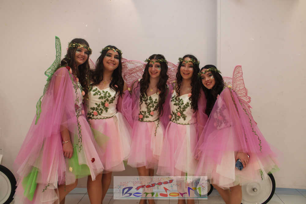 La reina de les Festes Majors Patronals y sus damas de honor han abierto el desfile, y tras ella, los mayorales de la Comissió. A continuación, los participantes en el concurso individual y, en último lugar, las peñas y grupos de amigos inscritos en el concurso de adultos. Casi setenta propuestas, rebosantes de originalidad y con un cuidado trabajo artresanal de elaboración previo.