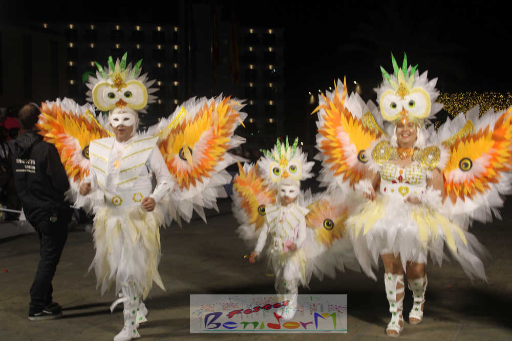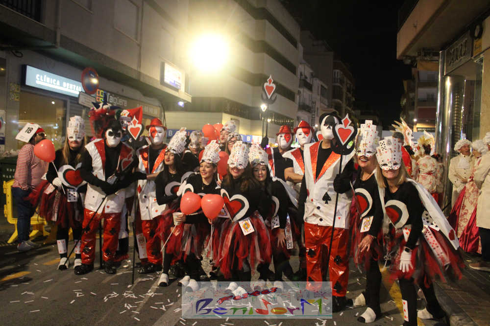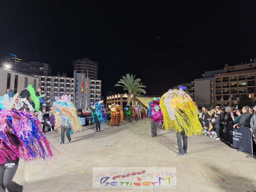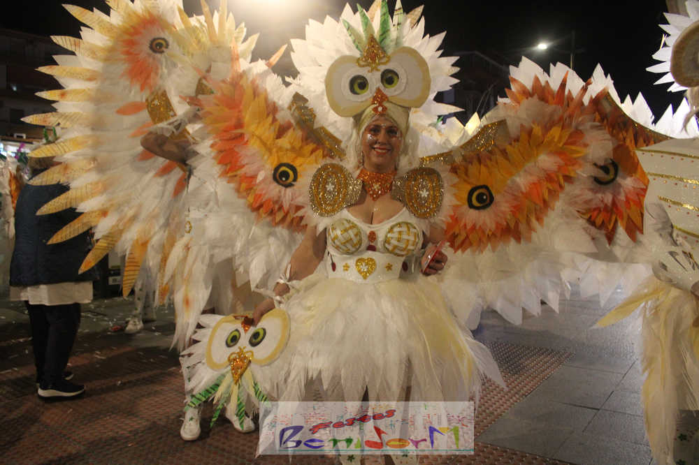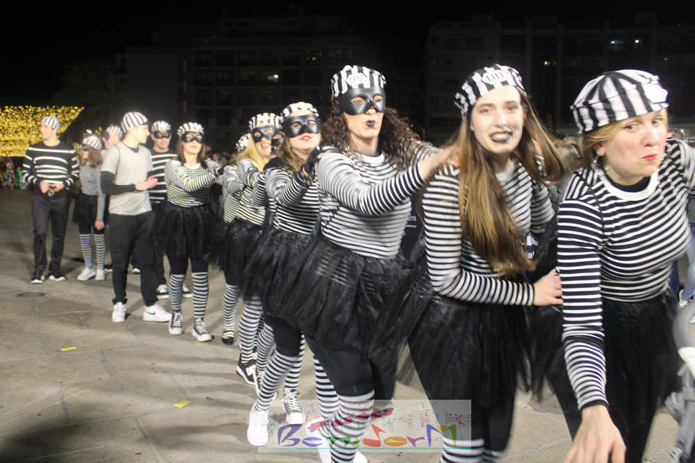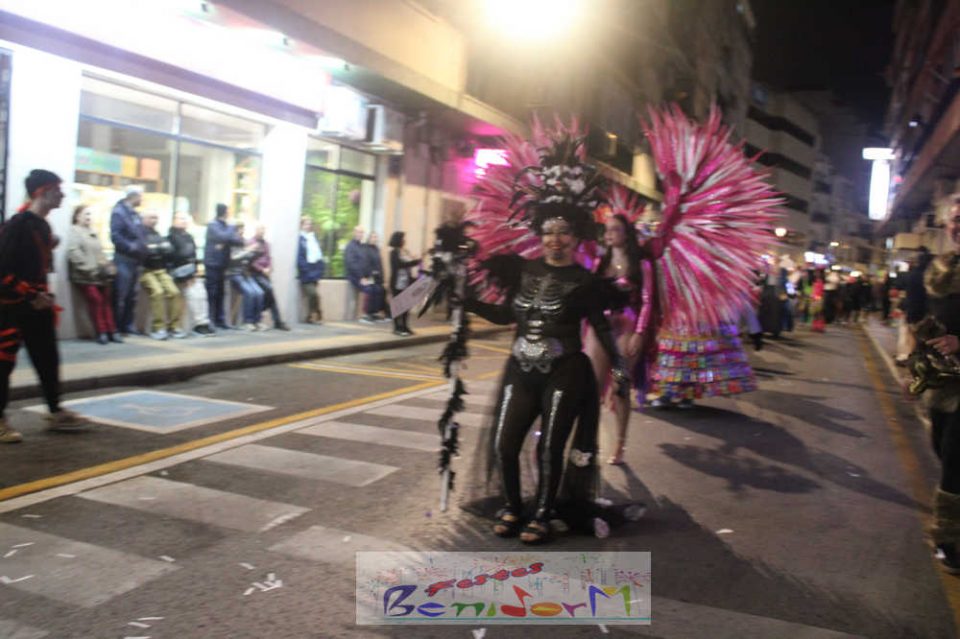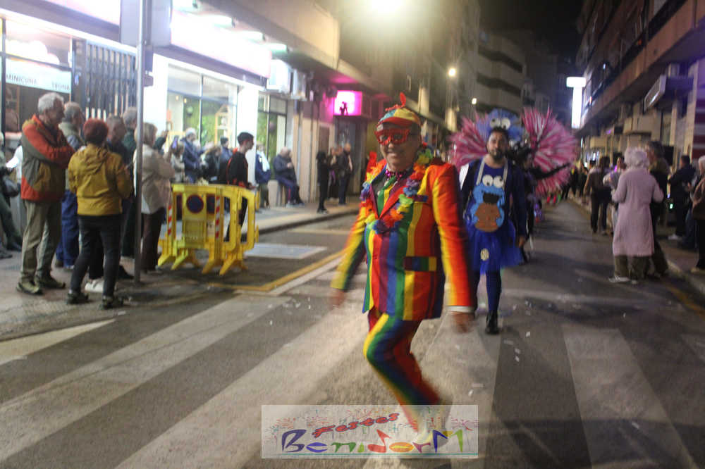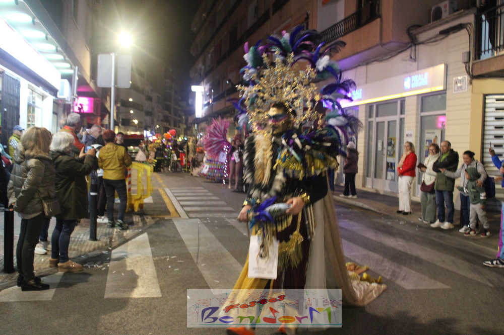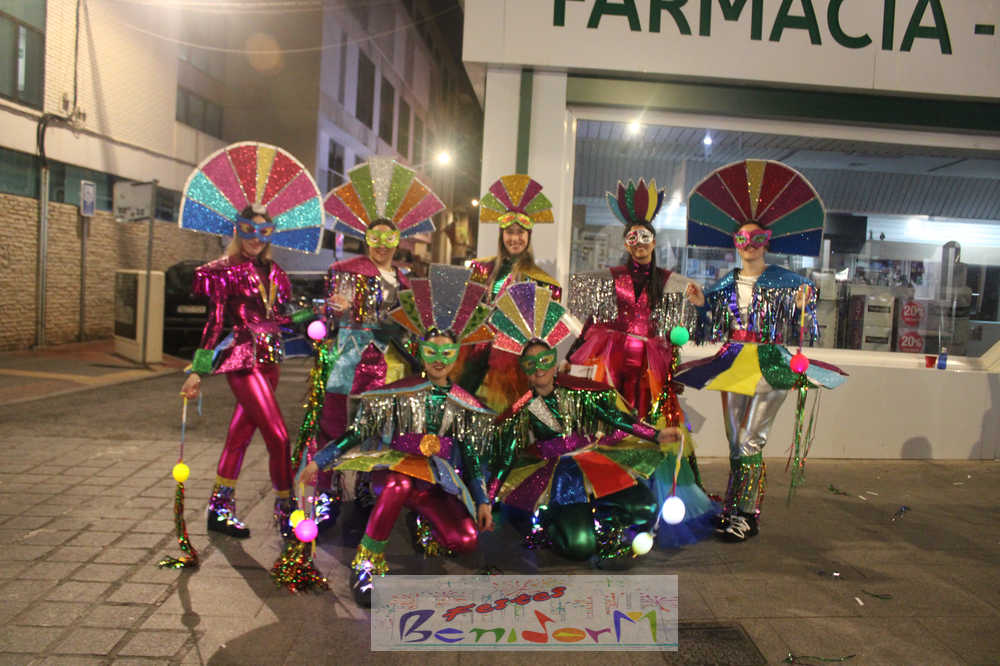 Benidorm ha disfrutado de una intensa noche de Carnaval con la celebración del desfile adulto, que ha reunido a miles de personas en sus calles más céntricas. Los participantes han salido a la calle con elaborados y originales disfraces, logrando que el desfile se haya desarrollado con éxito a lo que ha ayudado una de las noches más cálidas de febrero.