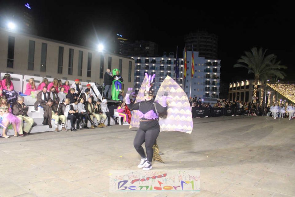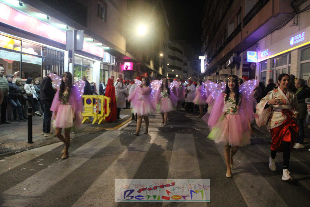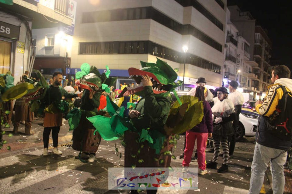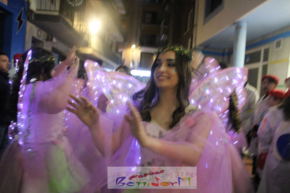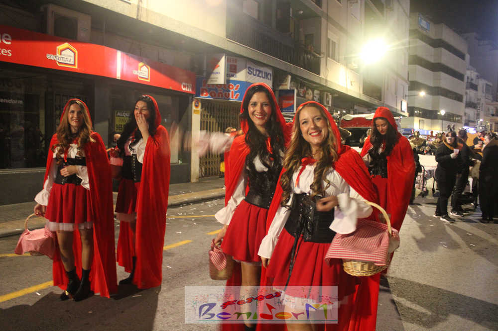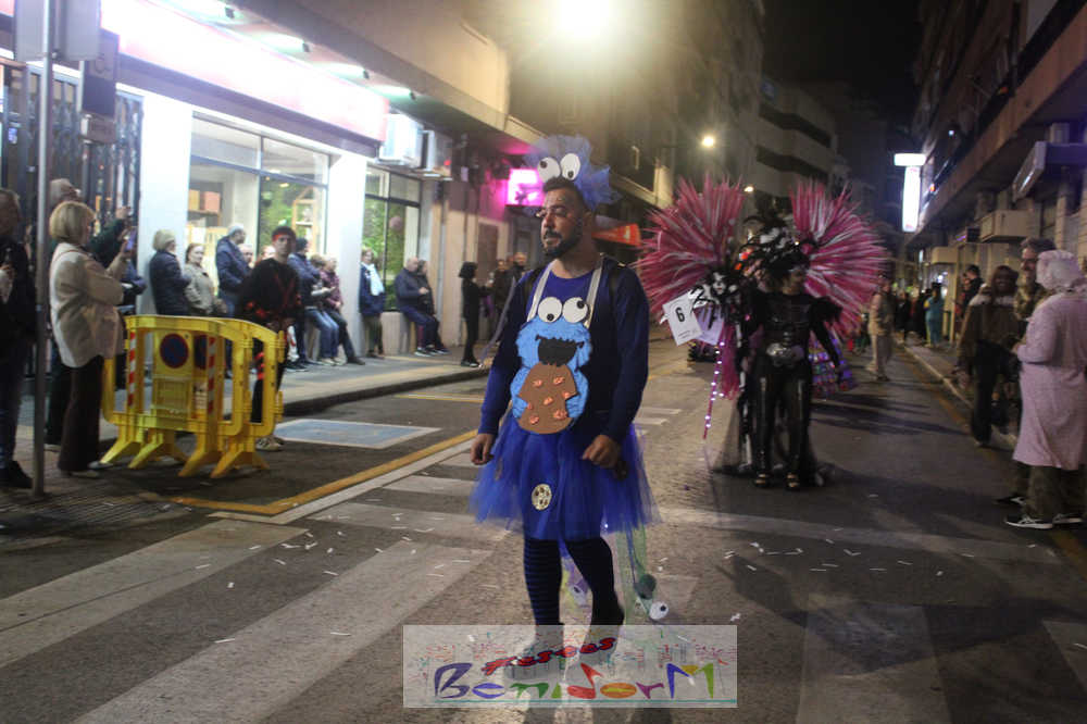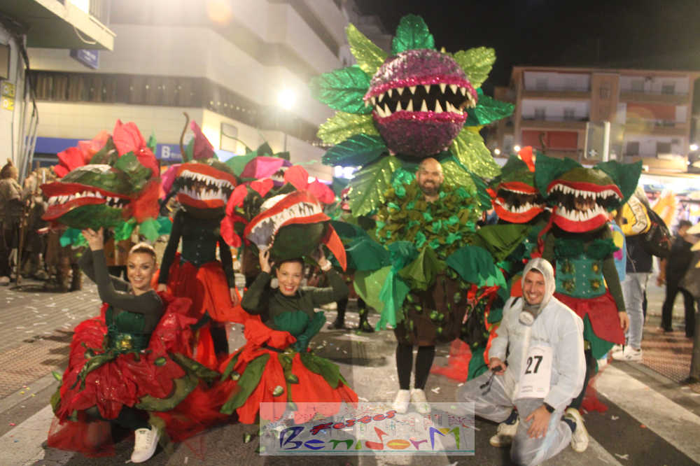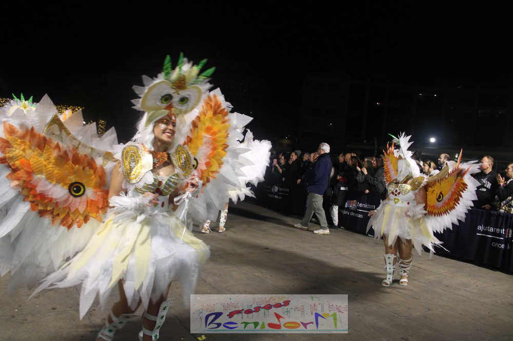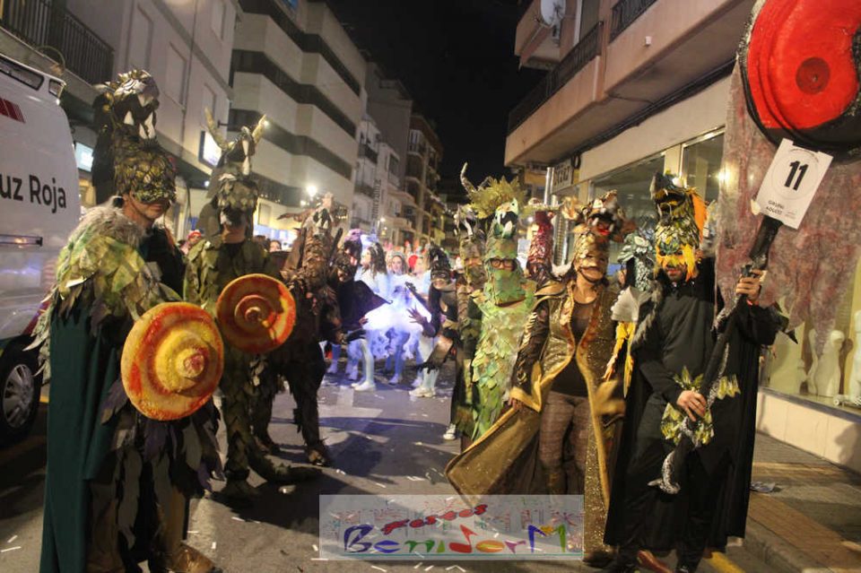Benidorm ha disfrutado de una intensa noche de Carnaval con la celebración del desfile adulto, que ha reunido a miles de personas en sus calles más céntricas. Los participantes han salido a la calle con elaborados y originales disfraces, logrando que el desfile se haya desarrollado con éxito a lo que ha ayudado una de las noches más cálidas de febrero.