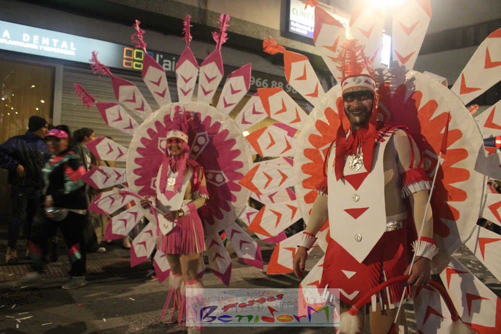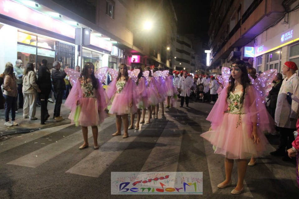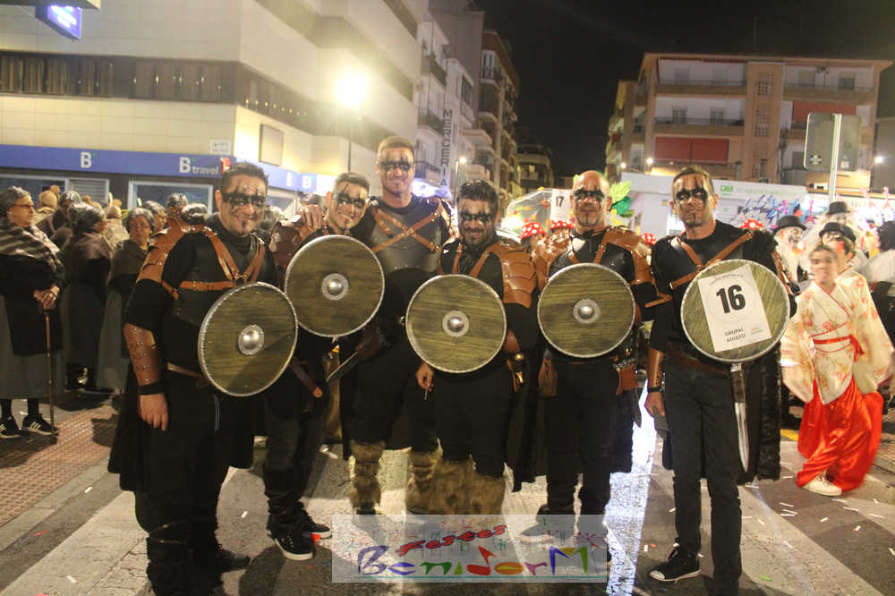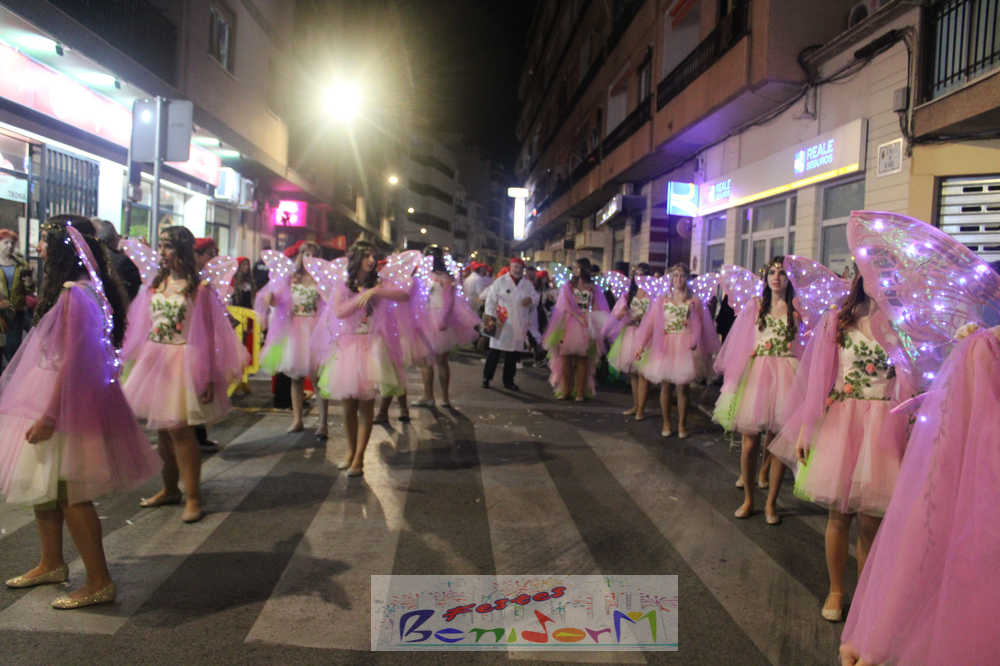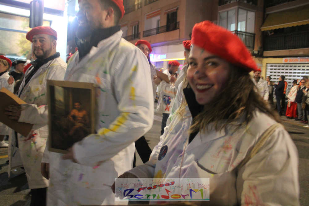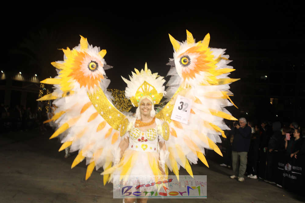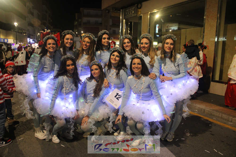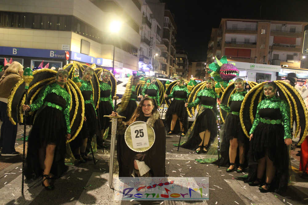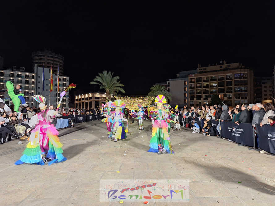 Benidorm ha disfrutado de una intensa noche de Carnaval con la celebración del desfile adulto, que ha reunido a miles de personas en sus calles más céntricas. Los participantes han salido a la calle con elaborados y originales disfraces, logrando que el desfile se haya desarrollado con éxito a lo que ha ayudado una de las noches más cálidas de febrero.