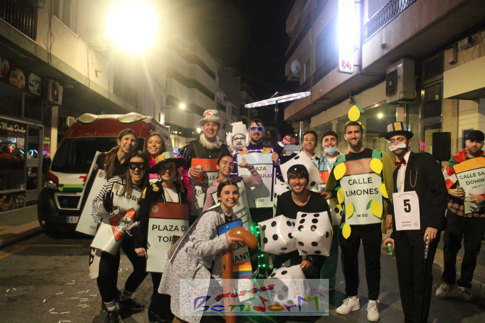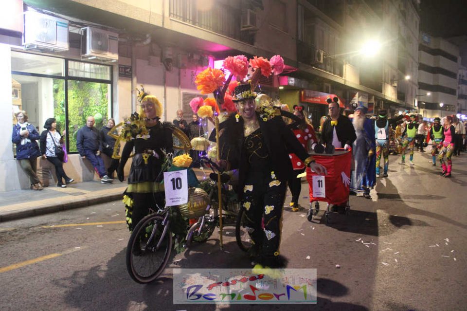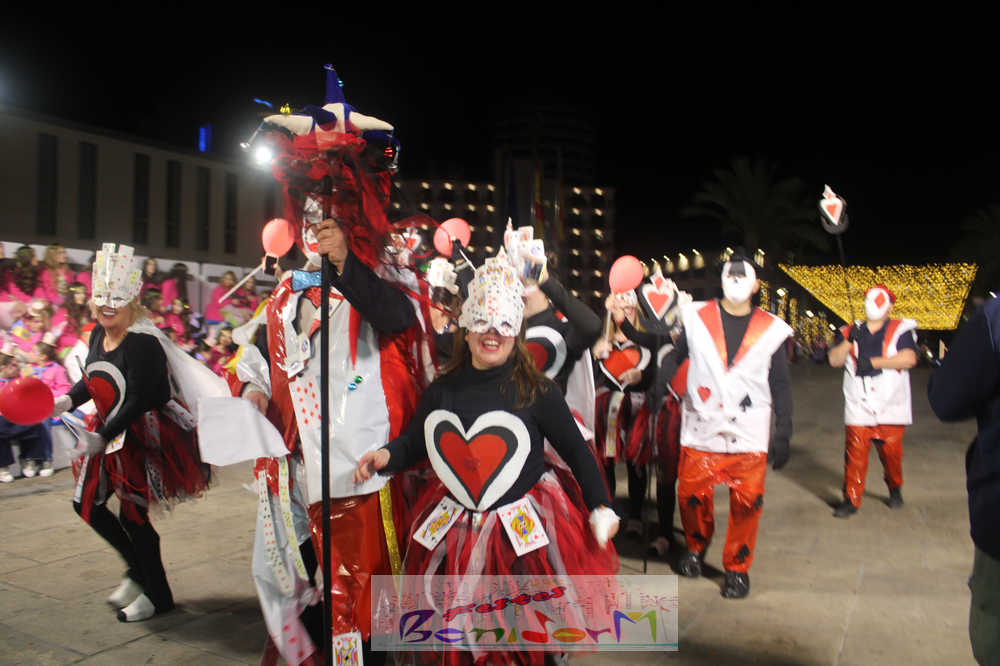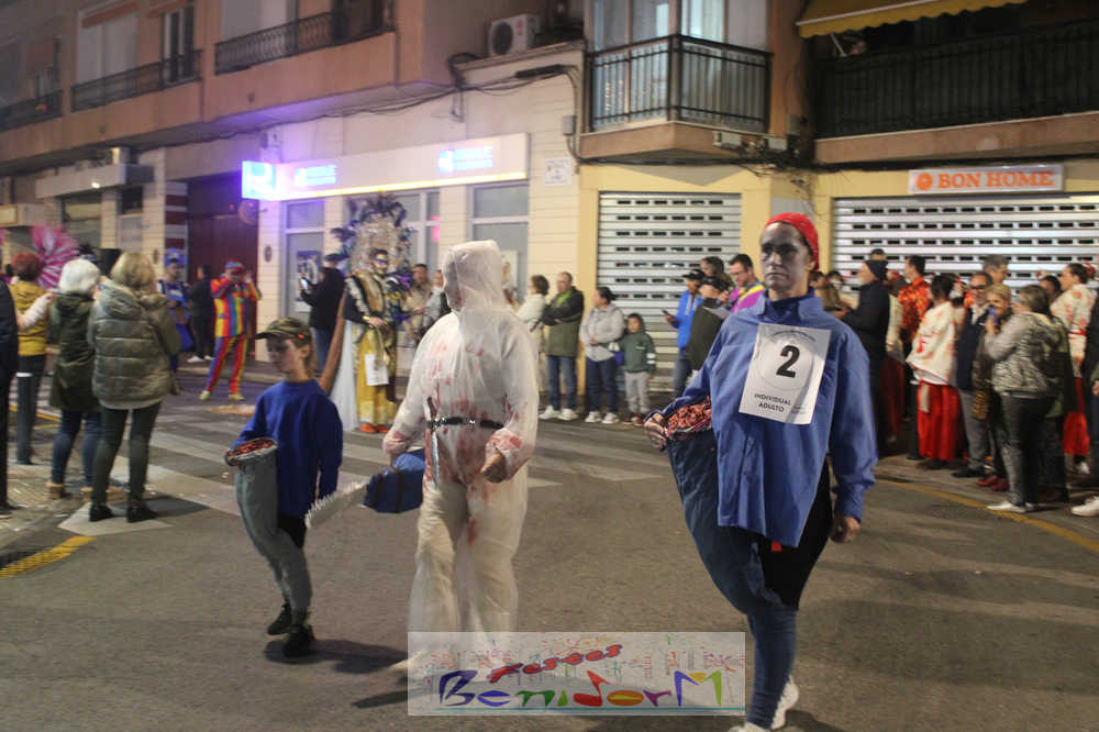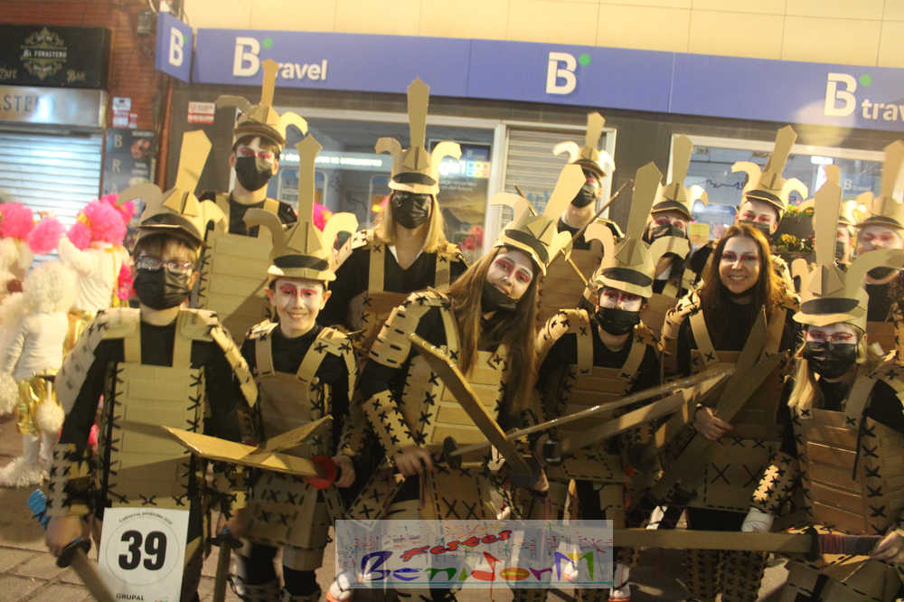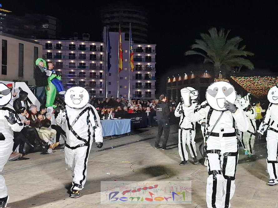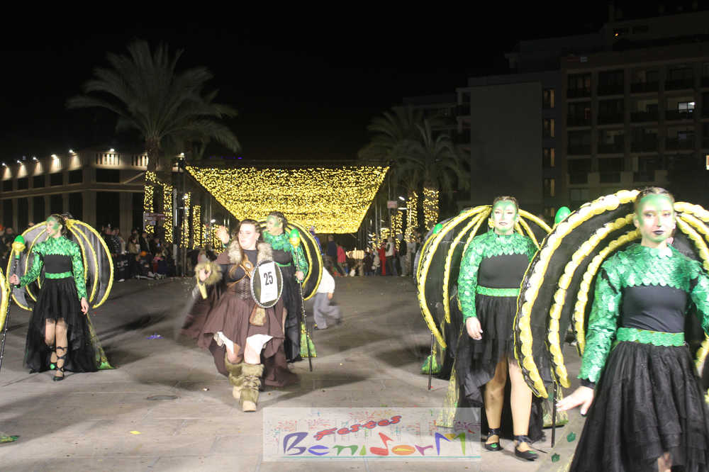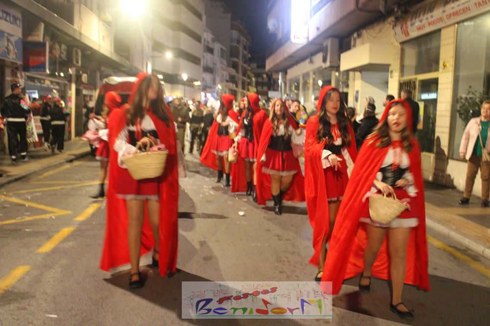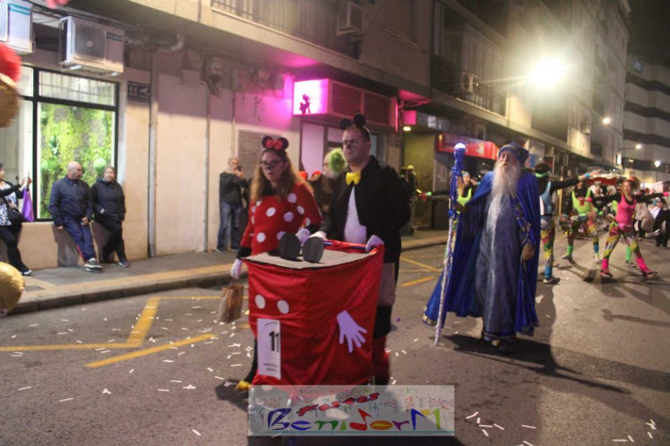 Benidorm ha disfrutado de una intensa noche de Carnaval con la celebración del desfile adulto, que ha reunido a miles de personas en sus calles más céntricas. Los participantes han salido a la calle con elaborados y originales disfraces, logrando que el desfile se haya desarrollado con éxito a lo que ha ayudado una de las noches más cálidas de febrero.