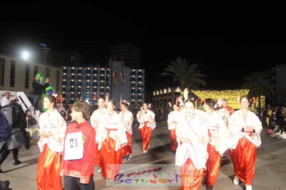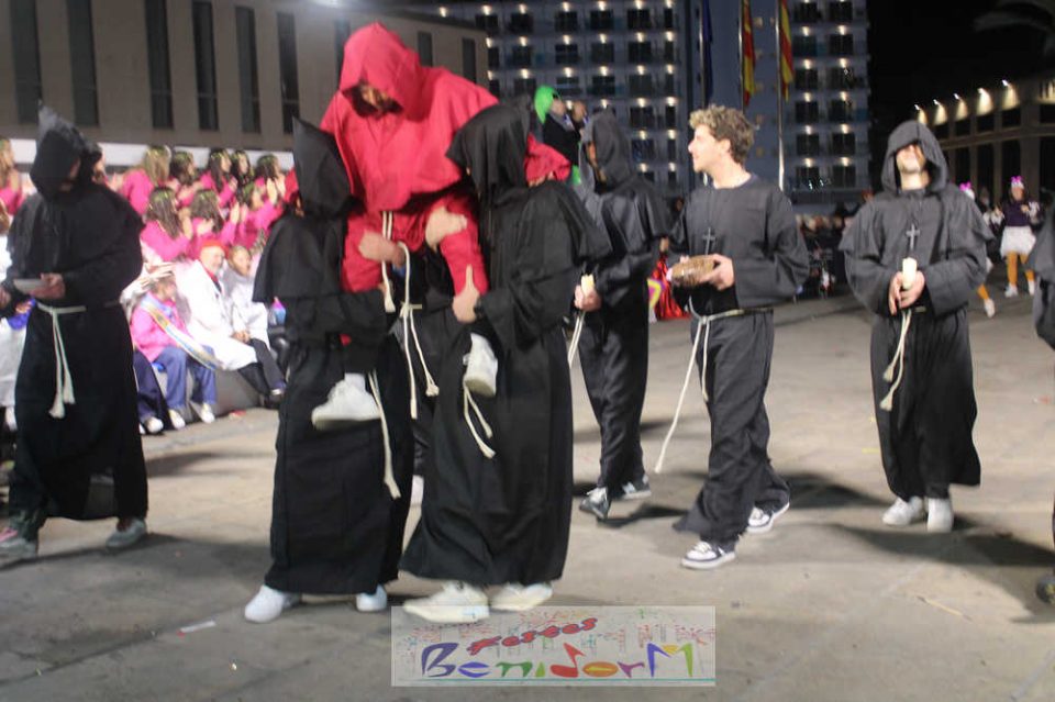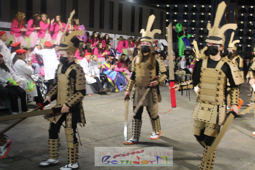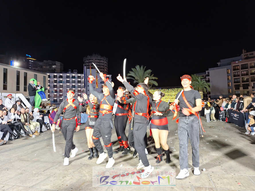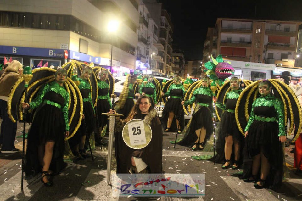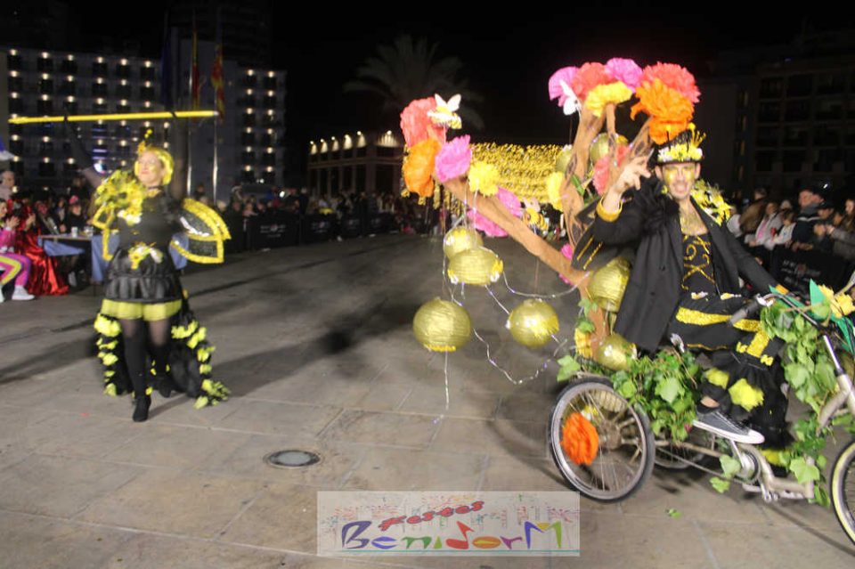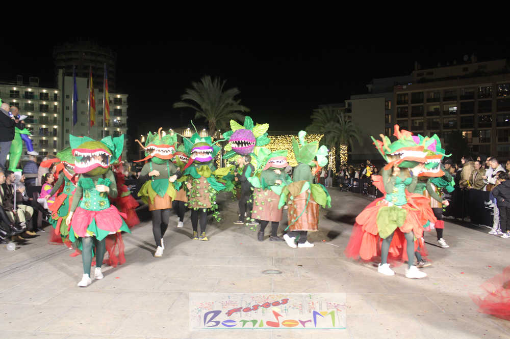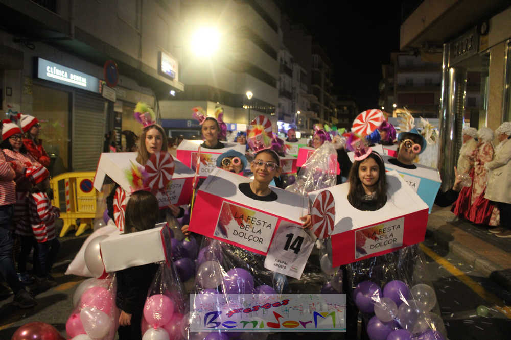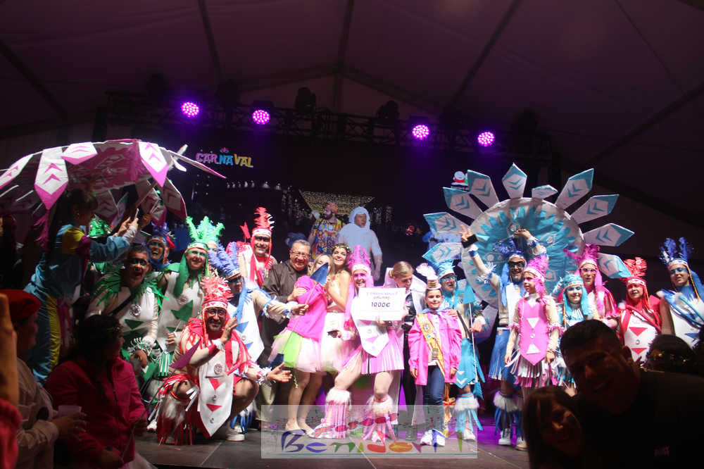 Benidorm ha disfrutado de una intensa noche de Carnaval con la celebración del desfile adulto, que ha reunido a miles de personas en sus calles más céntricas. Los participantes han salido a la calle con elaborados y originales disfraces, logrando que el desfile se haya desarrollado con éxito a lo que ha ayudado una de las noches más cálidas de febrero.