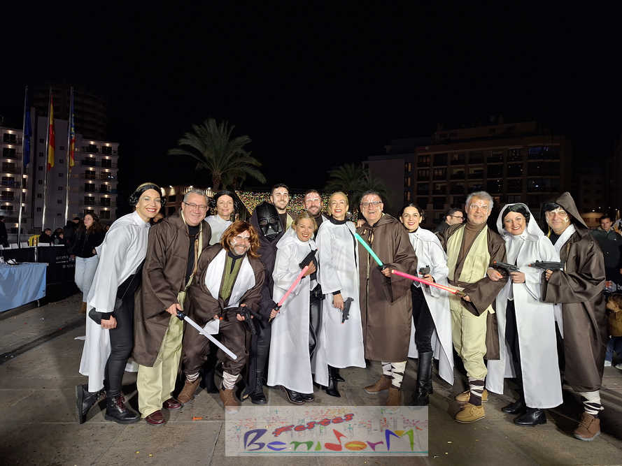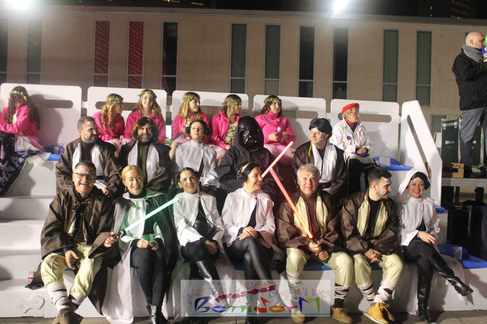 El desfile ha partido poco después de las 21.30 desde la calle Venus y ha recorrido el centro urbano hasta llegar a la plaza del Ayuntamiento. Allí, el alcalde de la ciudad, Toni Pérez; la concejal de Fiestas, Mariló Cebreros; el equipo de gobierno local y el también diputado autonómico, José Ramón González de Zárate, han seguido el desfile desde la tribuna oficial, con indumentaria de los personajes de la saga cinematográfica Star Wars, junto a las reinas de las Festes Majors Patronals 2026, Laura Ivars y Carmen Guillem, sus cortes de honor y los presidentes de la Comissió de FMP y de la Associació de Penyes Verge del Sofratge, Ramón Cano y Diego Carrasco.