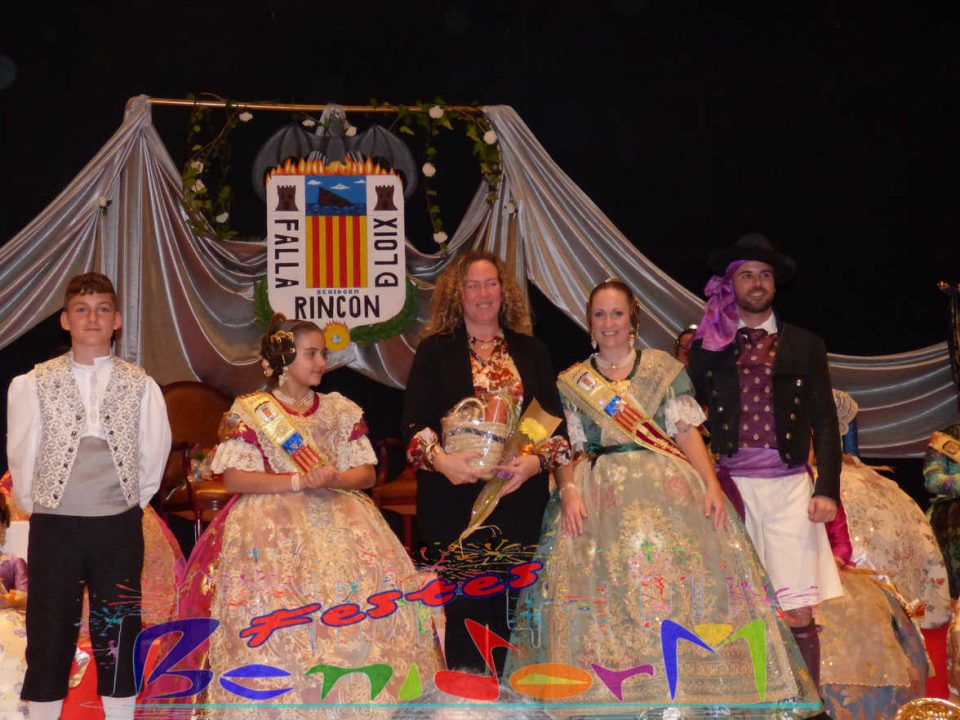 Verónica Company, doctora y profesora de la Universidad Miguel Hernández y ex integrante de la falla (Perteneció a la Falla Rincón de Loix desde 1998 cuando fue Fallera Mayor Infantil hasta 2012), fue la mantenedora de la exaltación, y en donde efectuó un recorrido de los momentos vividos en la falla y lo que le aportó en su vida personal, como son experiencias y valores, entre otras cosas.