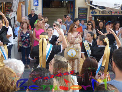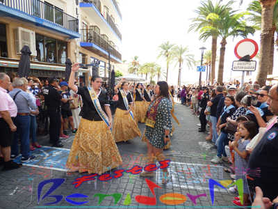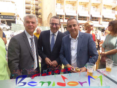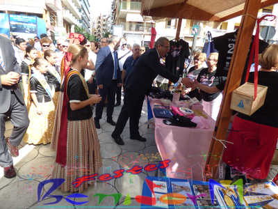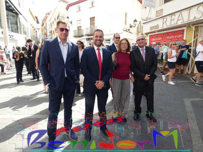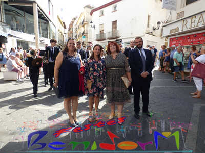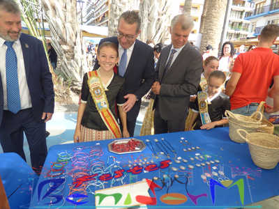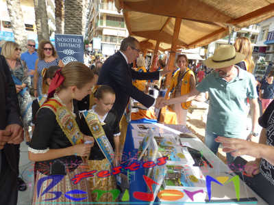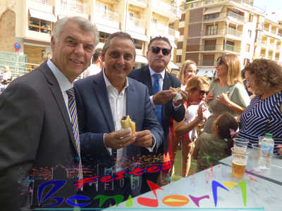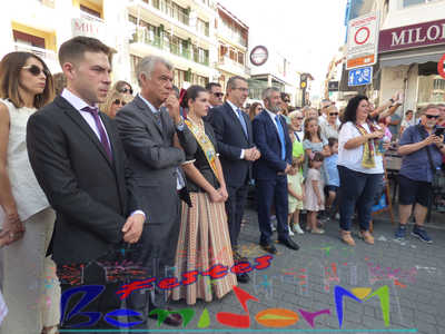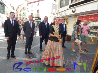 El alcalde de Benidorm, Toni Pérez, y el concejal de Fiestas, Jesús Carrobles, miembros de la corporación municipal, han acompañado a las reinas de les Festes Majors Patronals 2022, Aila Merenciano y Chloe D’Hebroodt, junto a sus damas; y los presidentes de la Comissió y la Associació de Penyes ‘Verge del Sofratge’, José Vicente Fuster y Adrián Romero, a la apertura de la Fira, bajo el sonido de La Colla de Xirimiters de la Marina y los compases de la Unión Musical de Benidorm, y en donde las reinas y damas bailaron ‘el Peuet’ en el Paseo de Colón.