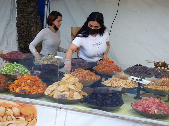 Vecinos y vecinos encontraron decenas de puestos de embutidos, pan artesano, bollería, quesos, chocolates, salazones, aceites, mimbre y otros productos tradicionales de la tierra, además de joyería, menaje y libros.