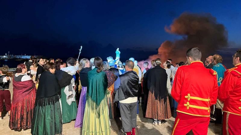 La Playa de Poniente ha acogido, un año más, y ante miles de vecinos y turistas, la recreación del Hallazgo de la Mare de Déu del Sofratge, a cargo de la Asociació Cultural Recreativa ‘La Barqueta’, fiesta de Interés Turístico de la Comunitat Valenciana, en la que más de medio centenar de personas han rememorado la llegada de la Virgen a la ciudad.