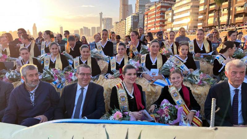 Entre los asistentes, el alcalde, Toni Pérez, el concejal de Fiestas, Jesús Carrobles, y la mayoría de la corporación municipal. Como representantes institucionales, el diputado nacional, Agustín Almodóbar; el autonómico, Manuel Pérez Fenoll; el provincial, José Ramón González de Zárate y el Director General de Relacions Informatives de la Generalitat, Pere Rostoll. Todos ellos arroparon a las reinas de Benidorm 2022, Aila Merenciano y Chloé D’Hebboudt y a todo el colectivo festero representado por los presidentes de la Comissió y Associación de Penyes ‘Verge del Sofratge’, José Vicente Fuster y Adrián Romero.