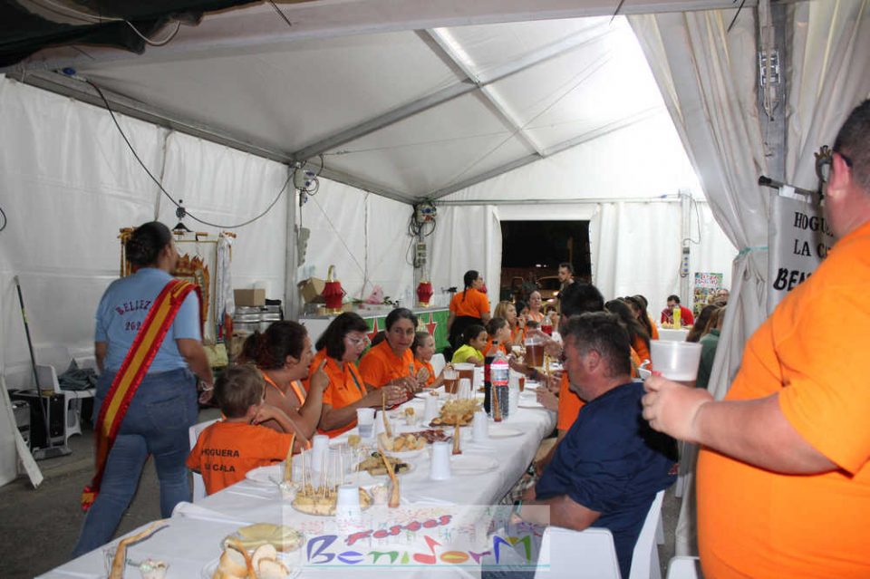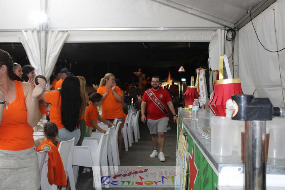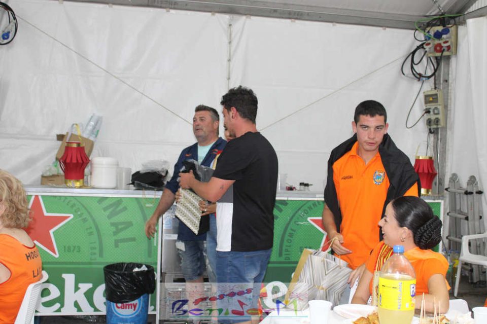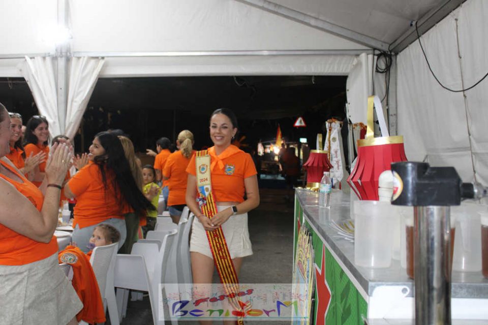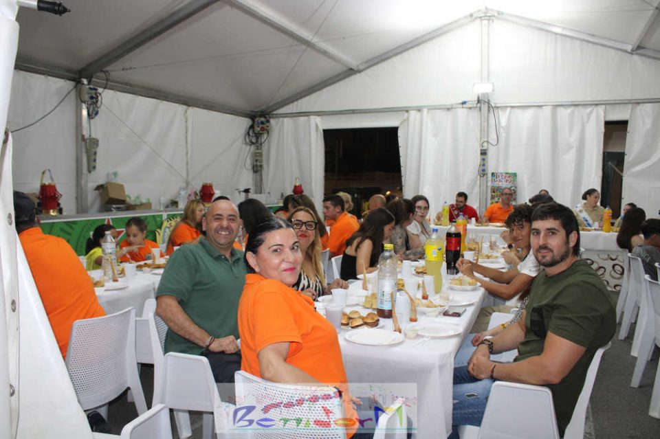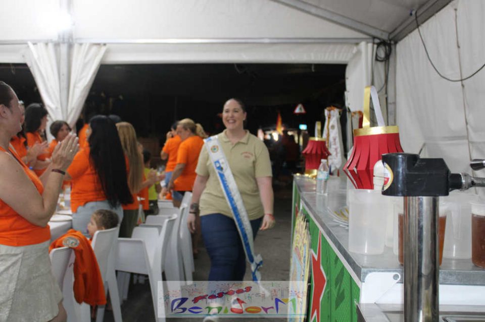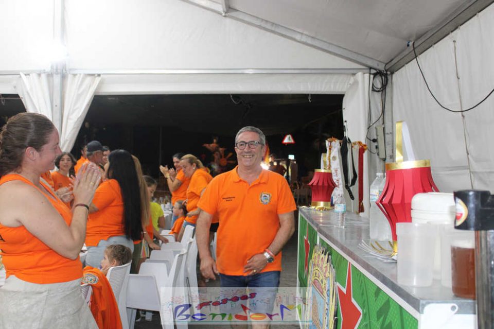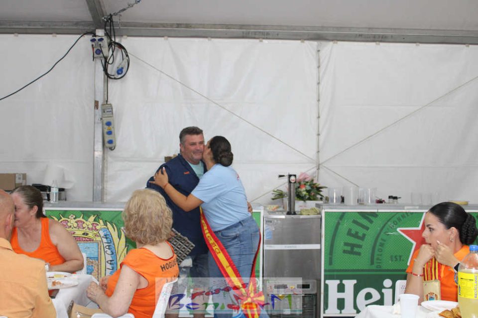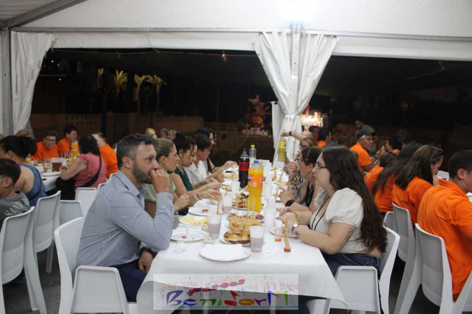 Una vez en la carpa, disfrutaron bailando con la charanga Patoband y mas tarde se hizo una cena que ofrecía la Belleza para los componentes de la Hoguera e invitados.
