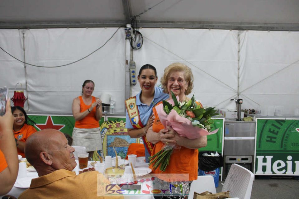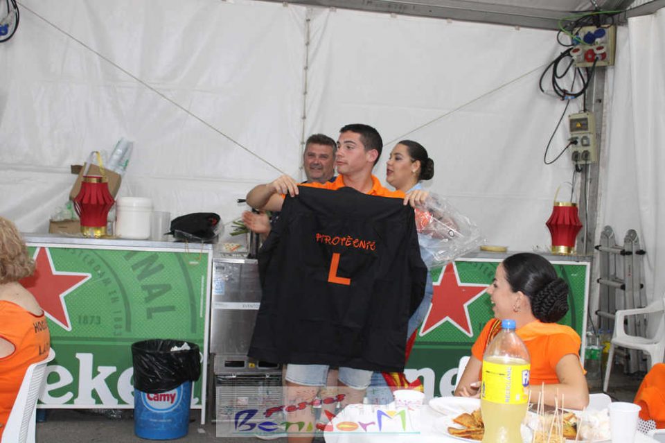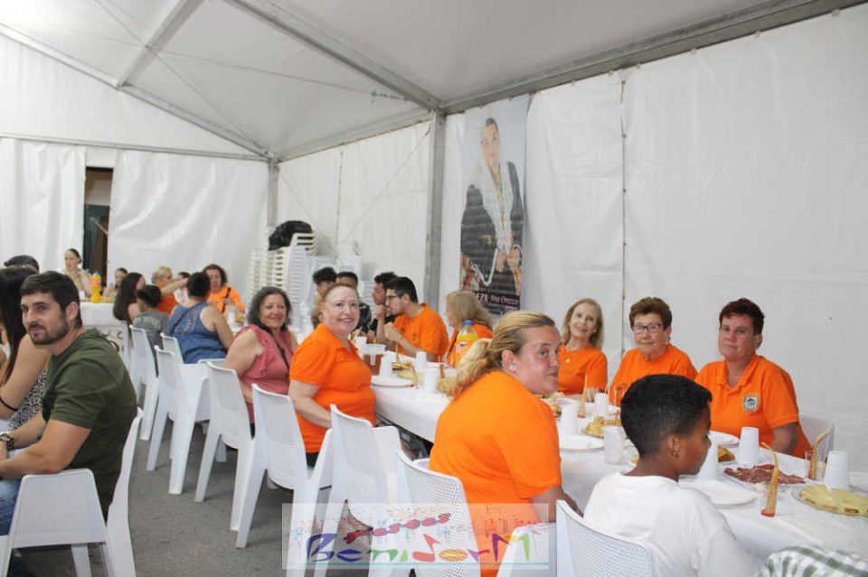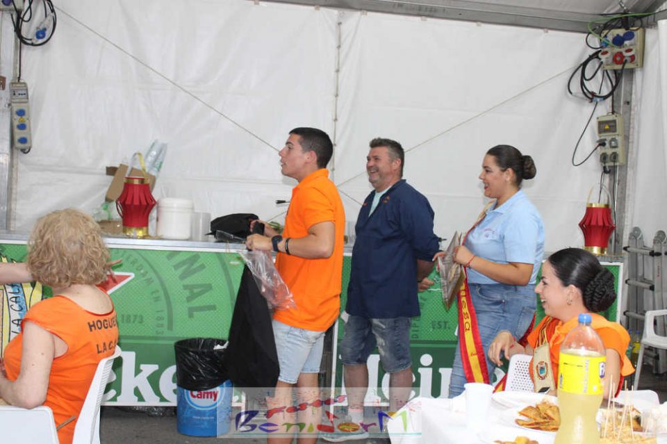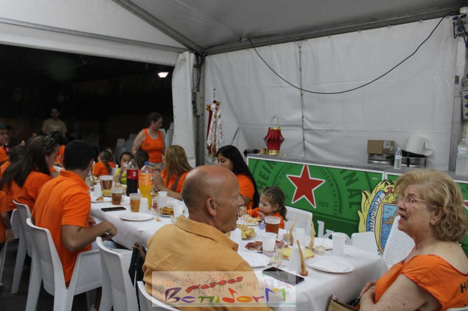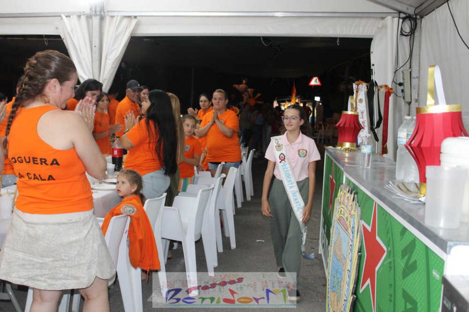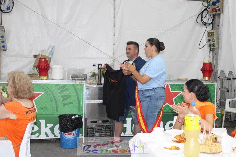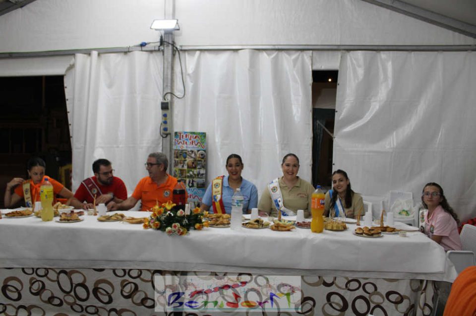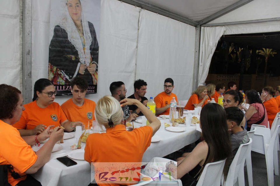 Una vez en la carpa, disfrutaron bailando con la charanga Patoband y mas tarde se hizo una cena que ofrecía la Belleza para los componentes de la Hoguera e invitados.