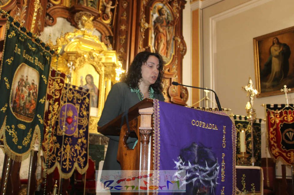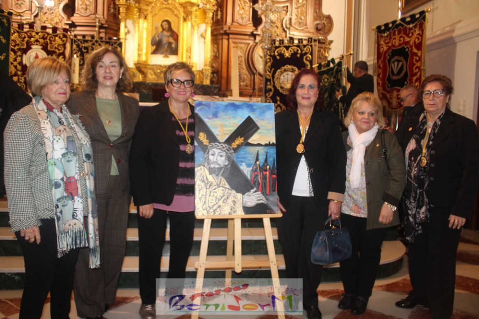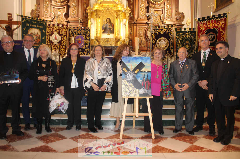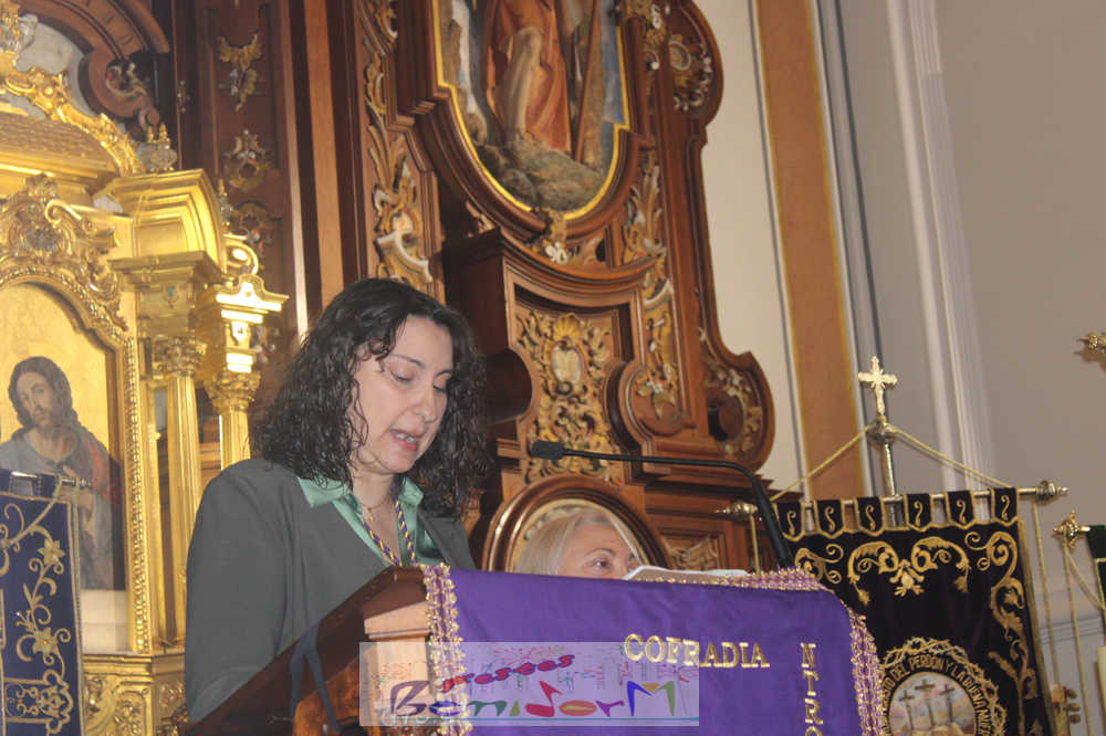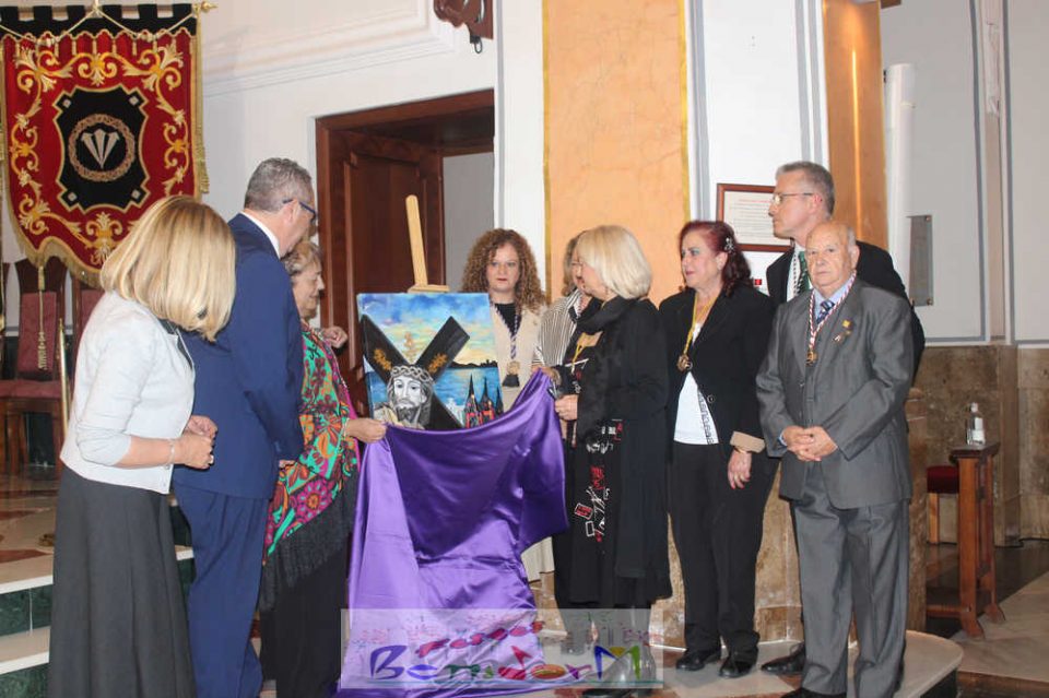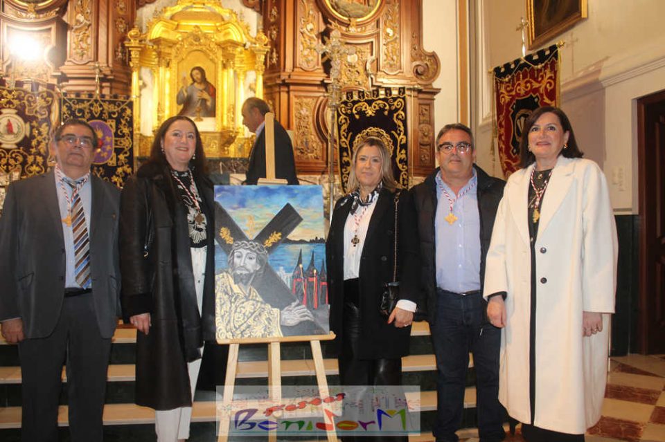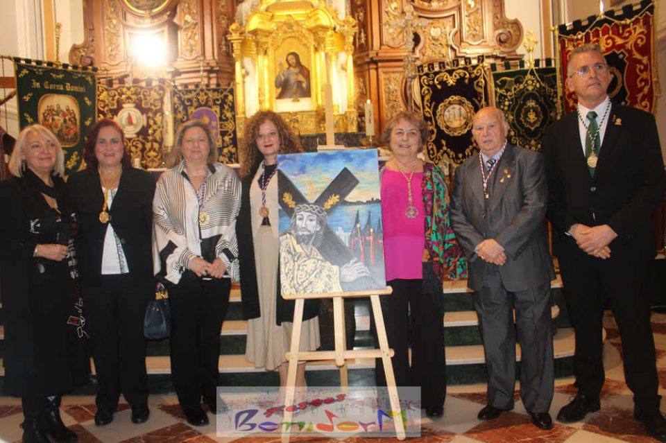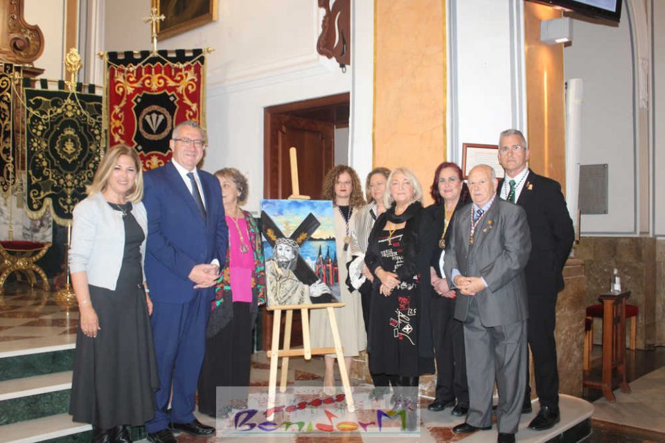 El acto, organizado por la Cofradía Nuestro Padre Jesús Nazareno con la presidencia de María Dolores Cano, comenzó como es tradicional con el descubrimiento del cartel anunciador, obra de la artista Carmen Alvado, nacida en Benidorm, que comenzó siendo autodidacta y después perfeccionó su técnica en varias academias.