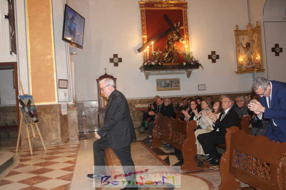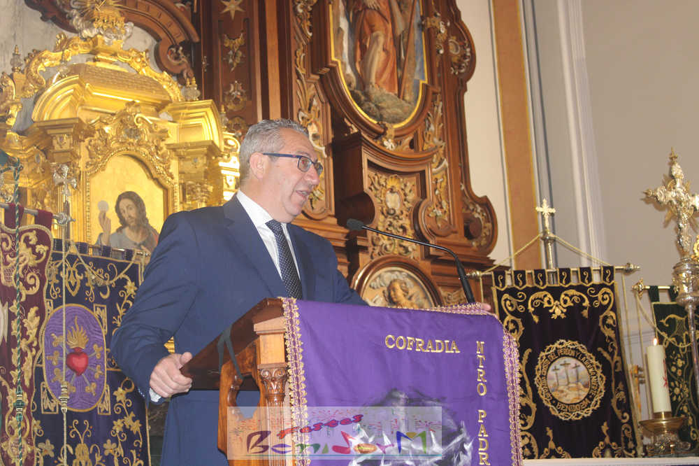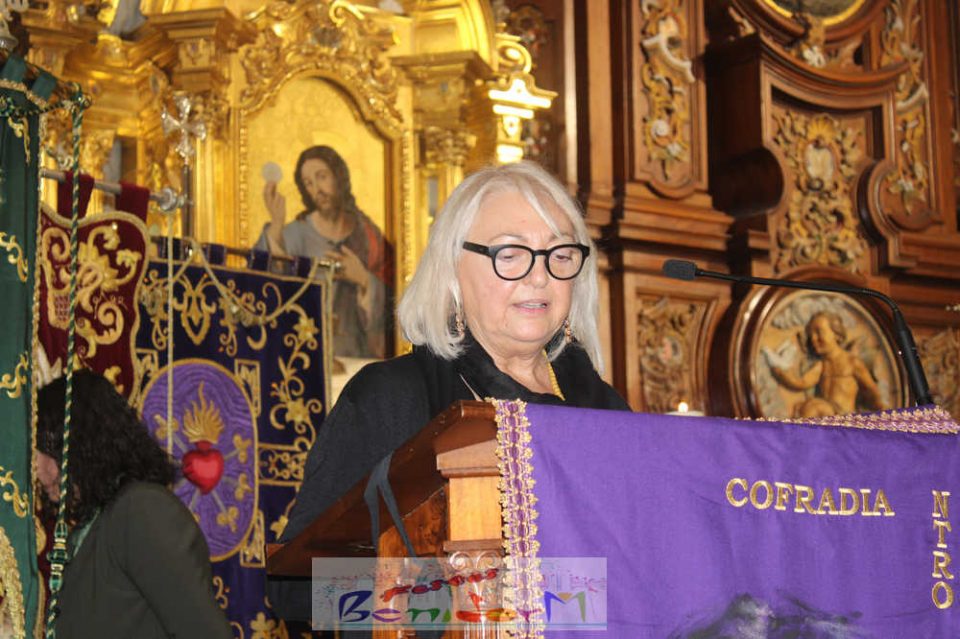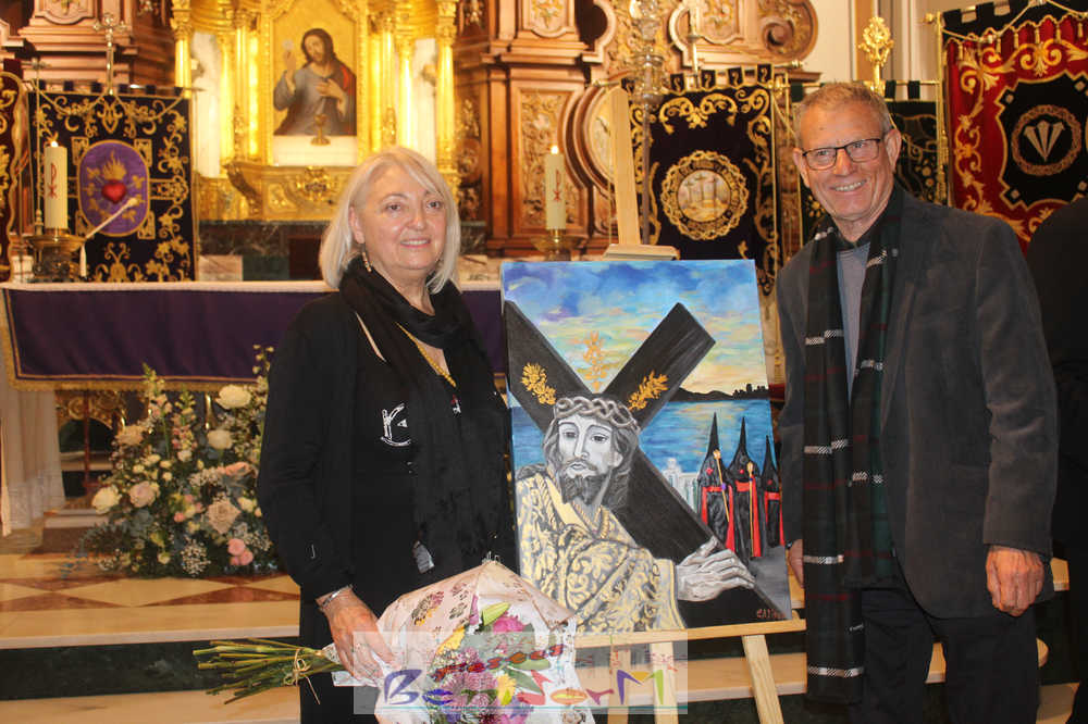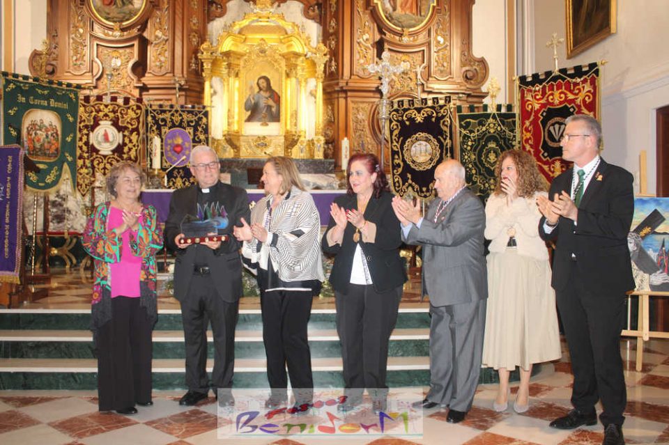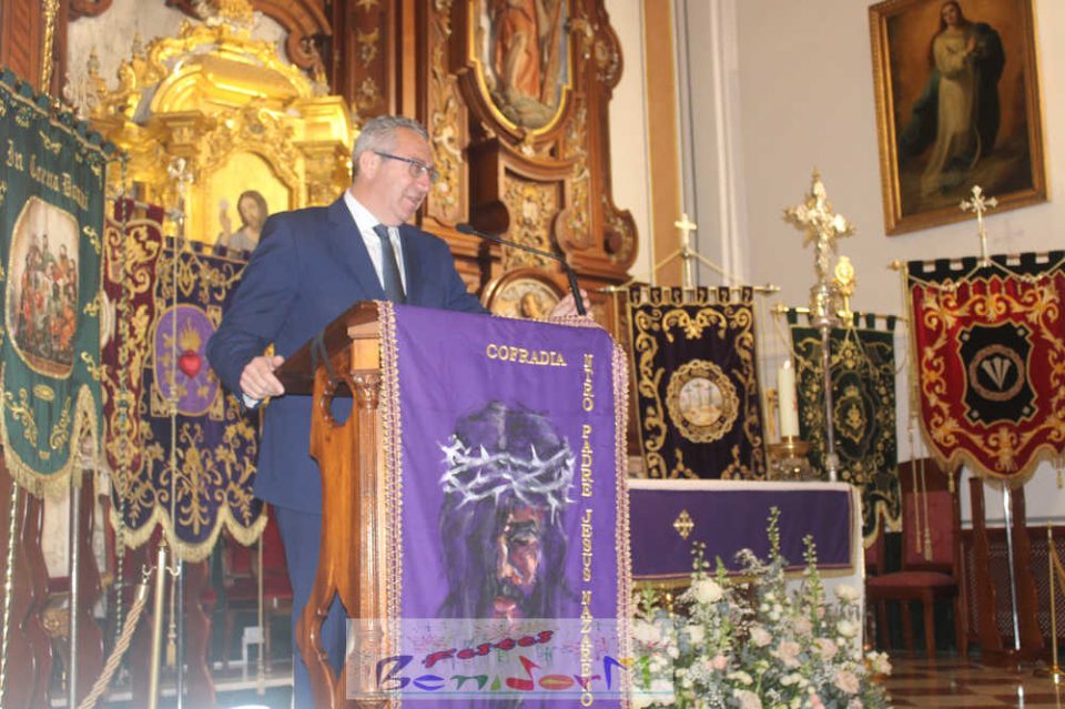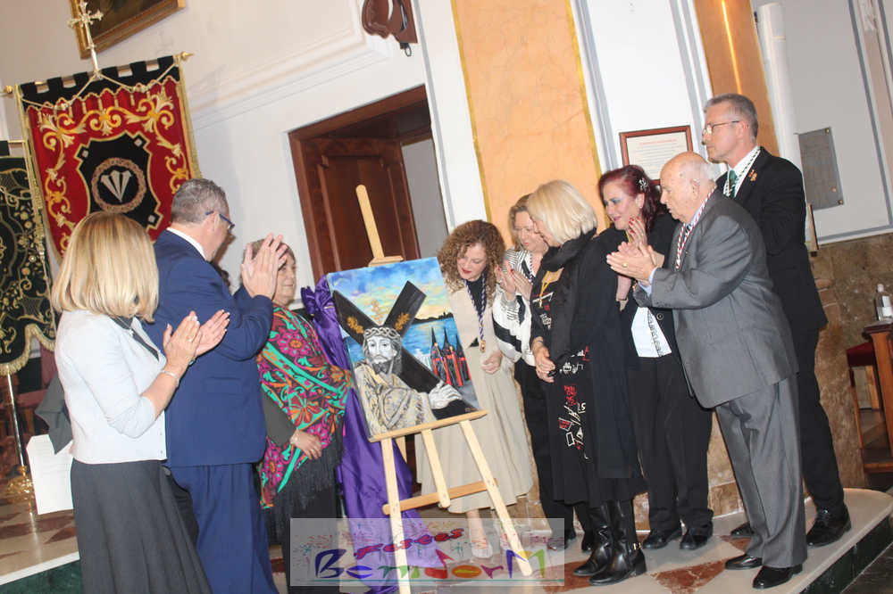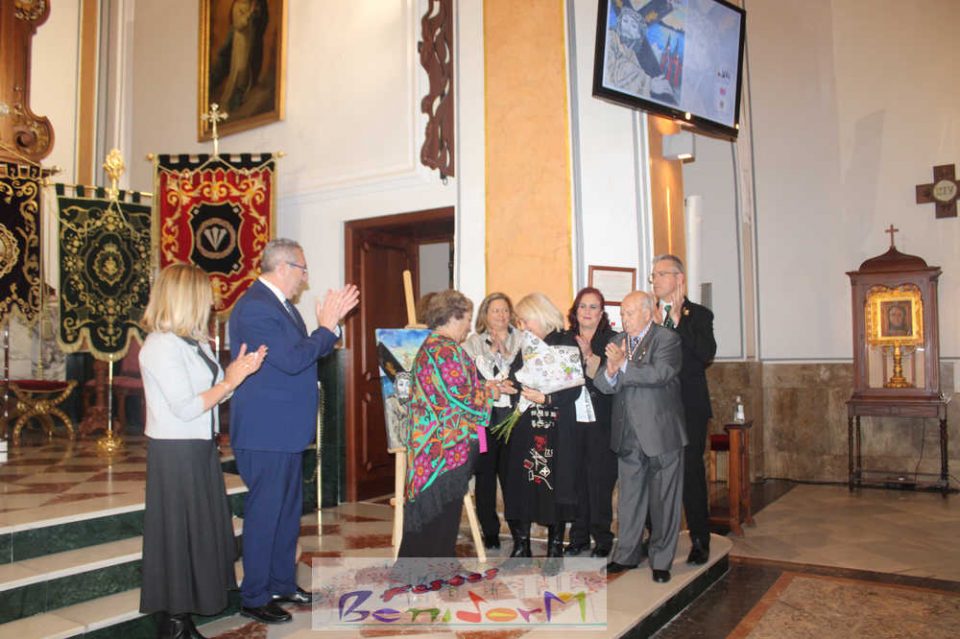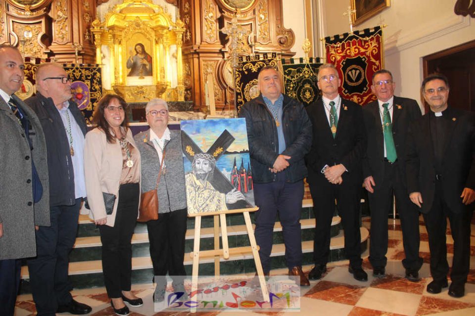 El acto, organizado por la Cofradía Nuestro Padre Jesús Nazareno con la presidencia de María Dolores Cano, comenzó como es tradicional con el descubrimiento del cartel anunciador, obra de la artista Carmen Alvado, nacida en Benidorm, que comenzó siendo autodidacta y después perfeccionó su técnica en varias academias.