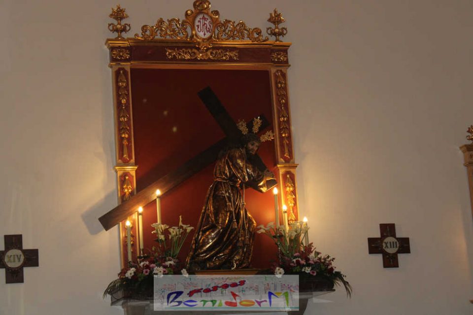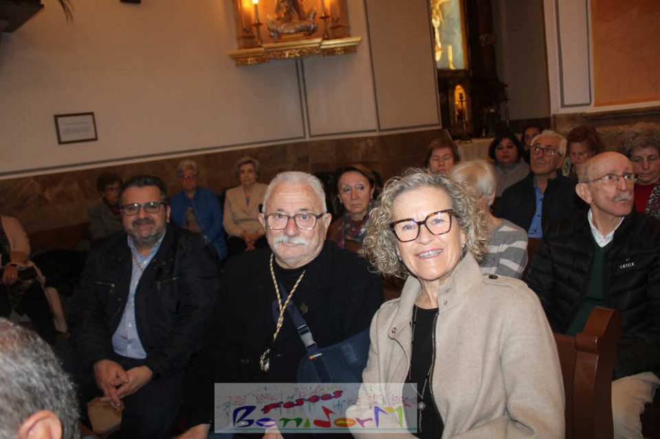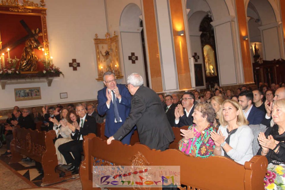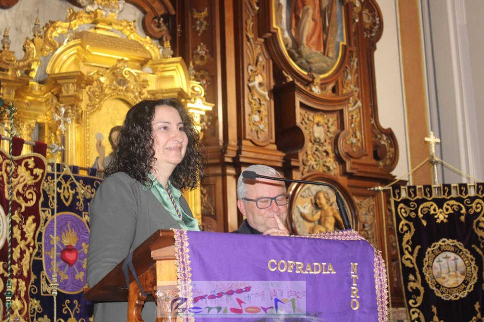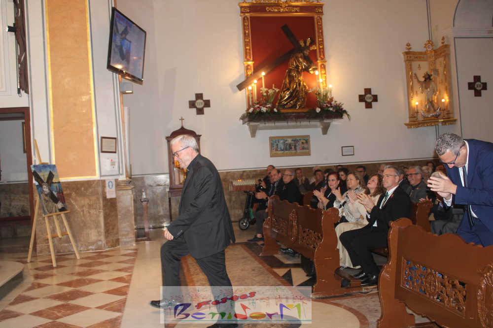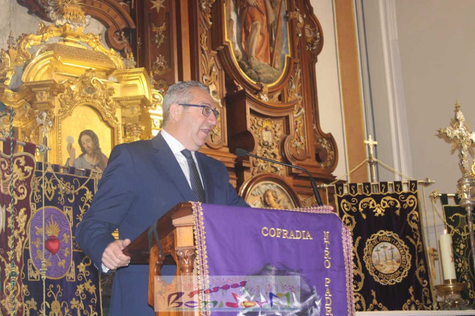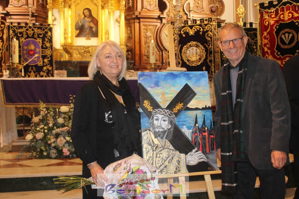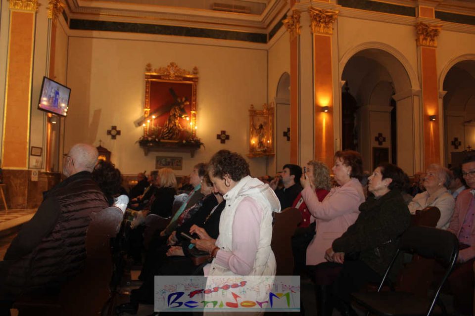 El acto, organizado por la Cofradía Nuestro Padre Jesús Nazareno con la presidencia de María Dolores Cano, comenzó como es tradicional con el descubrimiento del cartel anunciador, obra de la artista Carmen Alvado, nacida en Benidorm, que comenzó siendo autodidacta y después perfeccionó su técnica en varias academias.
