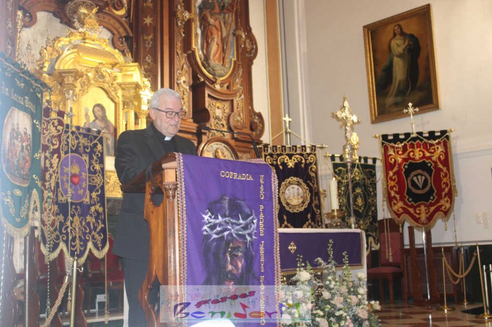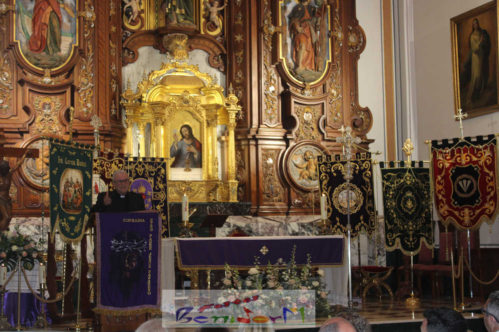 Juan Antonio González ha hablado “del amor de Dios a la humanidad, porque nos cuida y nos ama” y ha resumido que “todos los libros de teología que se han escrito se compendian en esa frase: Dios nos ama”. El párroco de San Jaime ha animado a “no olvidar que esta tradición nos debe mover a ser mejores personas y cristianos” y a que recordemos que las escenas de las procesiones “nos deben ayudar a hacer nuestros los sentimientos de Cristo”. Asimismo, ha vuelto a reconocer el trabajo de quienes están en las cofradías “porque sé lo mucho que cuesta prepararlo todo, aunque en Benidorm exista la ilusión de hacer y tener una Semana Santa activa”. Tras destacar el carácter solidario de Benidorm ha abogado por “tener una iglesia cercana a los problemas de la gente”.
