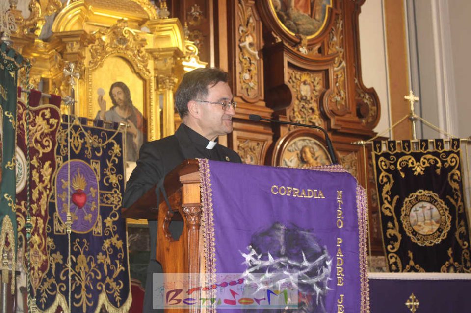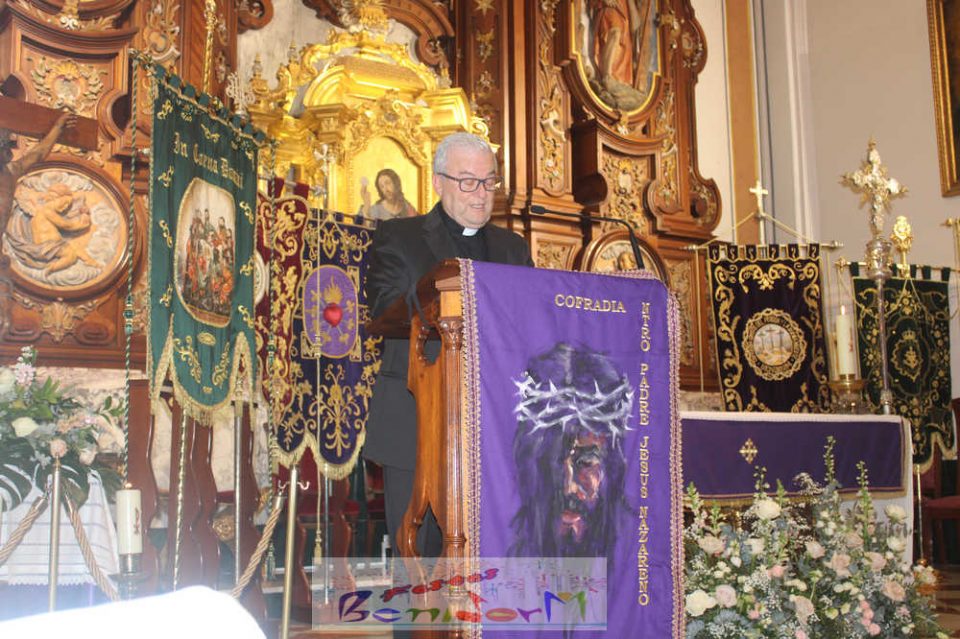 Benidorm dio inicio noche a los actos previos a la Semana Santa con el tradicional pregón, que ha ofrecido el cura párroco la iglesia de Sant Jaume, D. Juan Antonio González. Un acto que se ha celebrado en su parroquia de San Jaime y Santa Ana que se encontraba completamente llena para la ocasión.