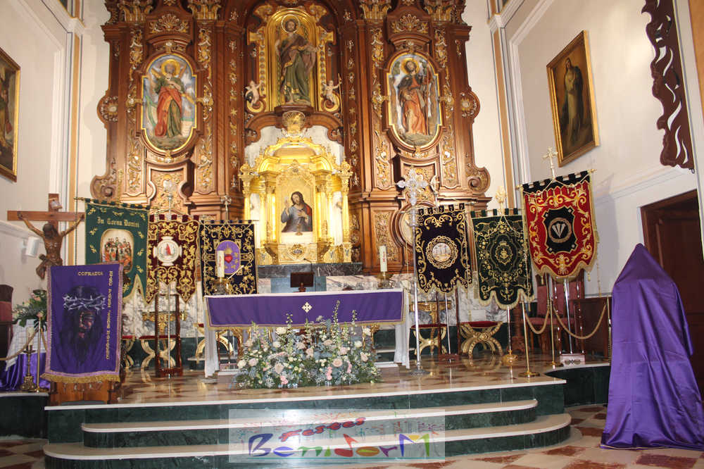 Al acto han asistido el alcalde de la ciudad, Toni Pérez; la concejala de Fiestas, Mariló Cebreros, miembros de la corporación local, autoridades eclesiásticas, miembros de las seis cofradías y hermandades de Benidorm y la presidenta de las Festes Majors Patronals, Susana Martínez, además de numerosos fieles.