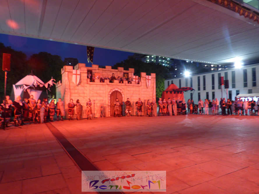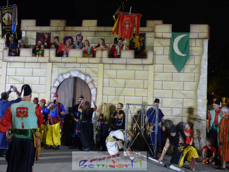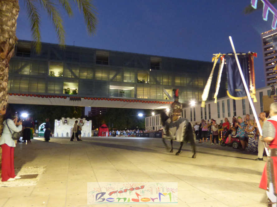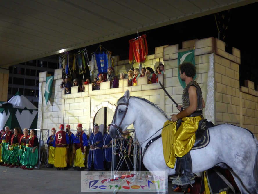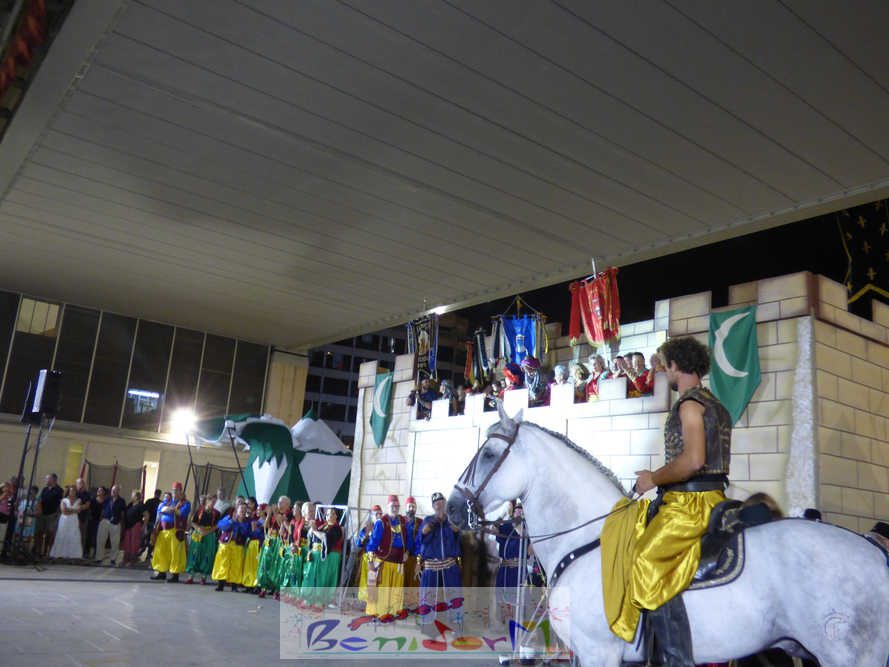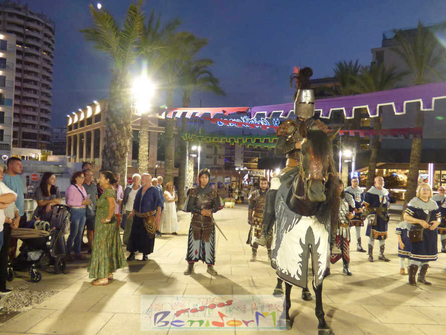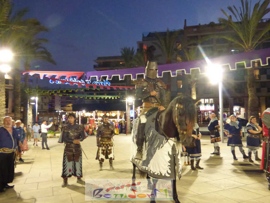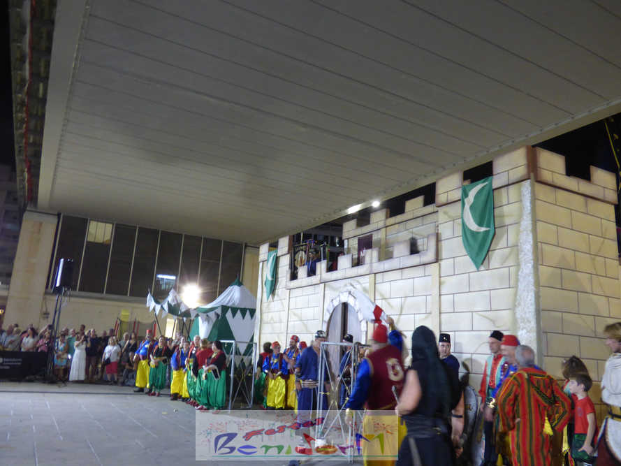 Benidorm inició anoche la celebración de las fiestas de Moros y Cristianos, que se prolongarán hasta la tarde noche del domingo. El ‘Parlamento de la Invasión Mora’ marcó el comienzo oficial de estos festejos a las 20 horas a los pies del castillo que se ha instalado en la plaza de SS MM Los Reyes de España.