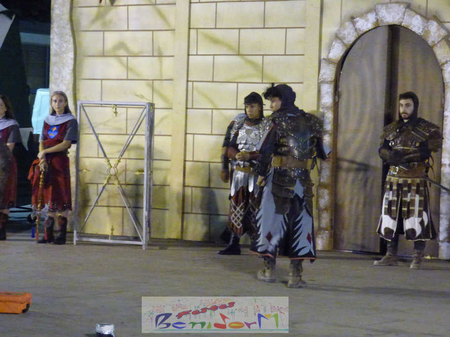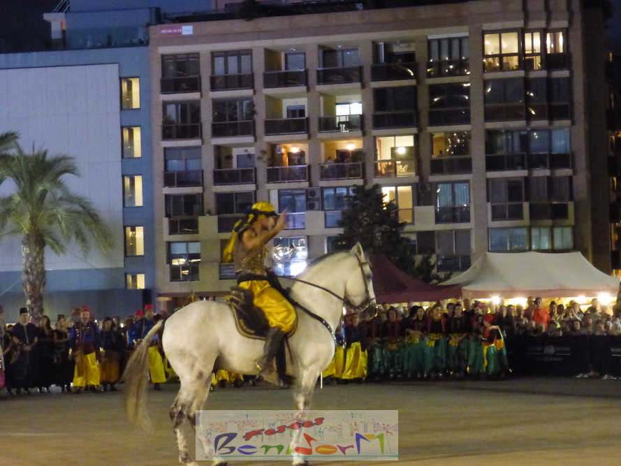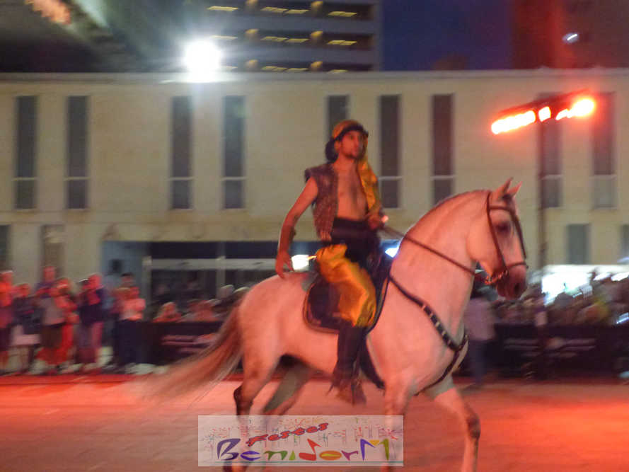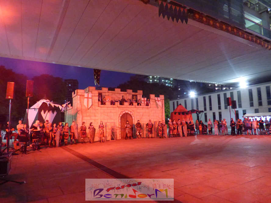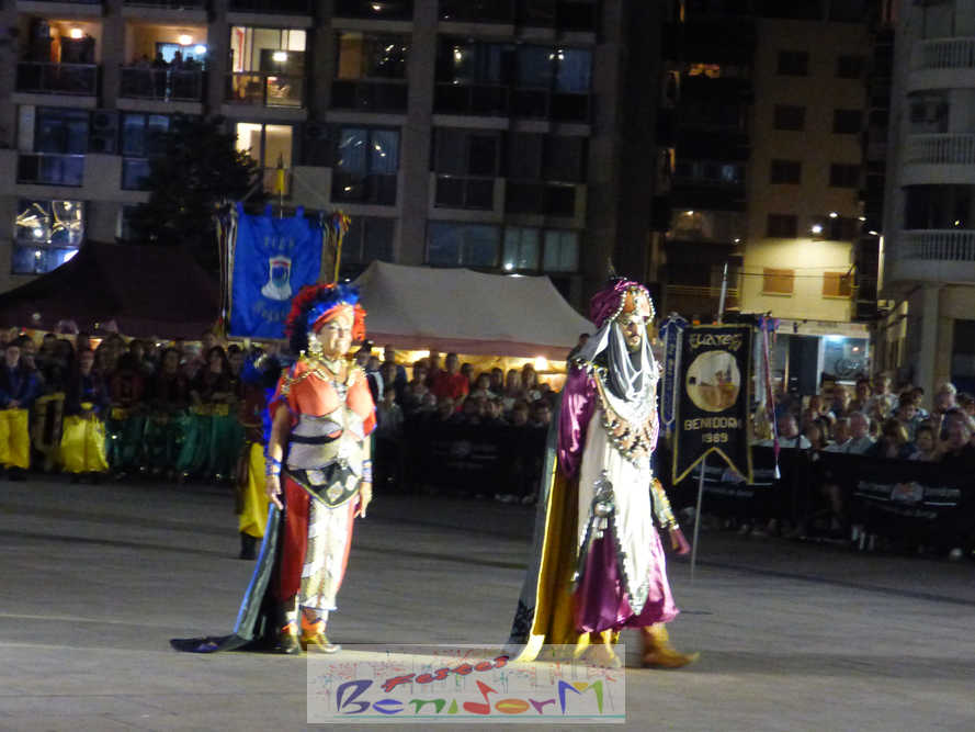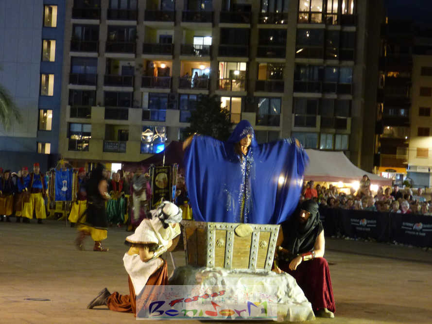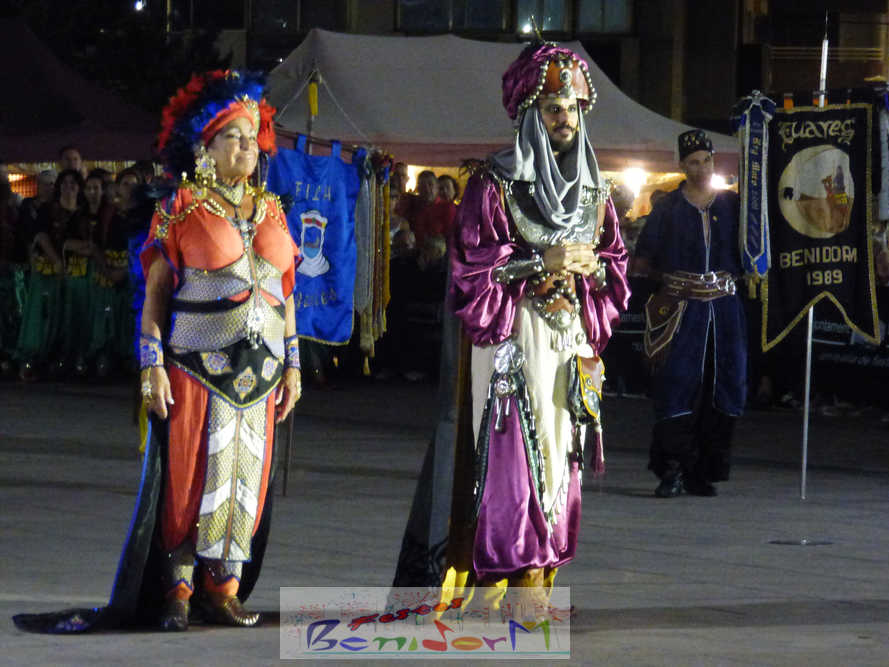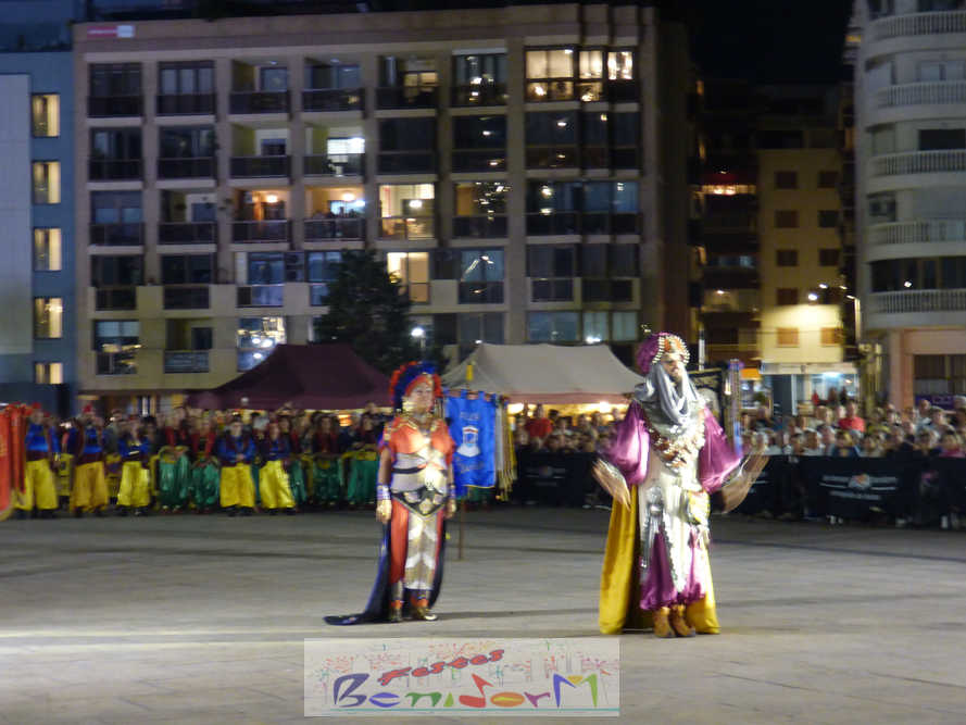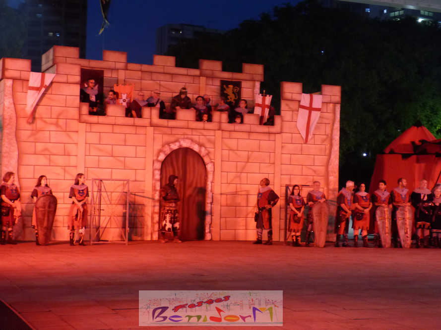 Benidorm inició anoche la celebración de las fiestas de Moros y Cristianos, que se prolongarán hasta la tarde noche del domingo. El ‘Parlamento de la Invasión Mora’ marcó el comienzo oficial de estos festejos a las 20 horas a los pies del castillo que se ha instalado en la plaza de SS MM Los Reyes de España.