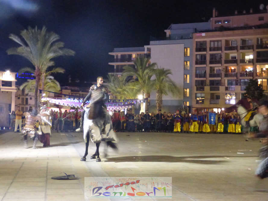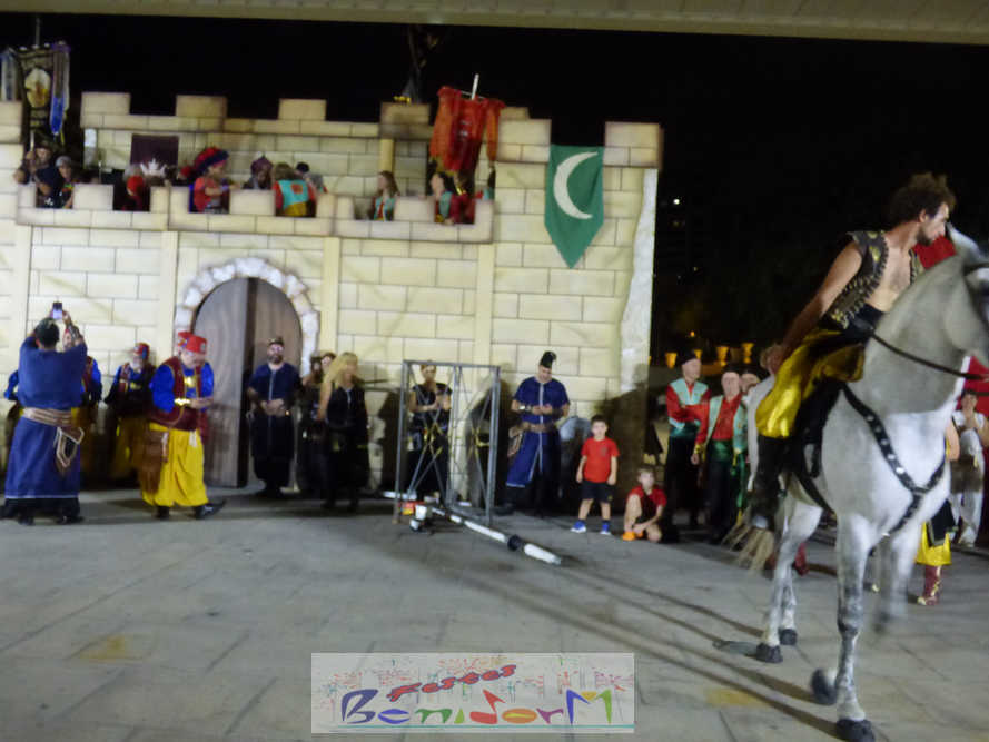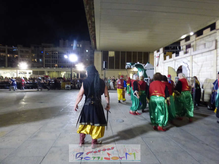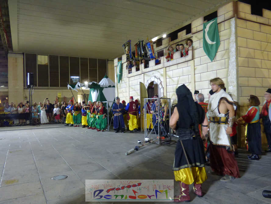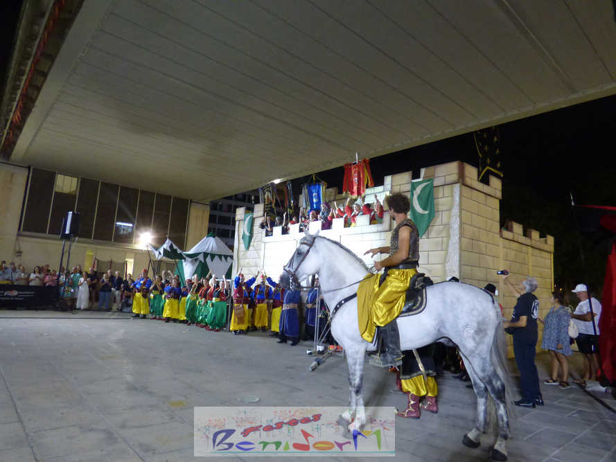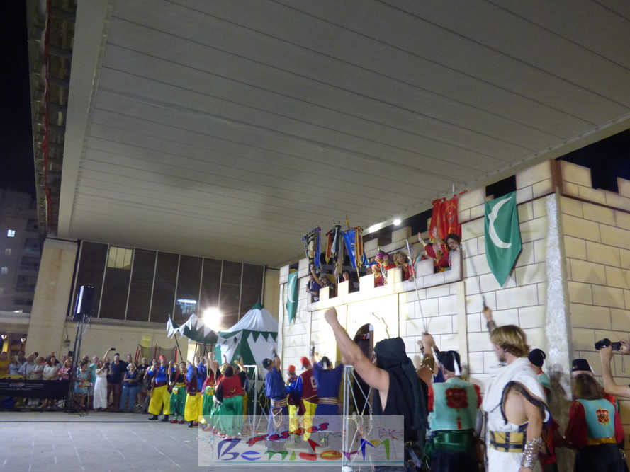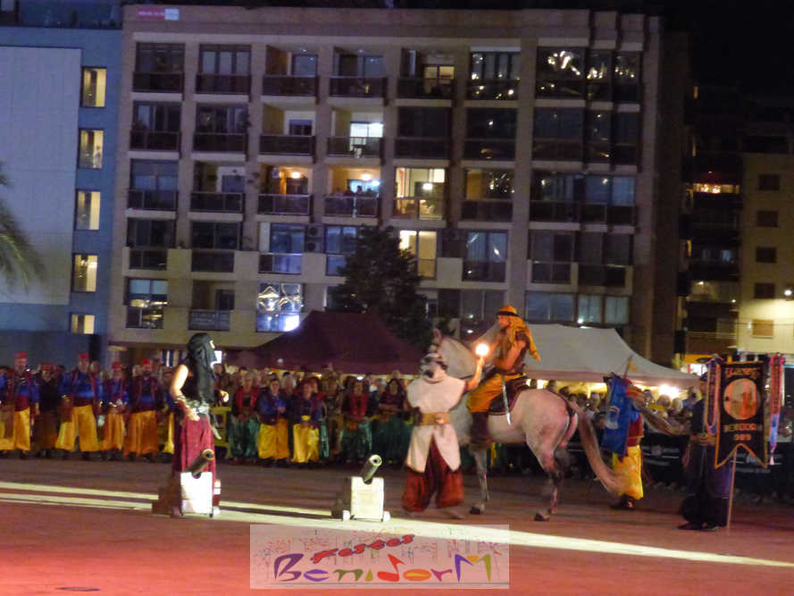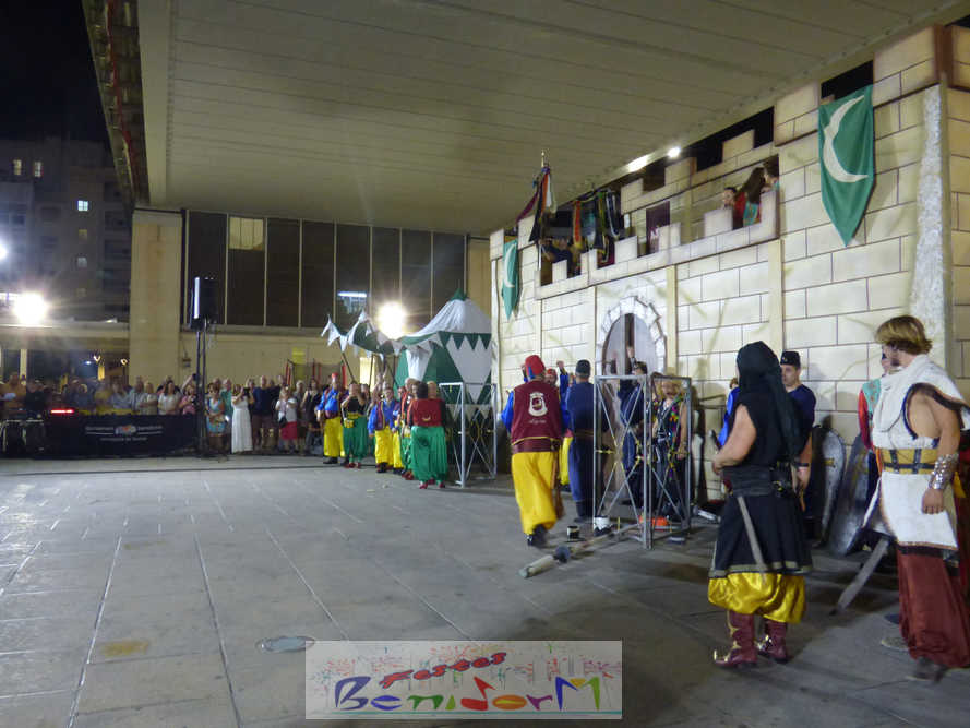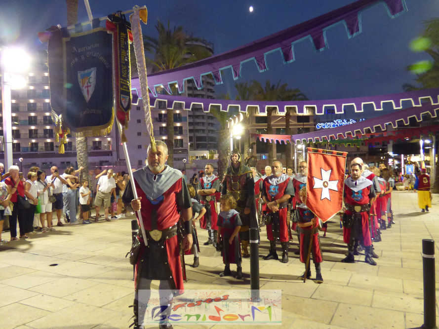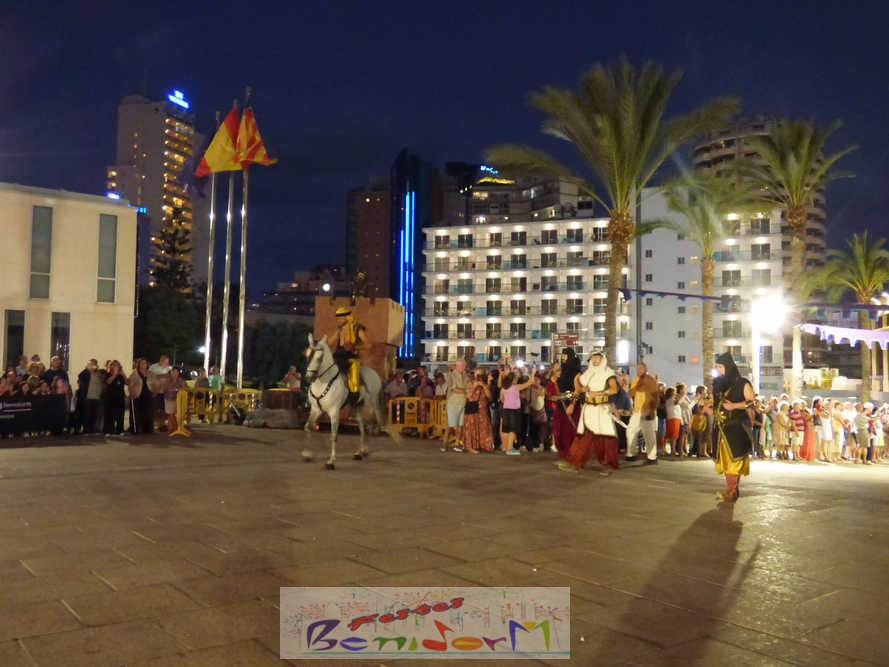 El acto, organizado por la Asociación de Moros y Cristianos, comenzó con la concentración de las tropas cristianas en su campamento, al que llegaron las huestes moras tras desembarcar. Ambos bandos parlamentaron entre ofrendas y juegos medievales. Al no llegar a un acuerdo amistoso, el acto finalizó con la ‘Invasión Mora de la Villa de Benidorm’, tras la cual tuvo lugar una cena festera con la participación de todas las ‘filaes’: Benidarhims, Nazaries, Tuareg y Musulmanes Tagarinos por el bando moro; Cruzados y Cavallers de la Baronia, por el cristiano.