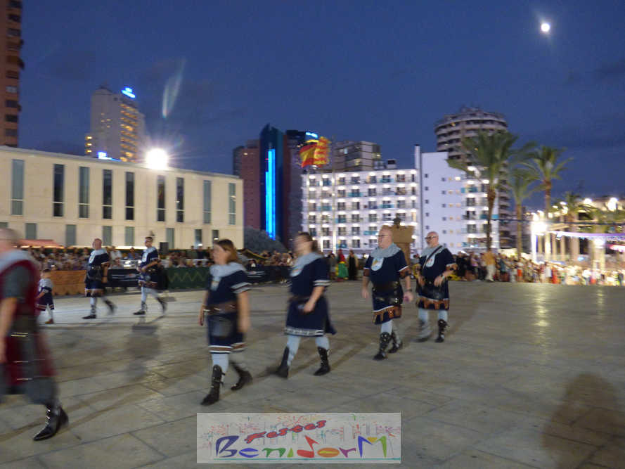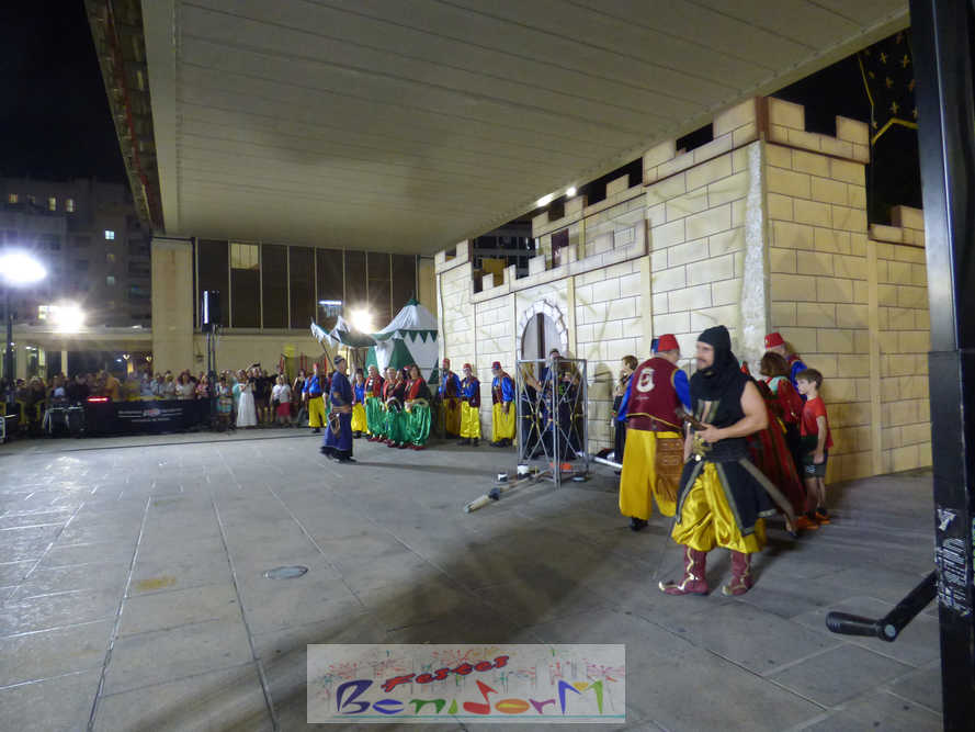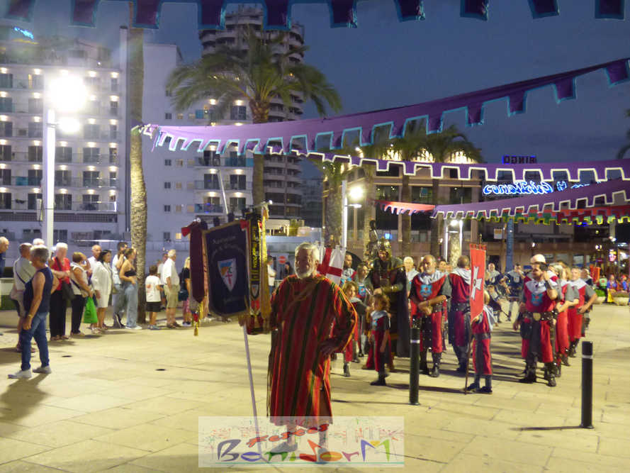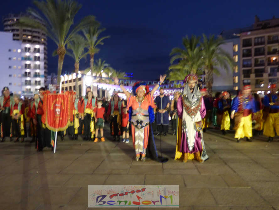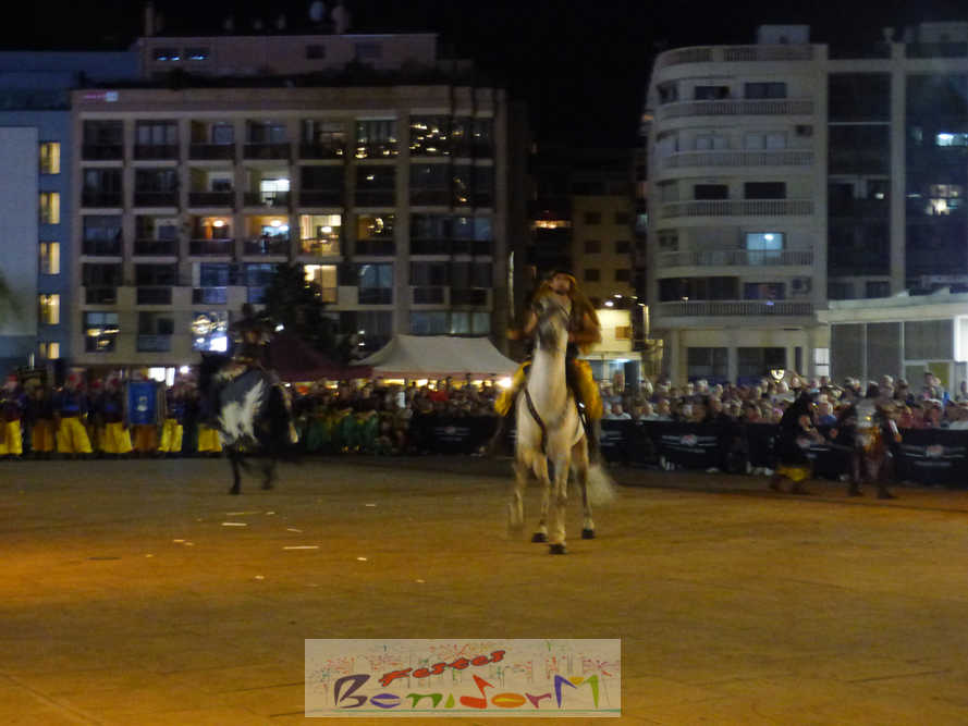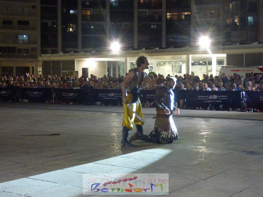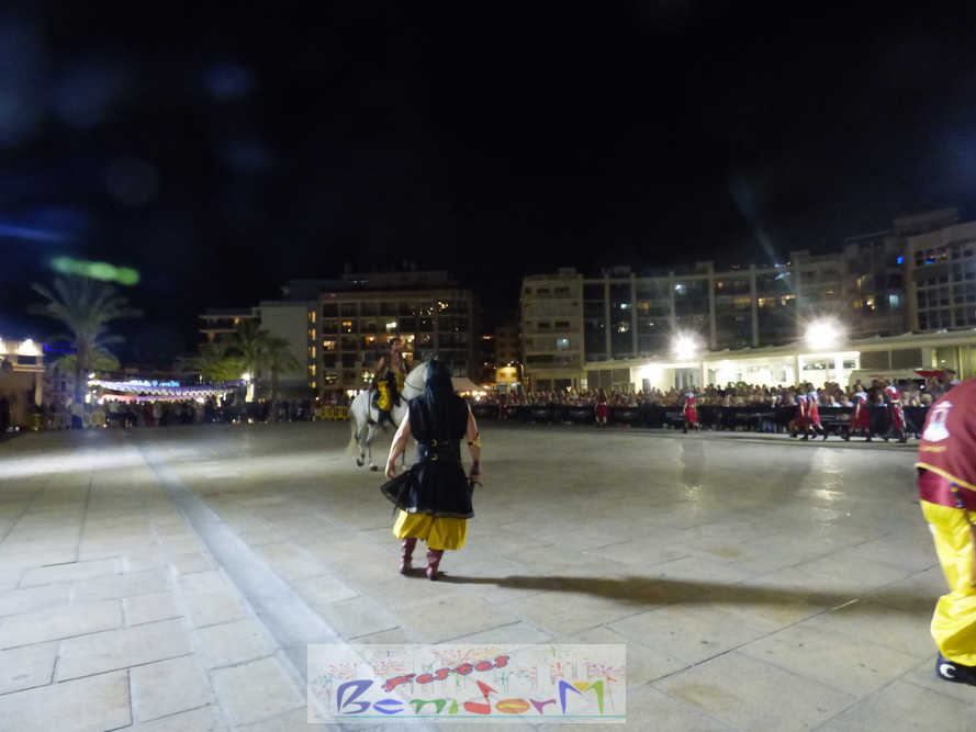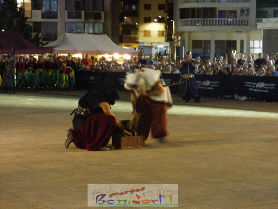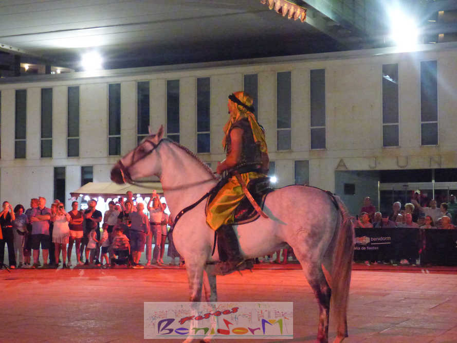 El acto, organizado por la Asociación de Moros y Cristianos, comenzó con la concentración de las tropas cristianas en su campamento, al que llegaron las huestes moras tras desembarcar. Ambos bandos parlamentaron entre ofrendas y juegos medievales. Al no llegar a un acuerdo amistoso, el acto finalizó con la ‘Invasión Mora de la Villa de Benidorm’, tras la cual tuvo lugar una cena festera con la participación de todas las ‘filaes’: Benidarhims, Nazaries, Tuareg y Musulmanes Tagarinos por el bando moro; Cruzados y Cavallers de la Baronia, por el cristiano.