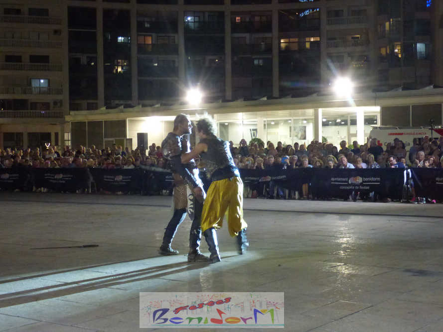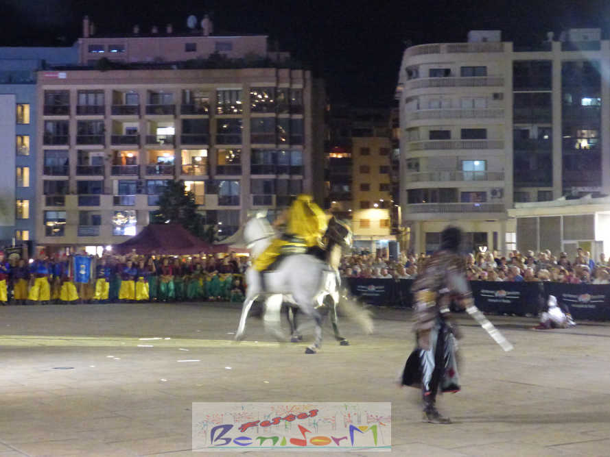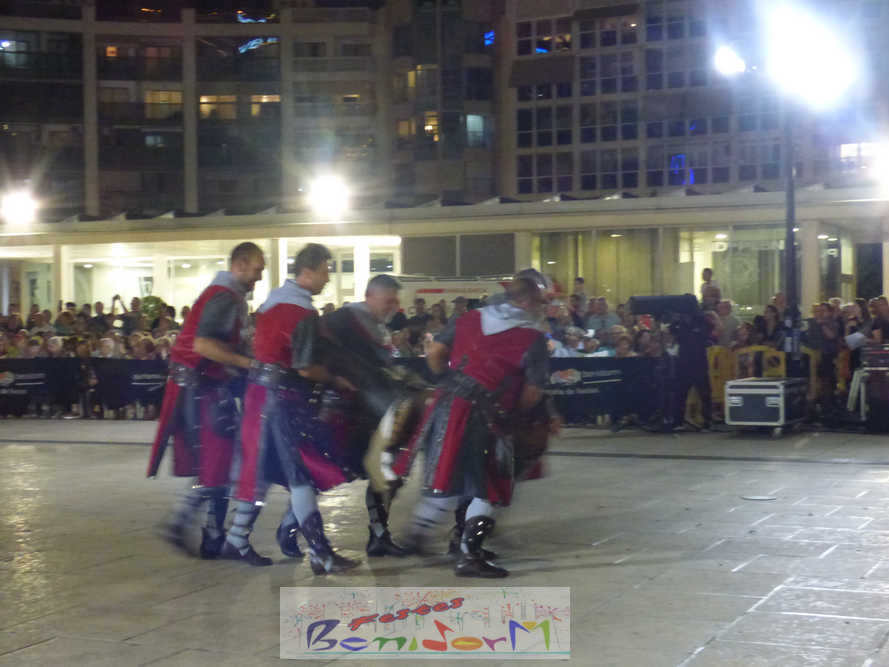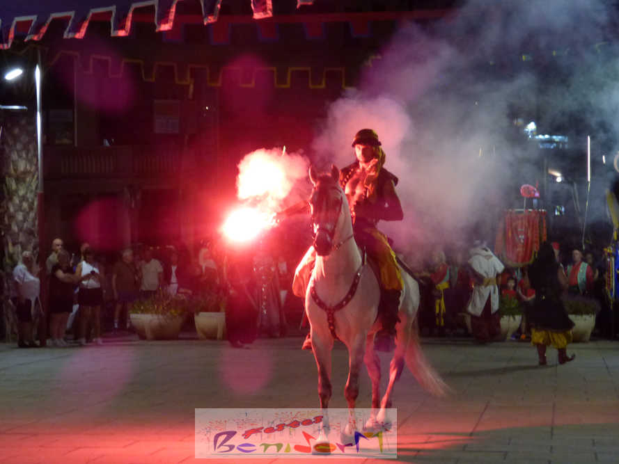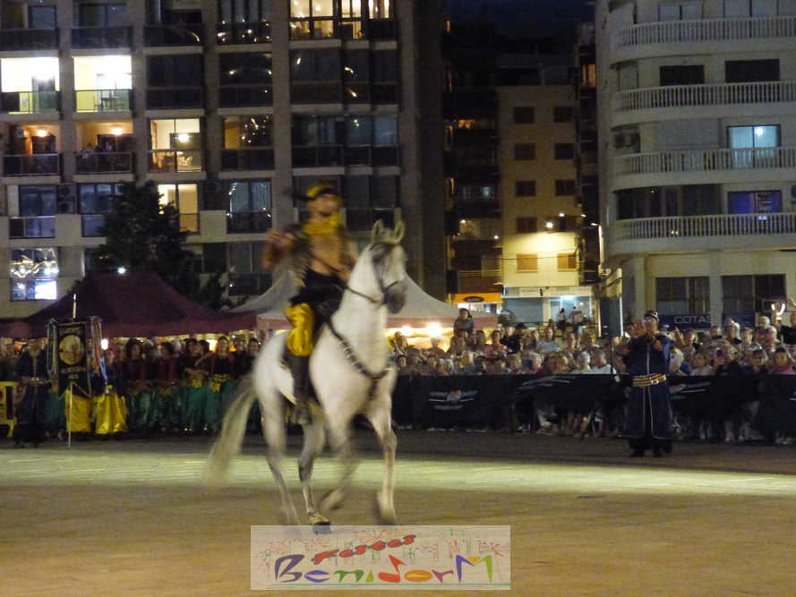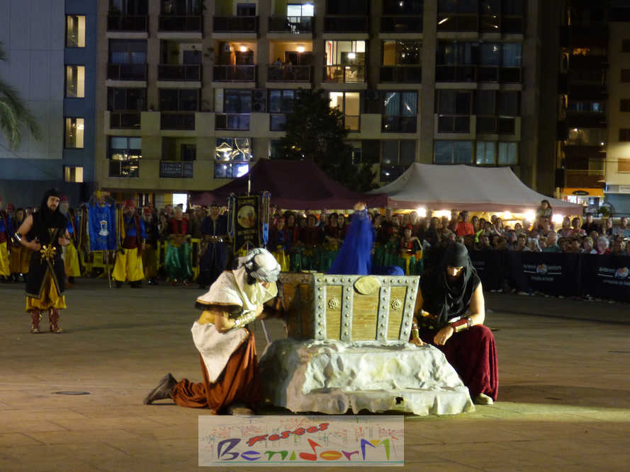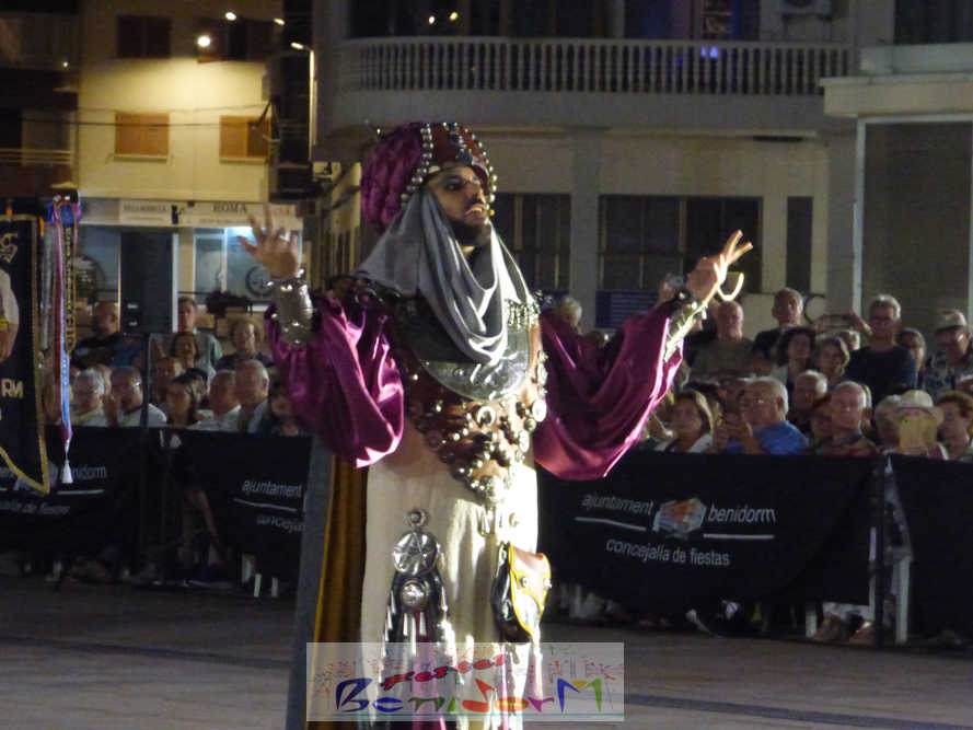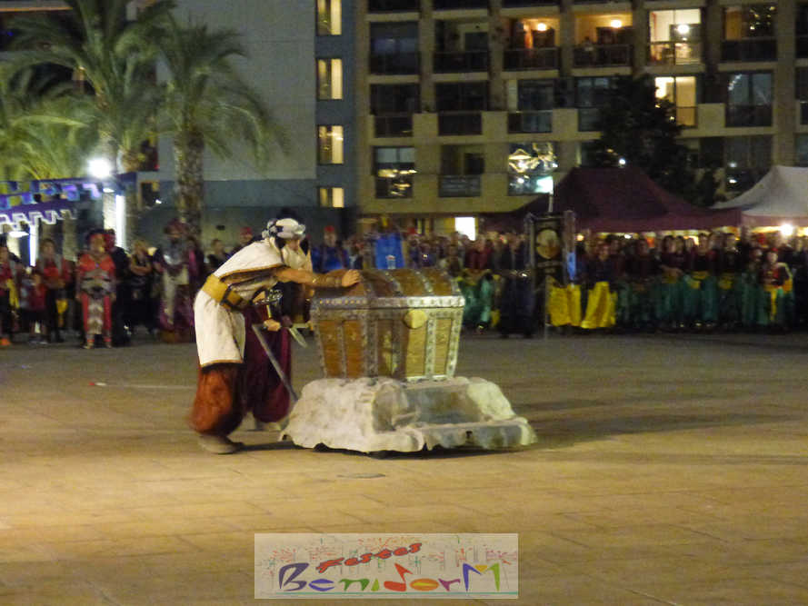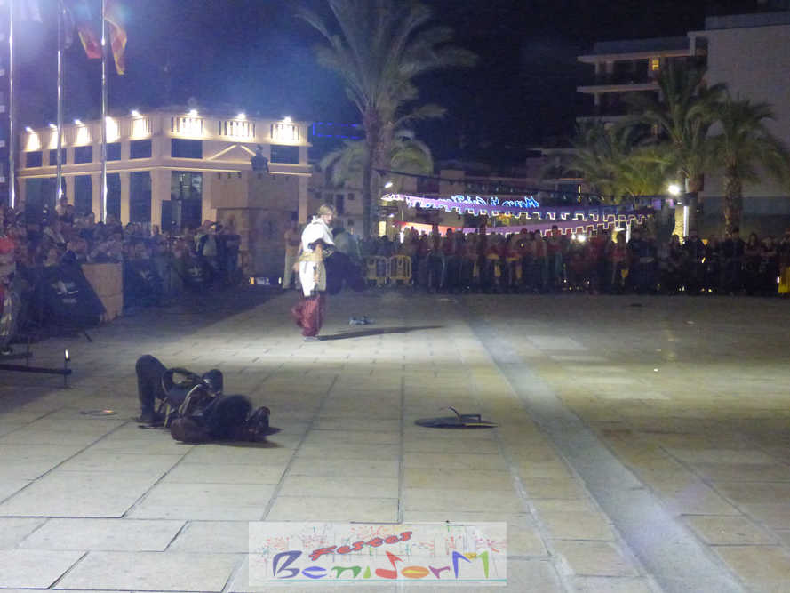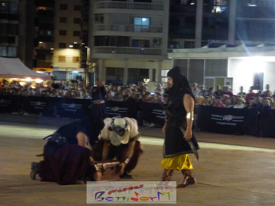 El acto, organizado por la Asociación de Moros y Cristianos, comenzó con la concentración de las tropas cristianas en su campamento, al que llegaron las huestes moras tras desembarcar. Ambos bandos parlamentaron entre ofrendas y juegos medievales. Al no llegar a un acuerdo amistoso, el acto finalizó con la ‘Invasión Mora de la Villa de Benidorm’, tras la cual tuvo lugar una cena festera con la participación de todas las ‘filaes’: Benidarhims, Nazaries, Tuareg y Musulmanes Tagarinos por el bando moro; Cruzados y Cavallers de la Baronia, por el cristiano.