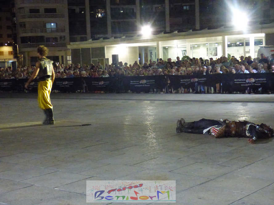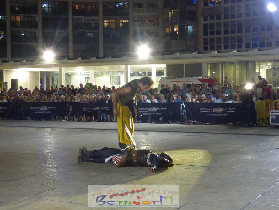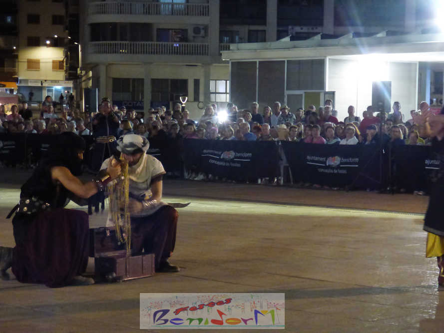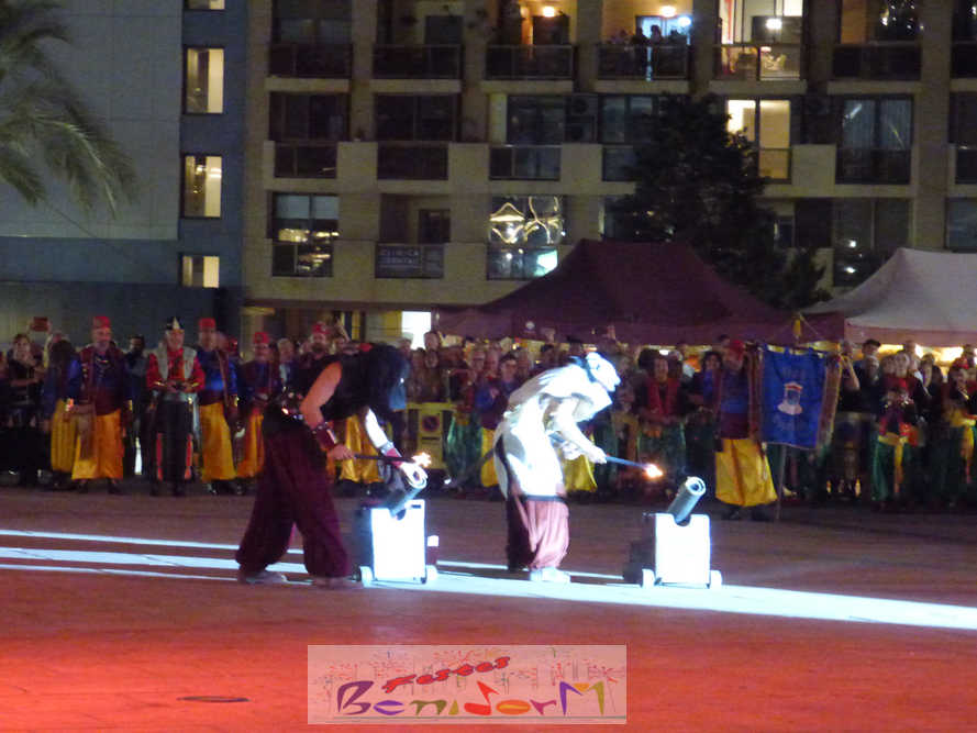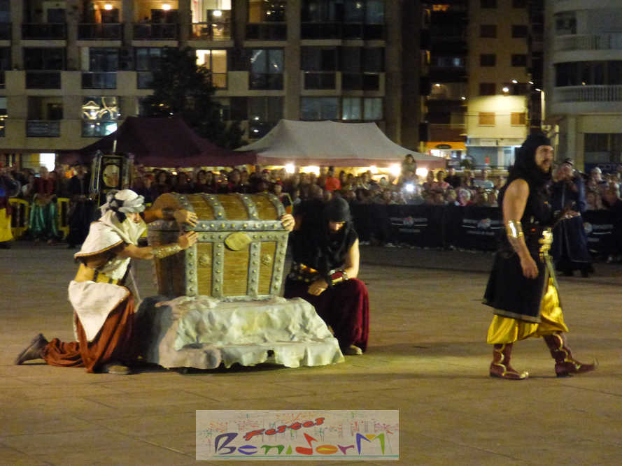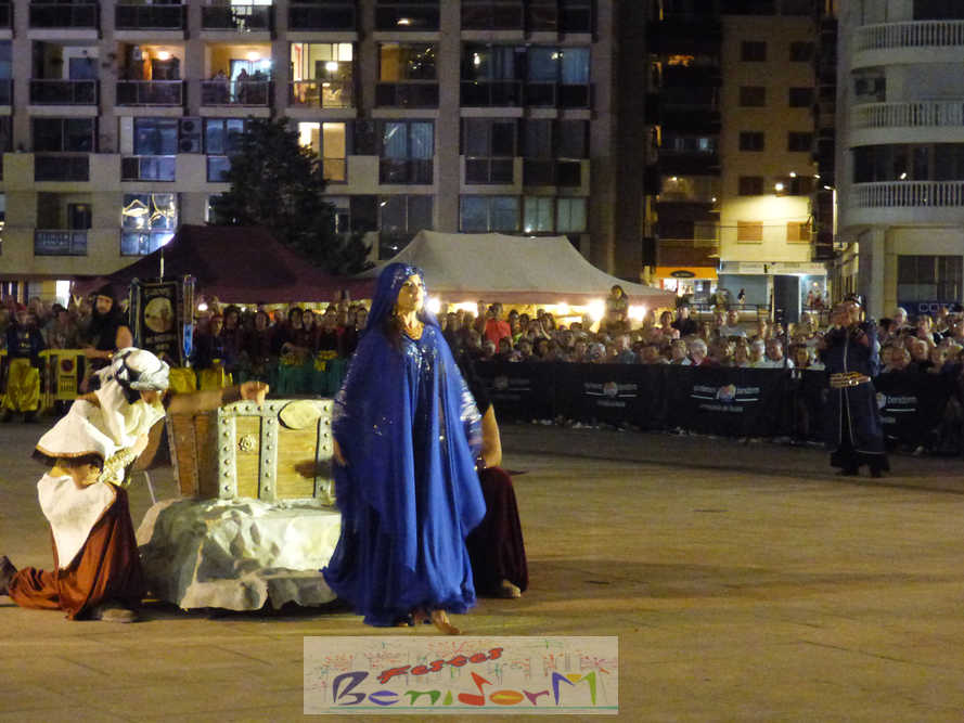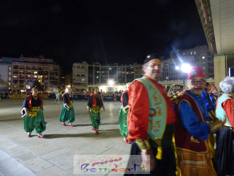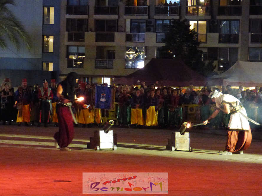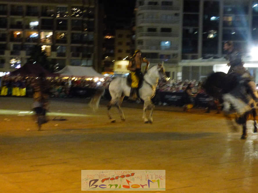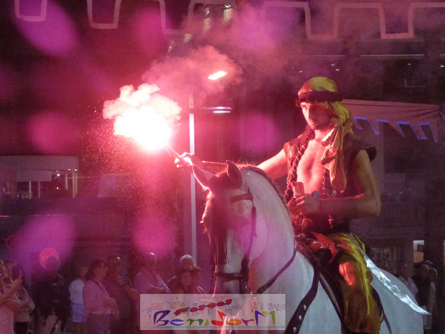 El acto, organizado por la Asociación de Moros y Cristianos, comenzó con la concentración de las tropas cristianas en su campamento, al que llegaron las huestes moras tras desembarcar. Ambos bandos parlamentaron entre ofrendas y juegos medievales. Al no llegar a un acuerdo amistoso, el acto finalizó con la ‘Invasión Mora de la Villa de Benidorm’, tras la cual tuvo lugar una cena festera con la participación de todas las ‘filaes’: Benidarhims, Nazaries, Tuareg y Musulmanes Tagarinos por el bando moro; Cruzados y Cavallers de la Baronia, por el cristiano.