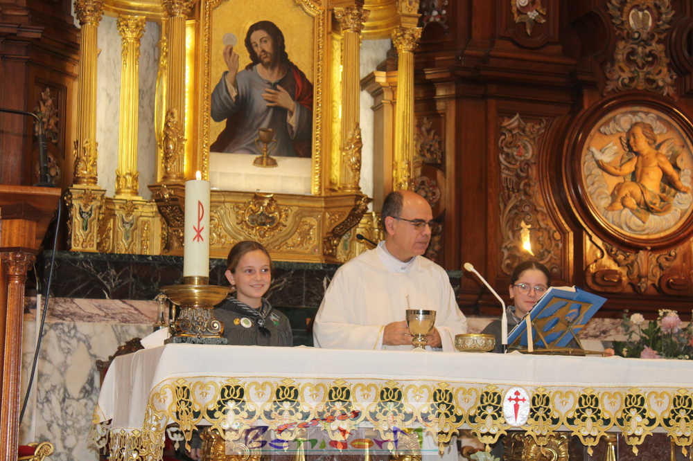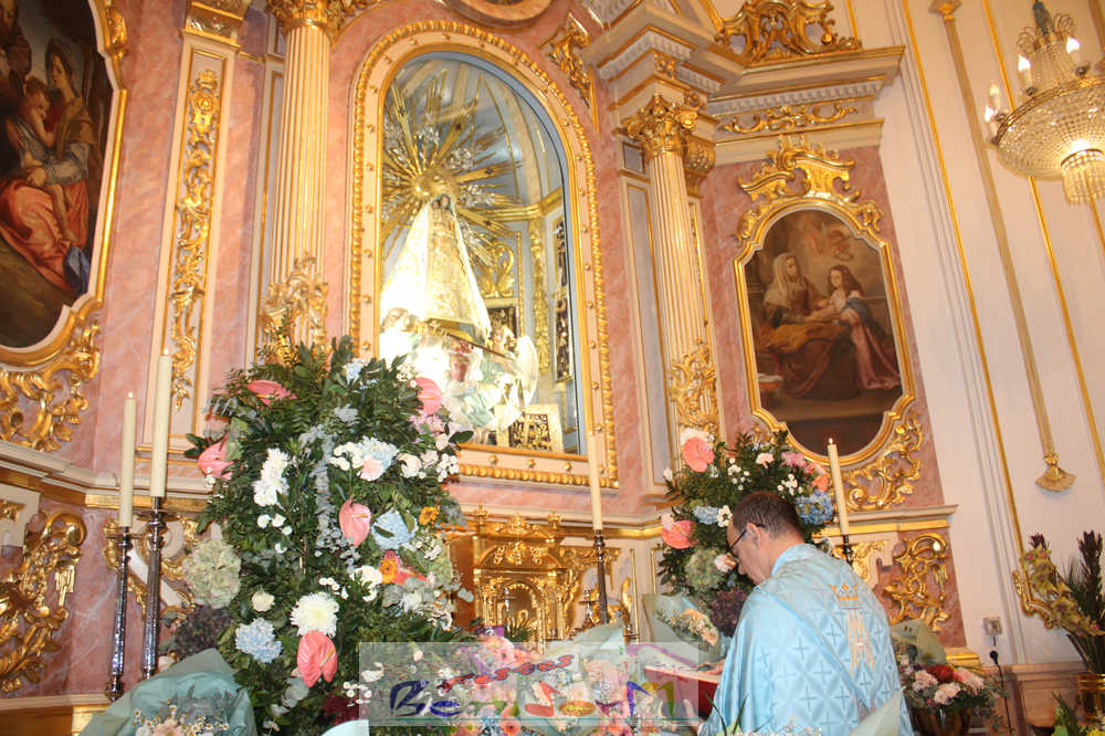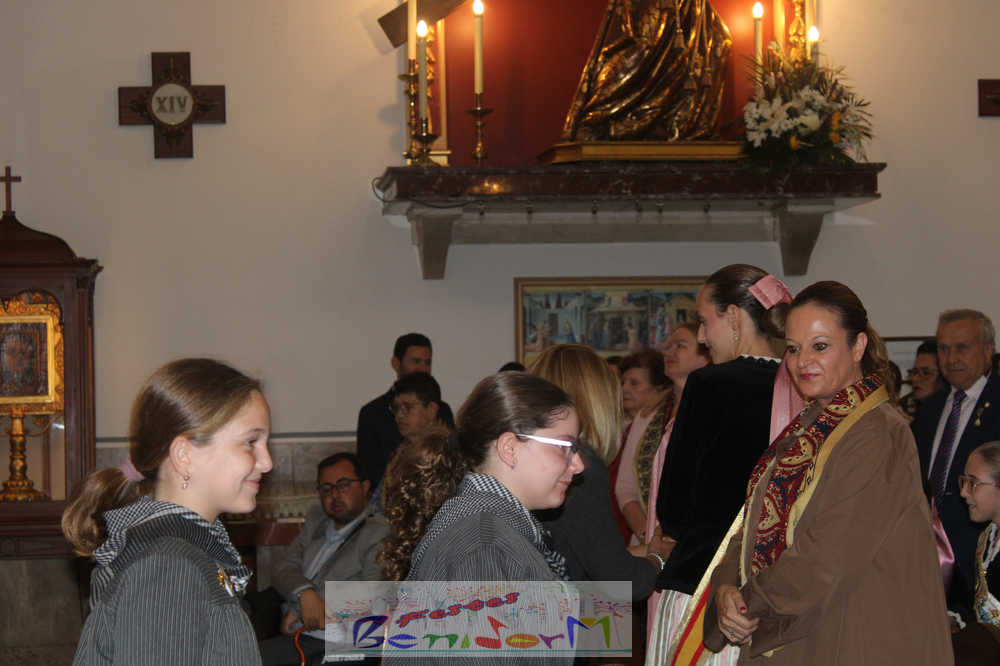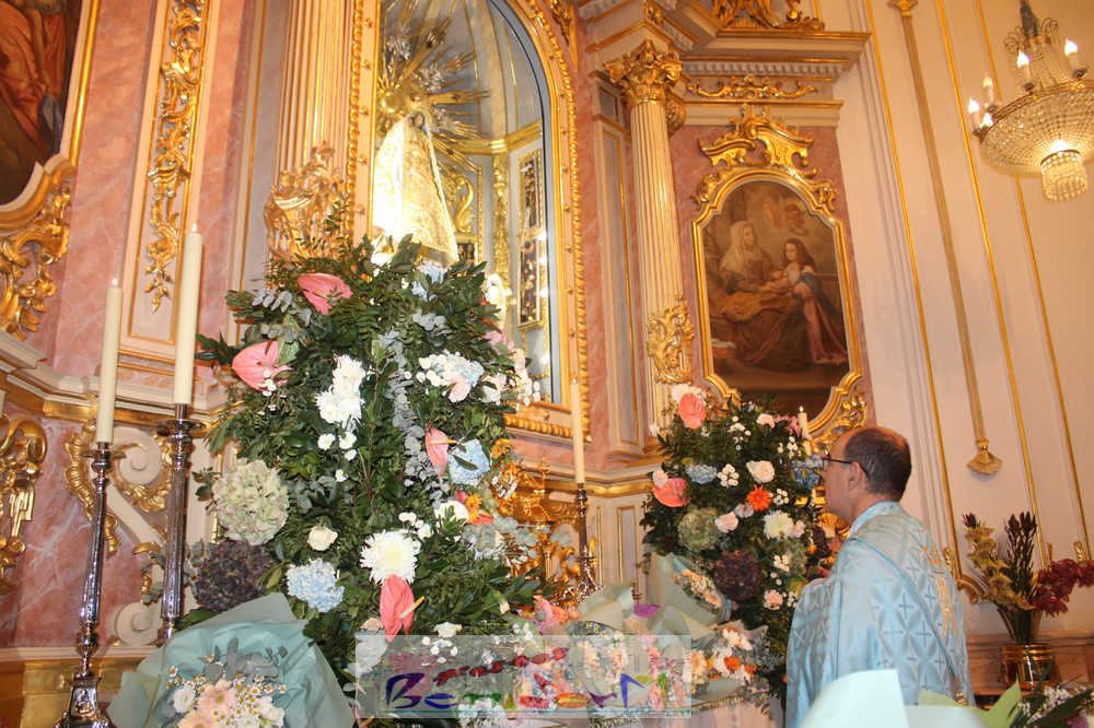 Por la mañana, tras la degustación de bollos a la paleta del viernes por la noche, los festeros se concentraron a las nueve de la mañana para colgar la alcachofa en mitad de la plaza de la Constitución. Media hora después, con la presencia de autoridades y de las reinas de las Festes Majors Patronals 2025, Paula Pascual Sánchez y Aitana Pérez Gutiérrez, y de sus corres de honor, los festeros emprendieron un pasacalles por el casco antiguo en dirección a la iglesia de Sant Jaume i Santa Anna, donde ofrendaron sus flores a la patrona y participaron en la misa sabatina que se celebra todas las semanas en su honor.