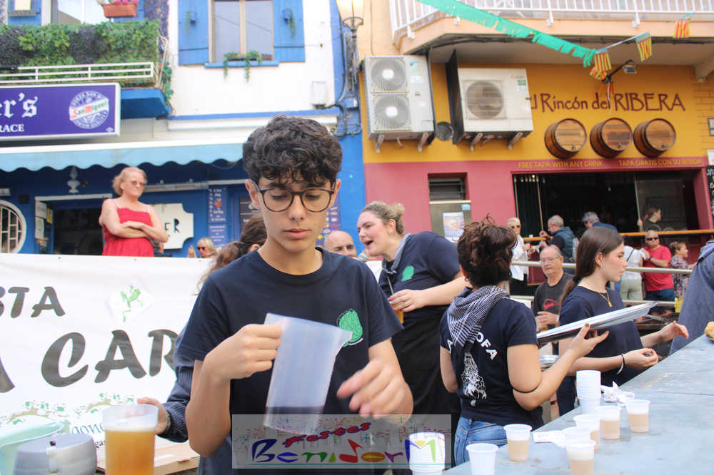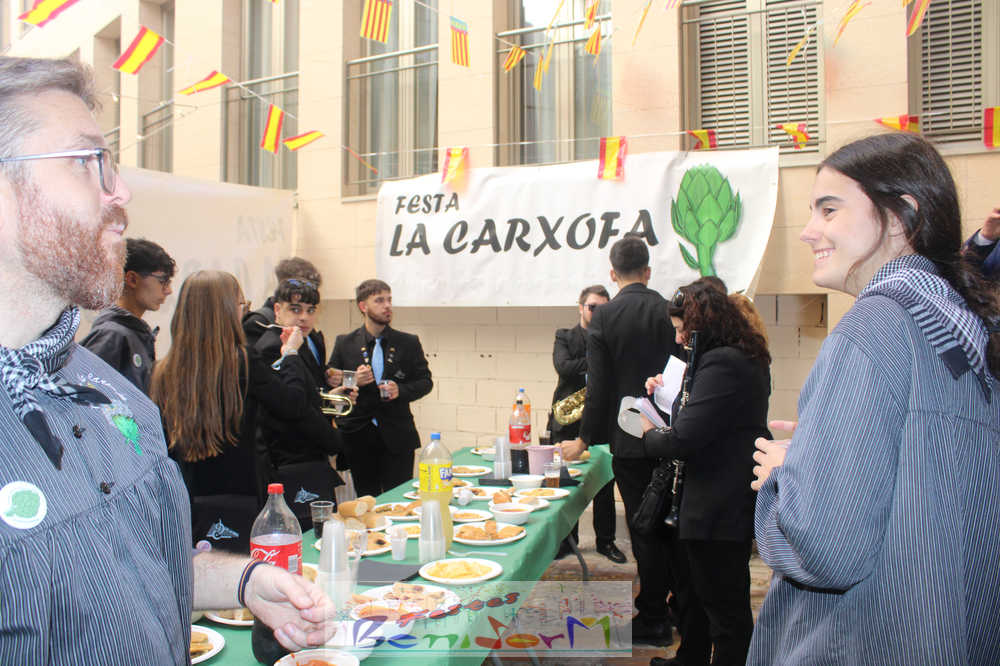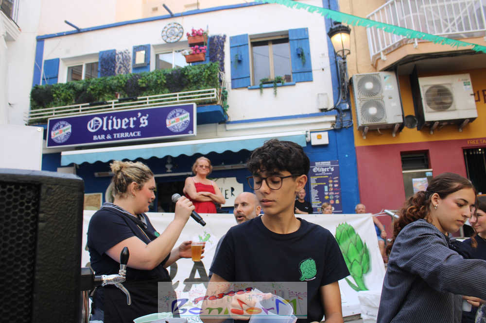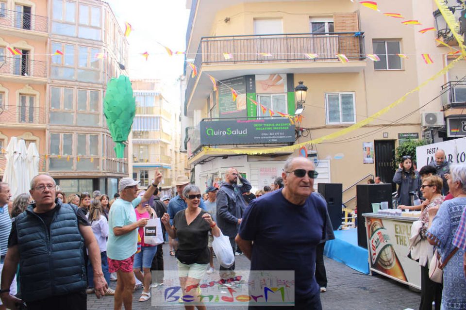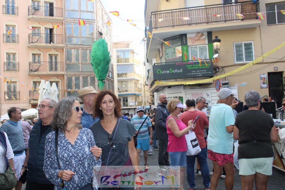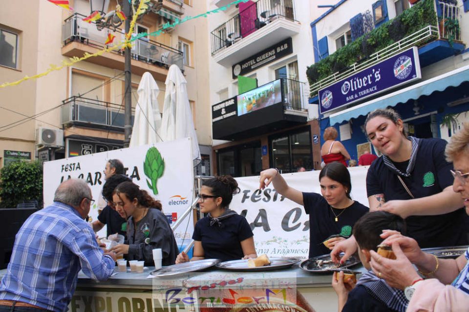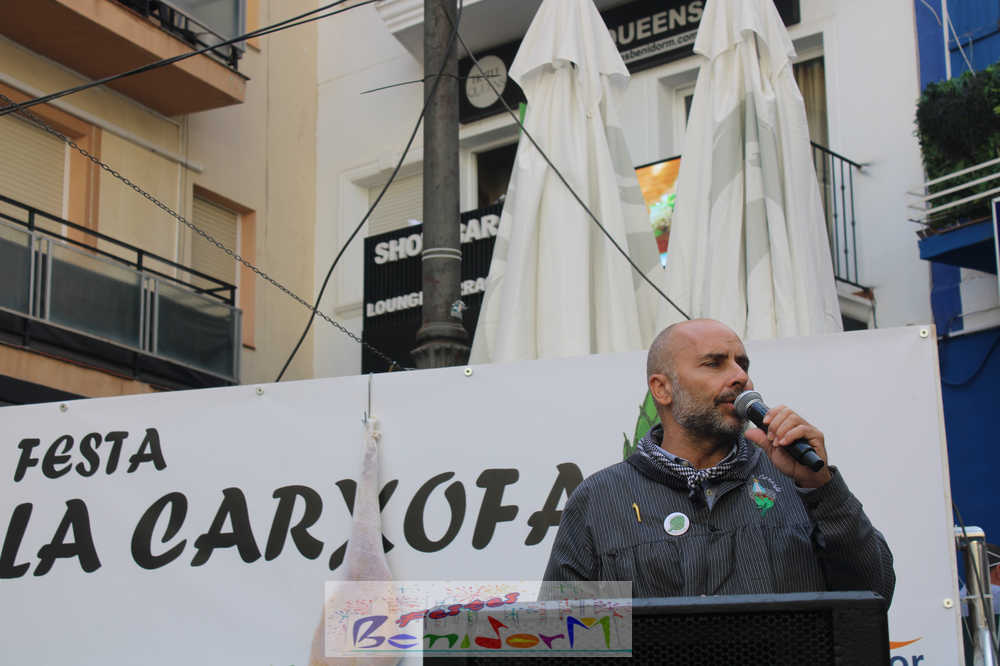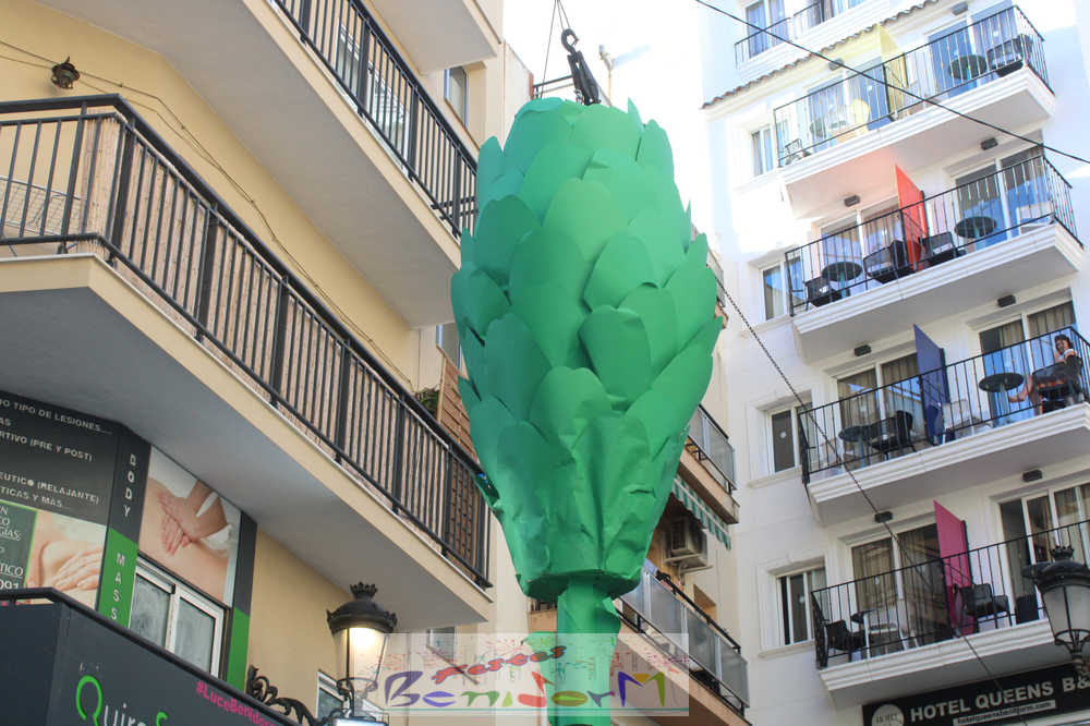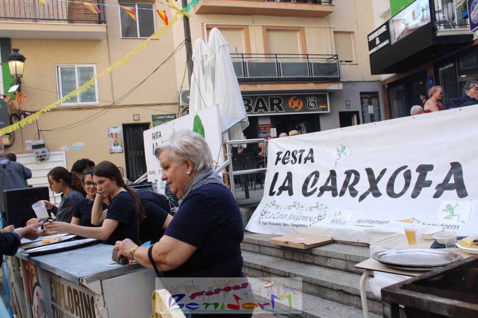 El casco antiguo de Benidorm celebró ayer la tradicional Festa de la Carxofa, una de las antiguas de Benidorm, que se celebra cada año el sábado posterior a las Festes Majors Patronals en la plaza de la Constitución, donde antiguamente se montaba el mercado de abastos de la localidad. La `penjà’ de una alcachofa de grandes dimensiones y su ‘cremà’ al filo de la medianoche marcaron el inicio y el fin de una jornada llena de actos, donde no faltaron la ofrenda de flores a la Virgen del Sufragio, degustaciones gastronómicas, concursos de dibujo o de bebedores de cerveza, y una verbena amenizada por música de Dj.