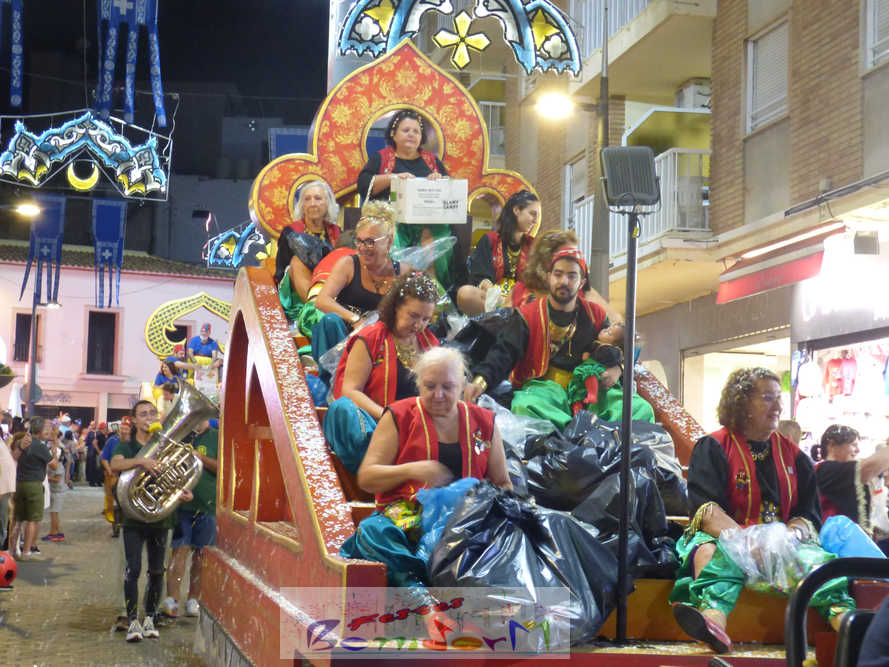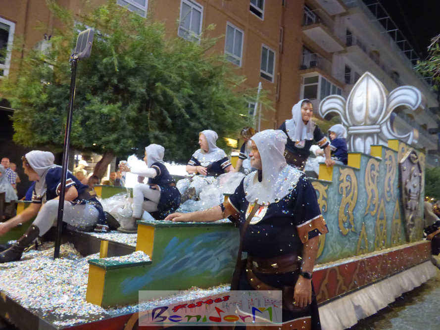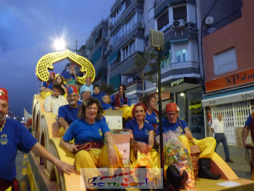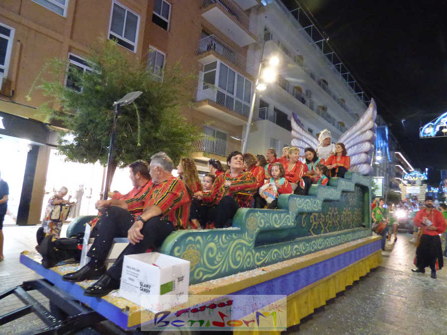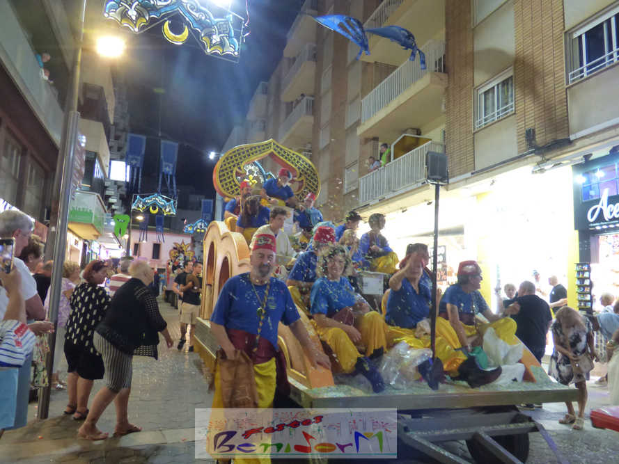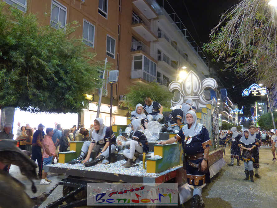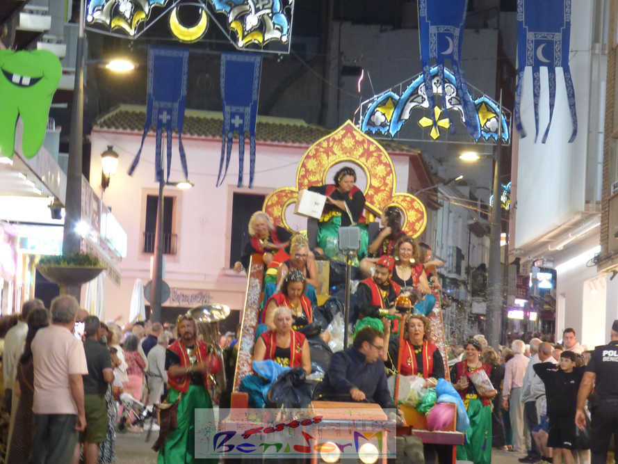 El desfile de carrozas de los Moros y Cristianos de Benidorm llenó ayer las calles de la ciudad de color y alegría, congregando a vecinos y visitantes que disfrutaron del espectáculo.