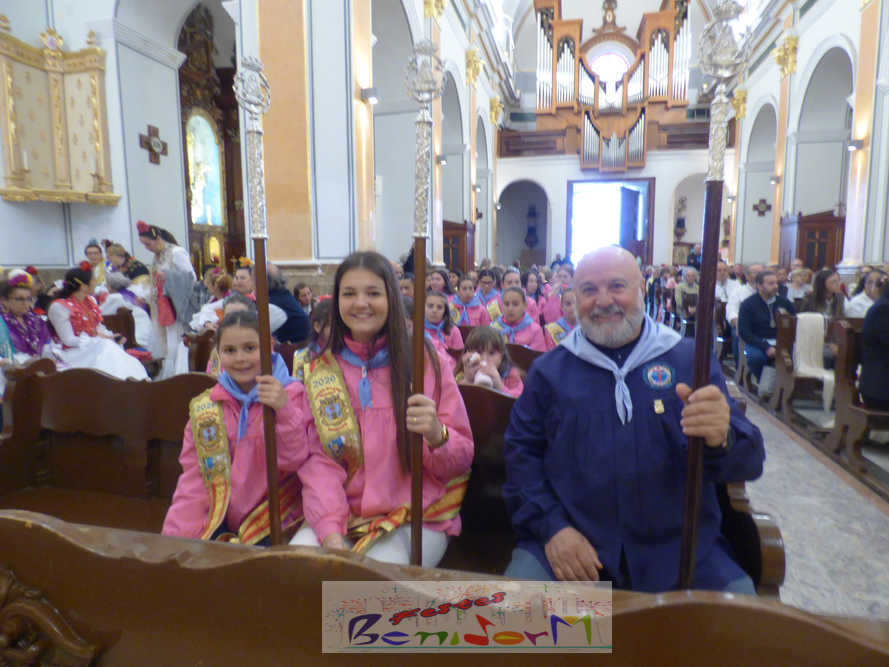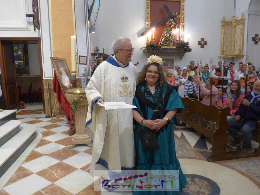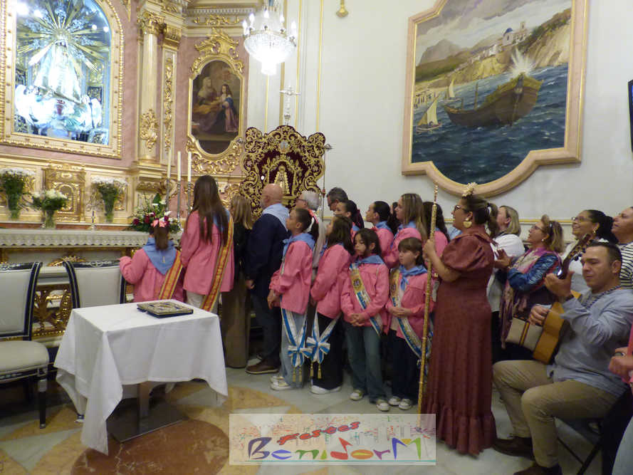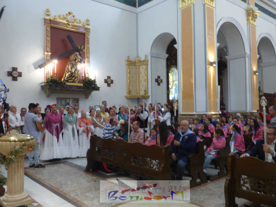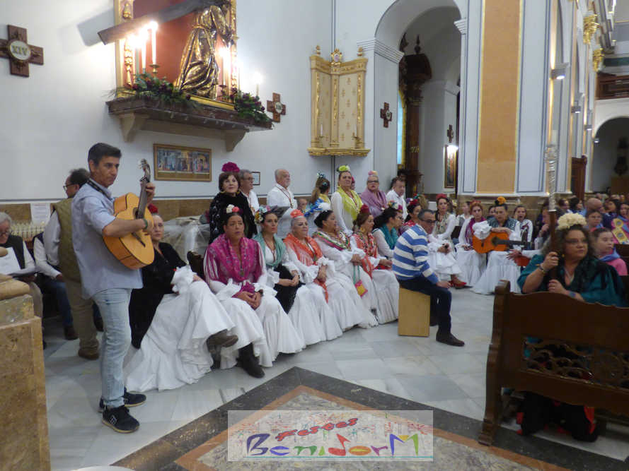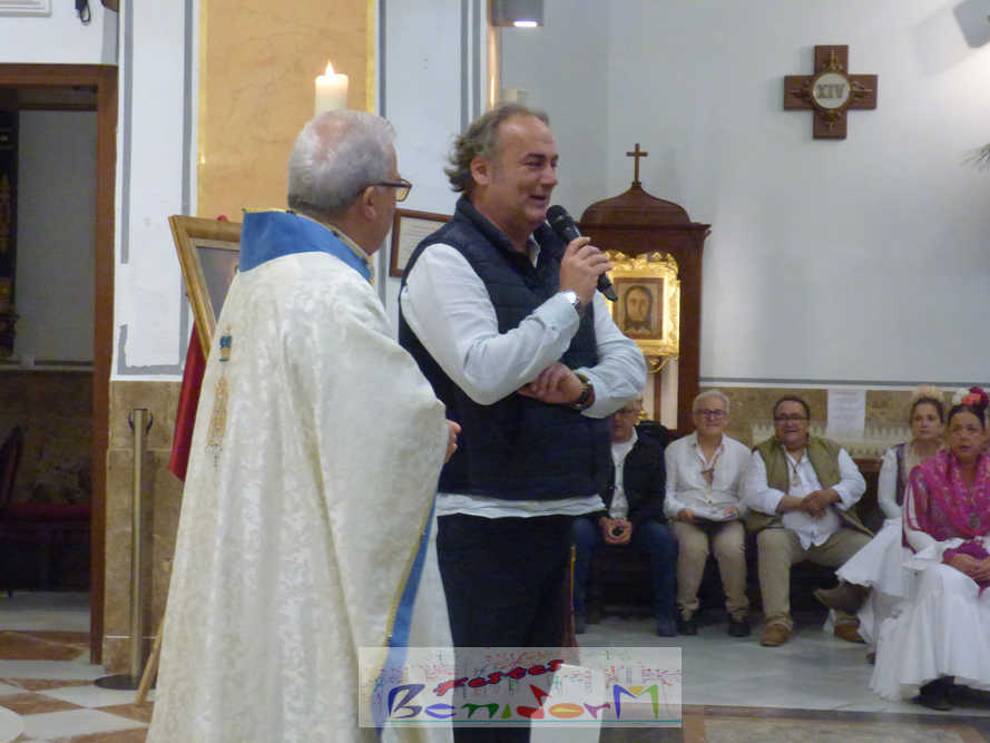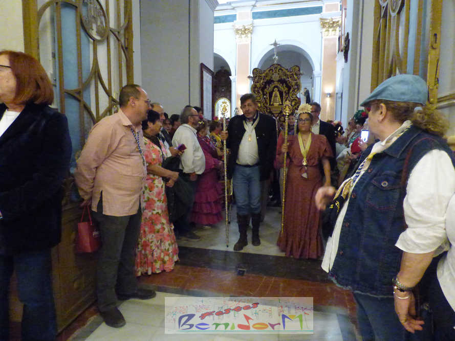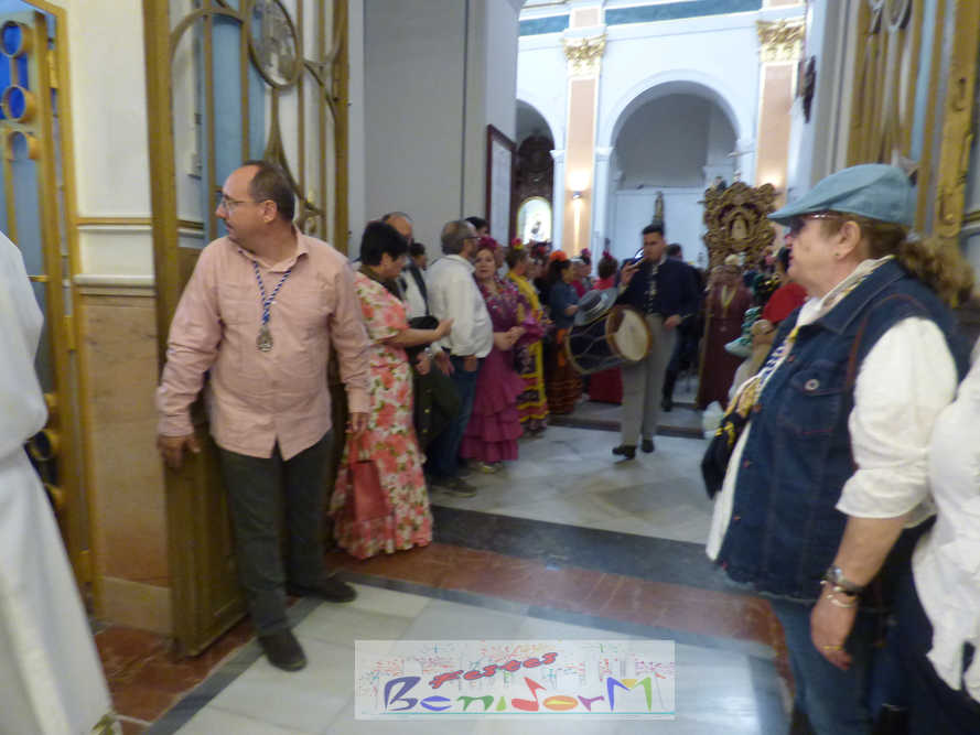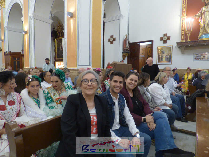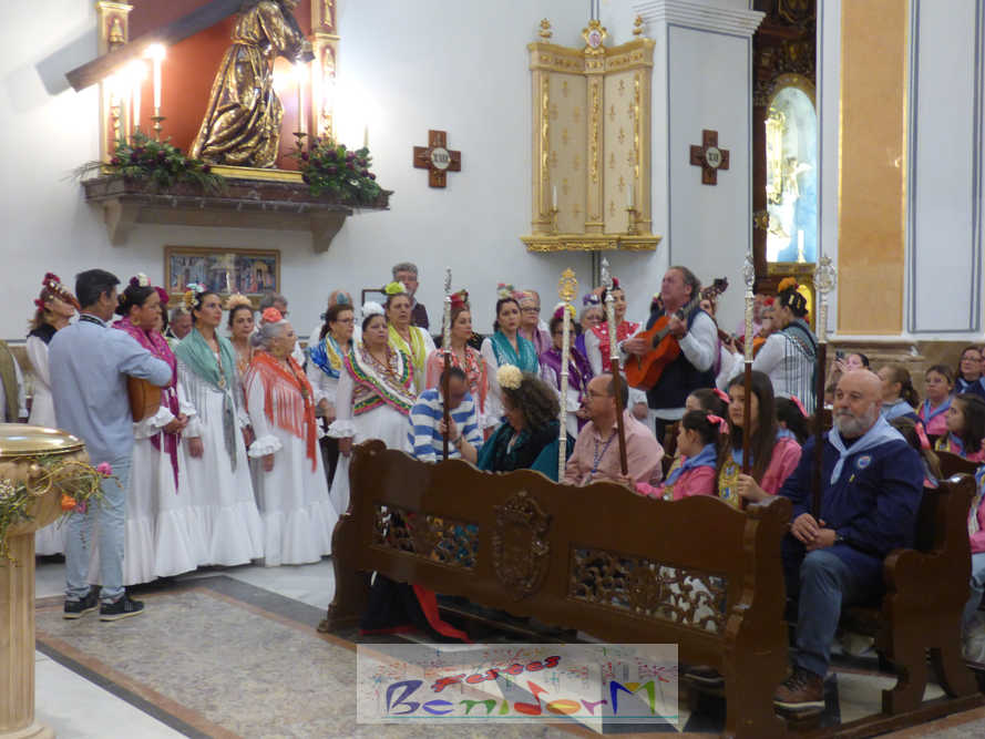 A las diez de la mañana la primera iglesia de Benidorm acogía la misa rociera cantada por el coro de la Real Hermandad de Emigrantes de Huelva, dirigido por David Carrasco, pregonero del Roció benidormense 2026.