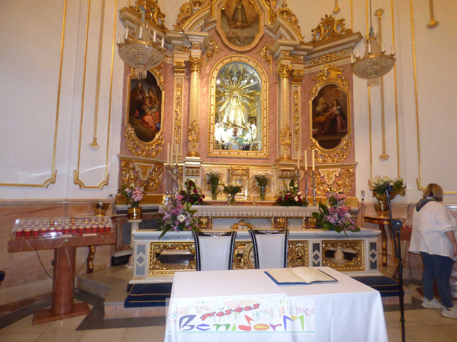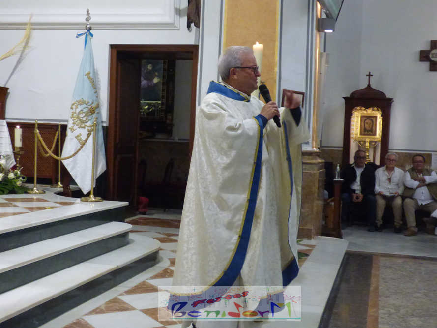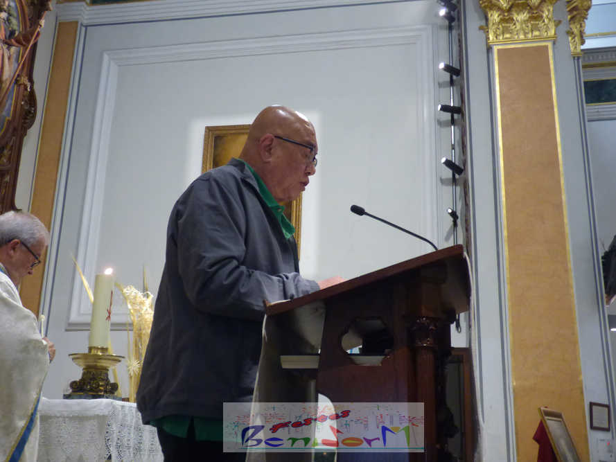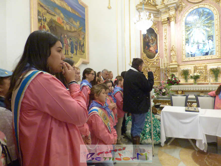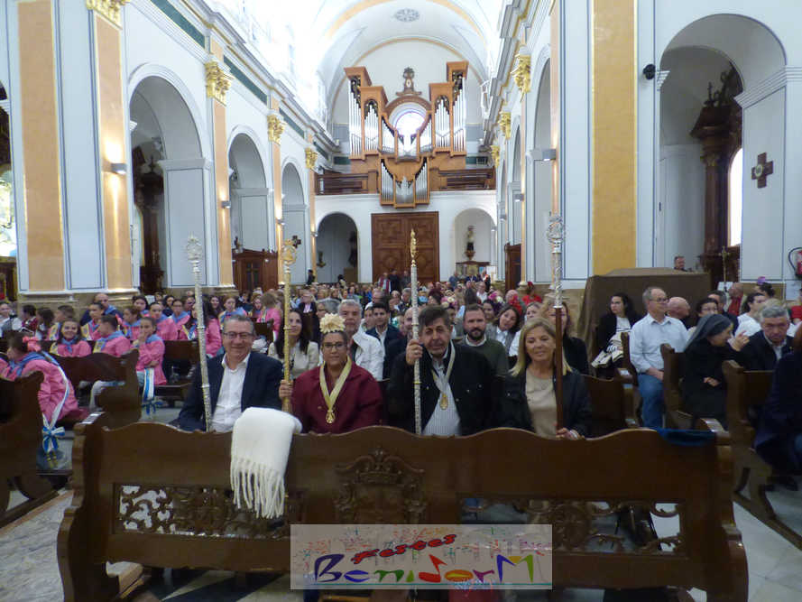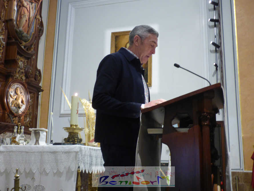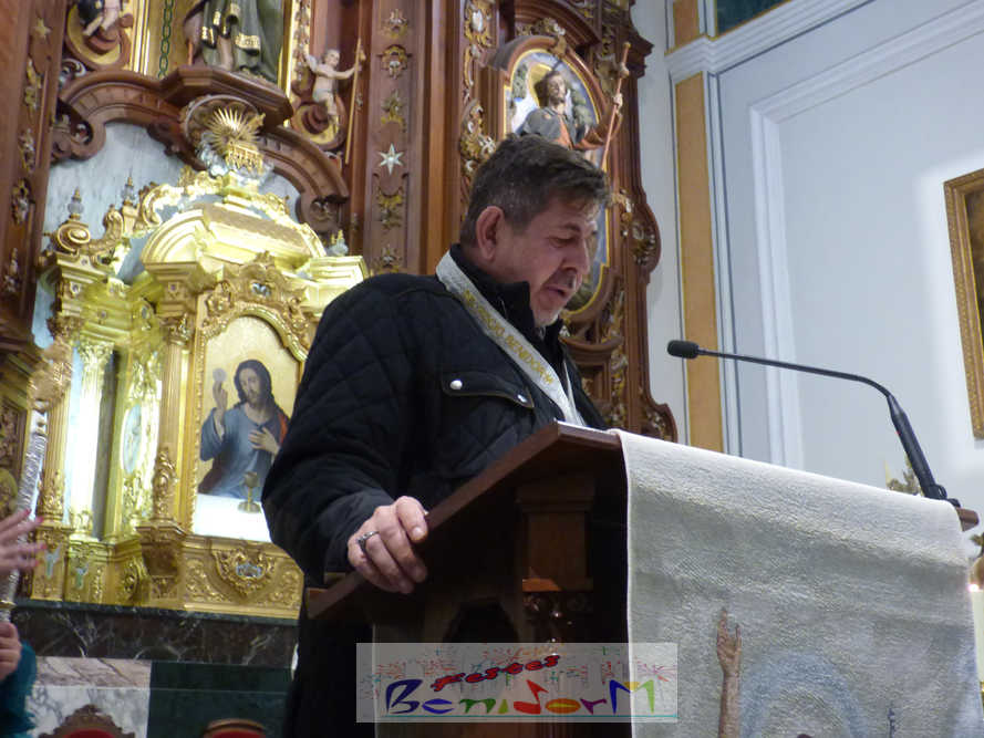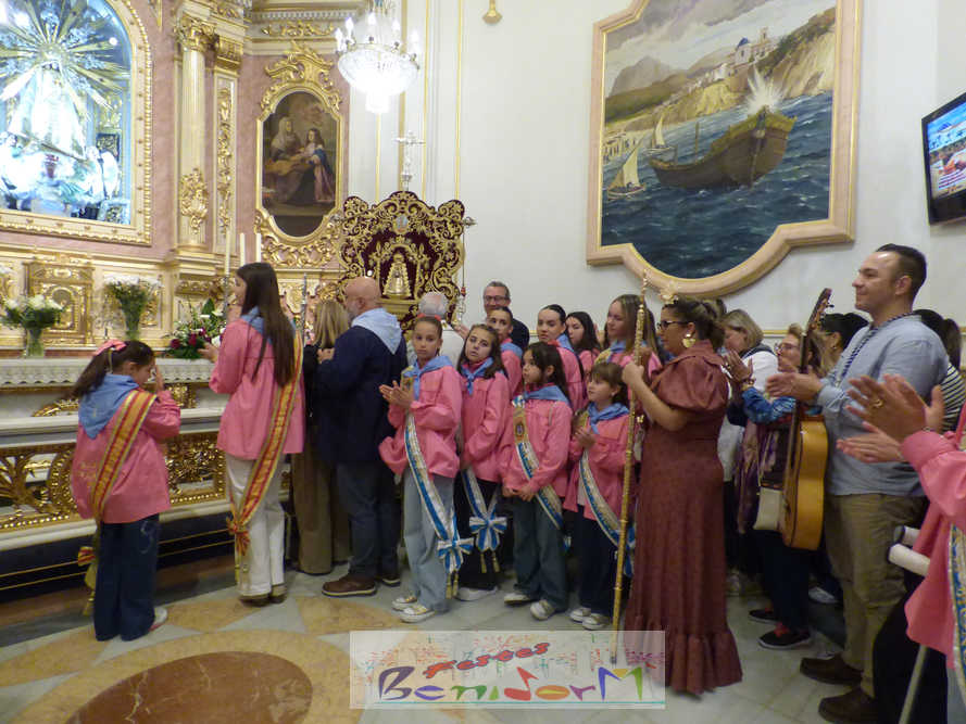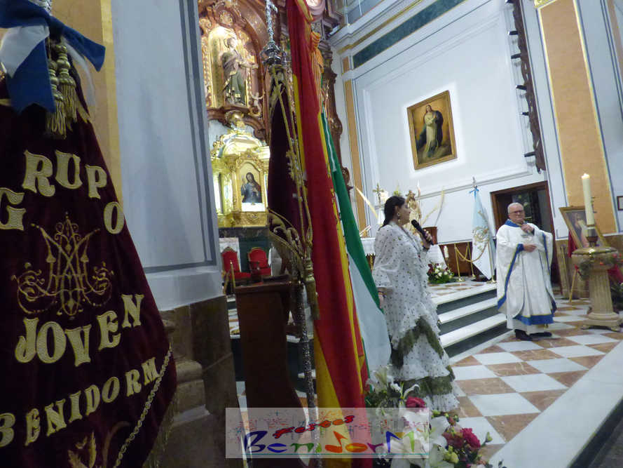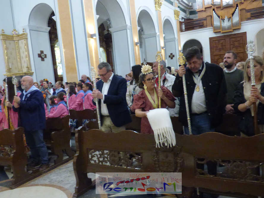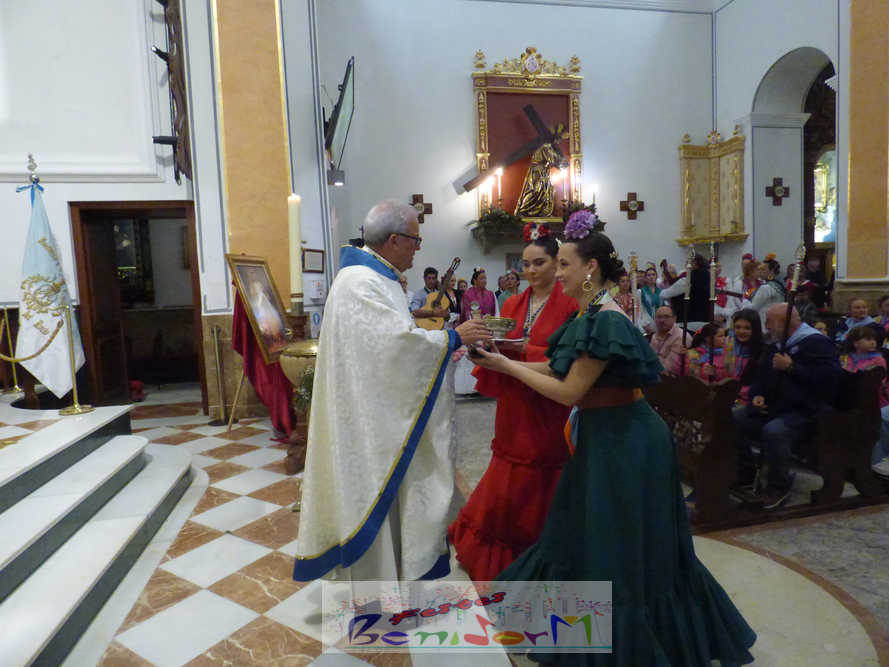 A las diez de la mañana la primera iglesia de Benidorm acogía la misa rociera cantada por el coro de la Real Hermandad de Emigrantes de Huelva, dirigido por David Carrasco, pregonero del Roció benidormense 2026.