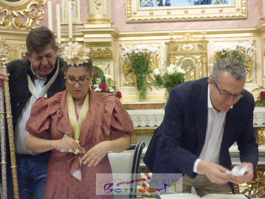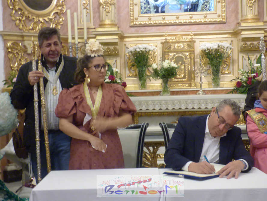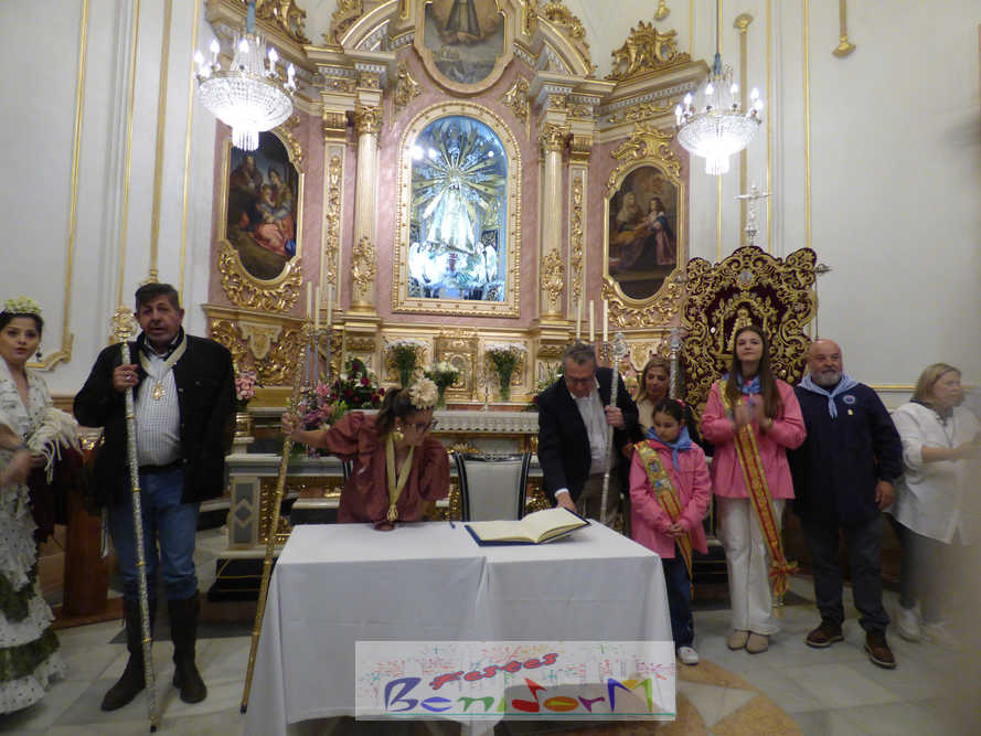 Tras la eucaristía, y debido a las inclemencias meteorológicas, la Hermandad ha trasladado la firma en el Libro de Reglas de la Hermana Mayor y del alcalde a la capilla de la Mare de Déu del Sofratge, acto que estaba previsto que tuviese lugar en el Castell. Asimismo, el regreso a la parroquia de La Almudena, sede de la hermandad, en romería, ha tenido que ser suspendido.