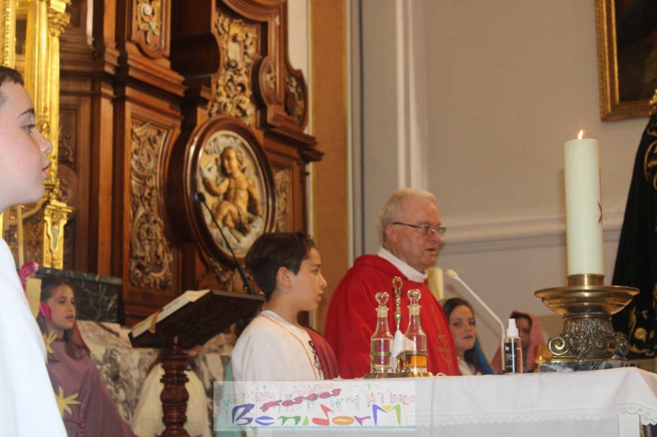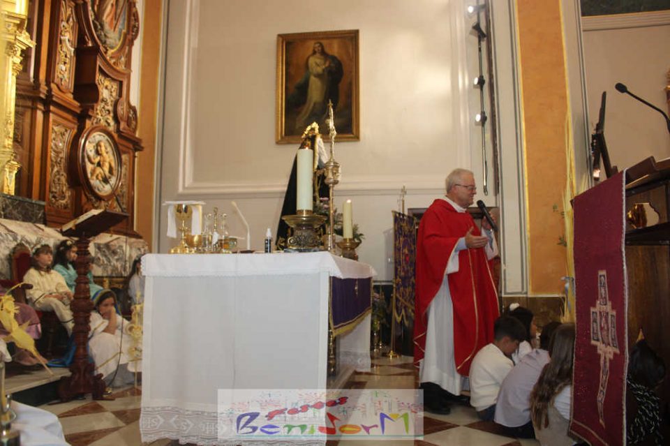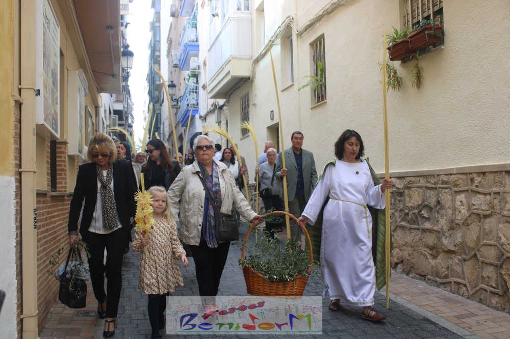 La Semana Santa de Benidorm ha comenzado hoy con la celebración del Domingo de Ramos en el que vecinos y visitantes han participado en la tradicional bendición de las palmas que se ha celebrado en todas las parroquias de la ciudad.