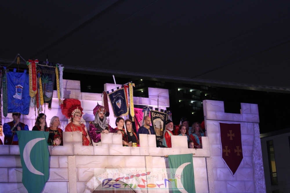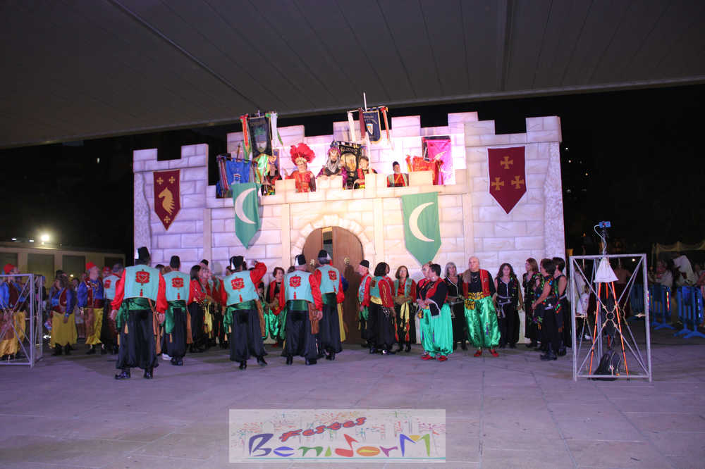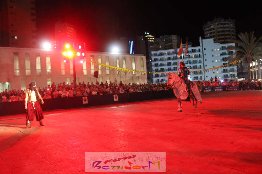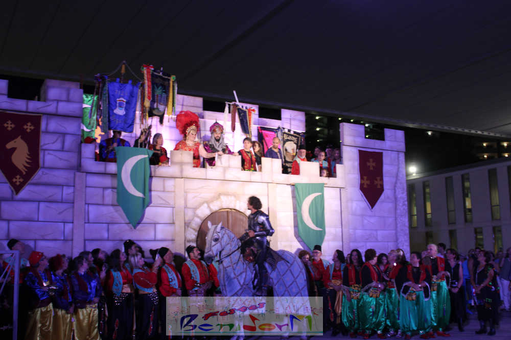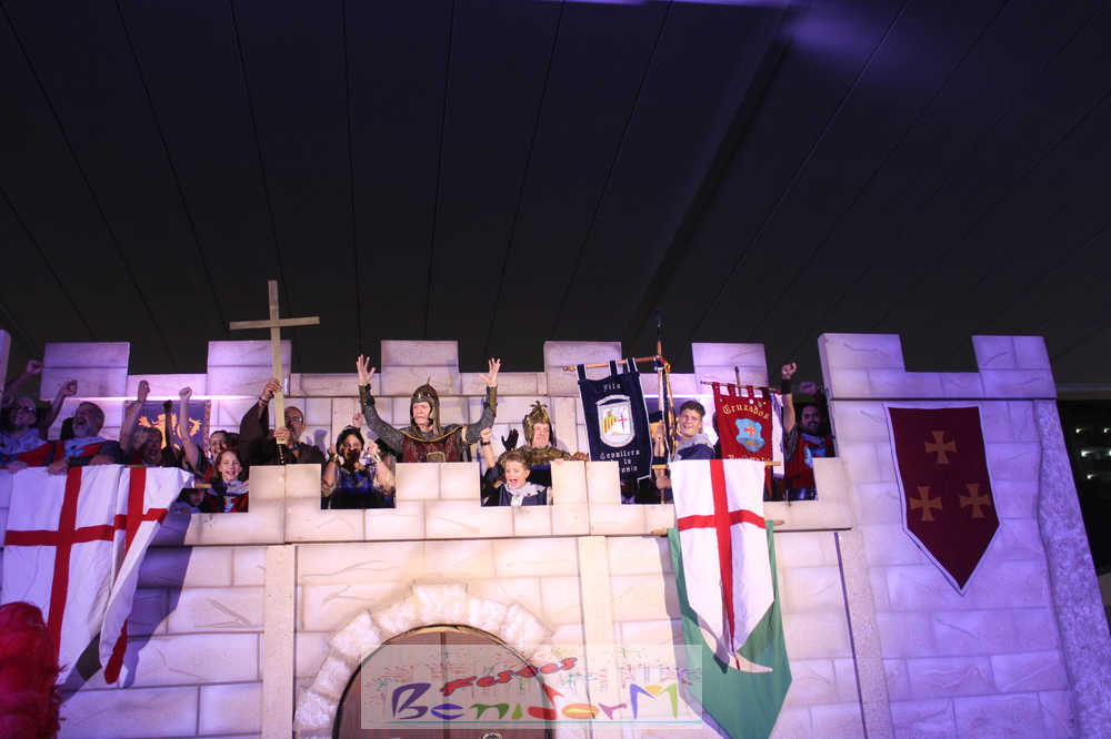 Pasadas las 20.00 h, el embajador cristiano se dirigía al castillo para exigir la rendición de los invasores. Ante la negativa de la hueste musulmana, ha dado comienzo el Alardo que ha acabado con la fortaleza de nuevo en manos cristianas.